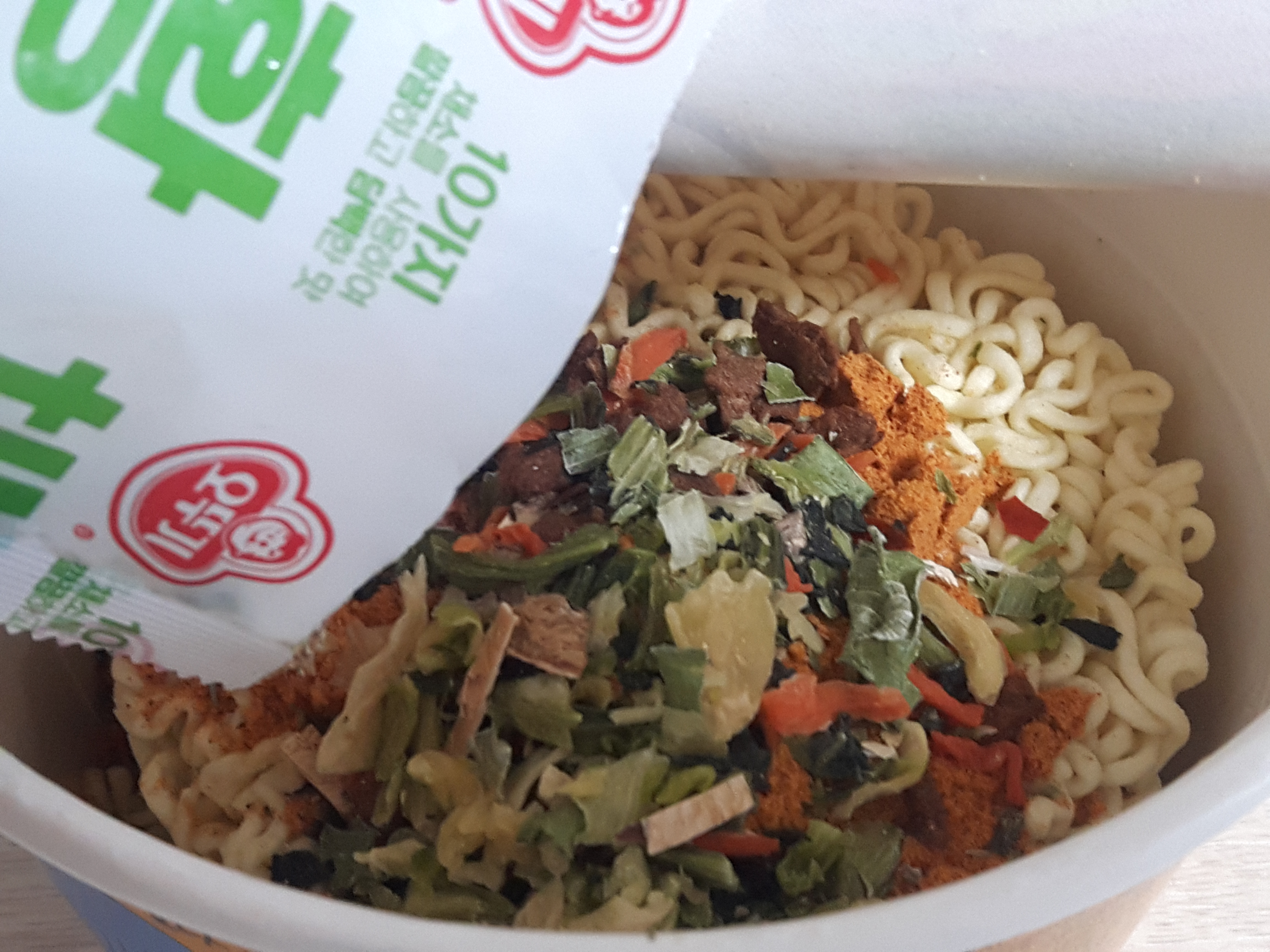 오뚜기 채황과 진라면 건더기스프를 같이 넣어서 건더기가 푸짐 합니다. 위에 보이는건 일부이고, 나머지 건더기는 면아래에 쌓여있더라고요 후후...