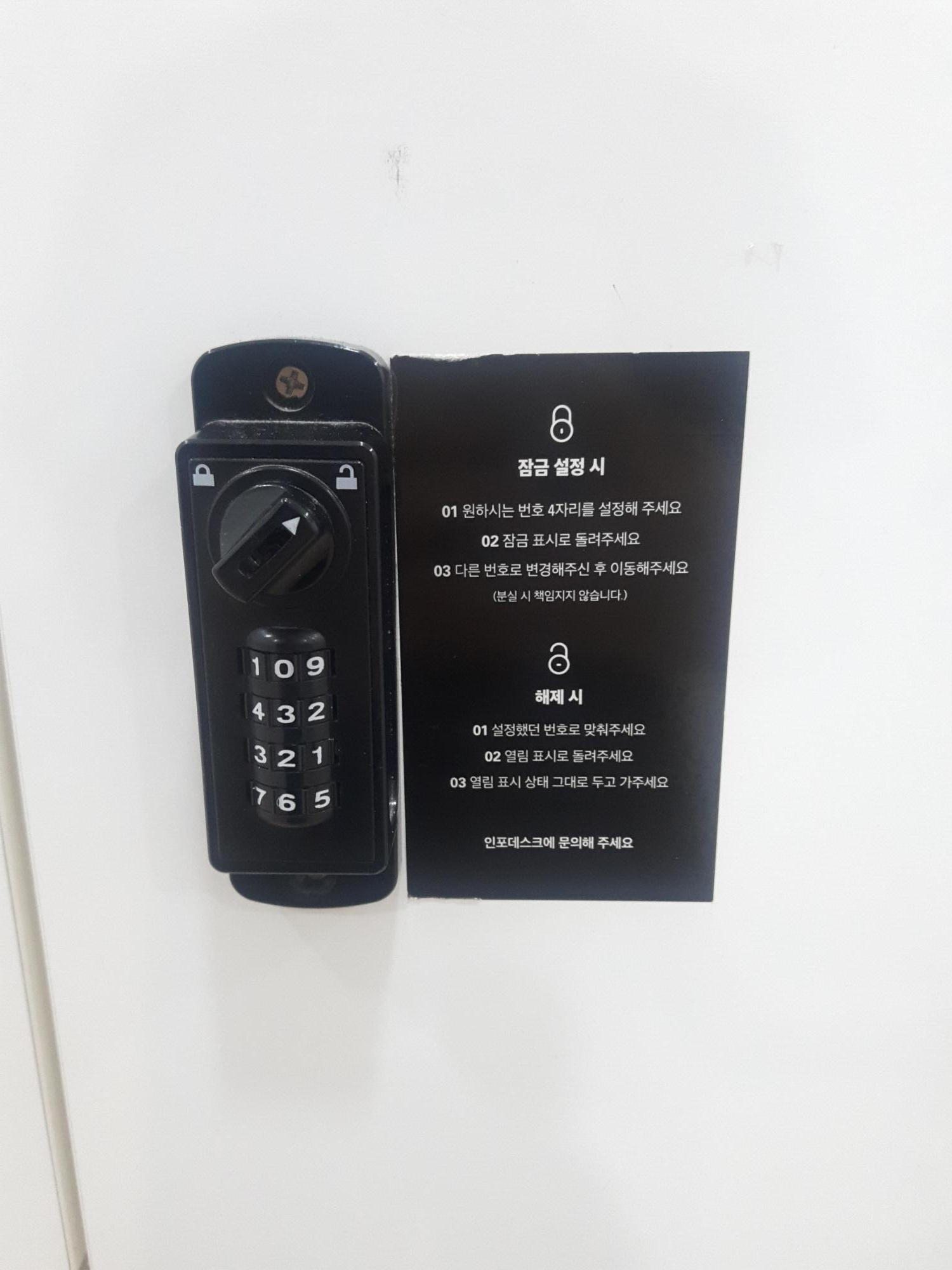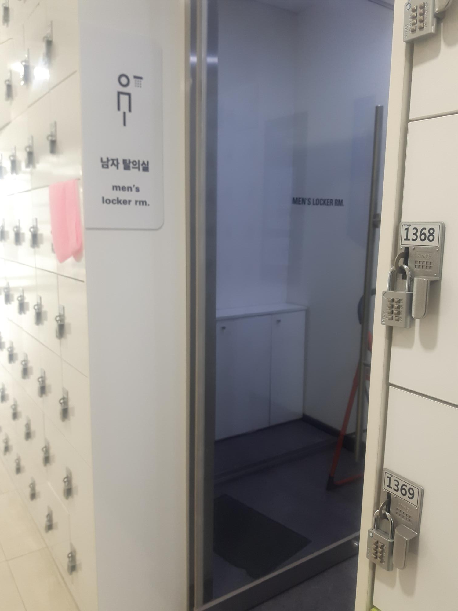 탈의실에서 옷을 갈아입습니다. 오 탈의실 일일사물함키가 열쇠키가 아니고 번호키로 되어있네요. 열쇠를 따로 받지 않아도 되서 편리합니다. 아마 지어진지 얼마 되지 않은 42호점이라 그런거 같습니다. 전에 부산 서면점도 이렇게 번호키로 되어 있었죠. 나름 장단점이 있는거 같습니다. 이렇게 번호키로 되어 있으면 나중에 열쇠반납안해도 되서 편하긴 합니다. 근데 저는 수건을 열쇠줄에 걸어서 놓기 때문에 이런건 열쇠가 편한거 같기도 하고요.
