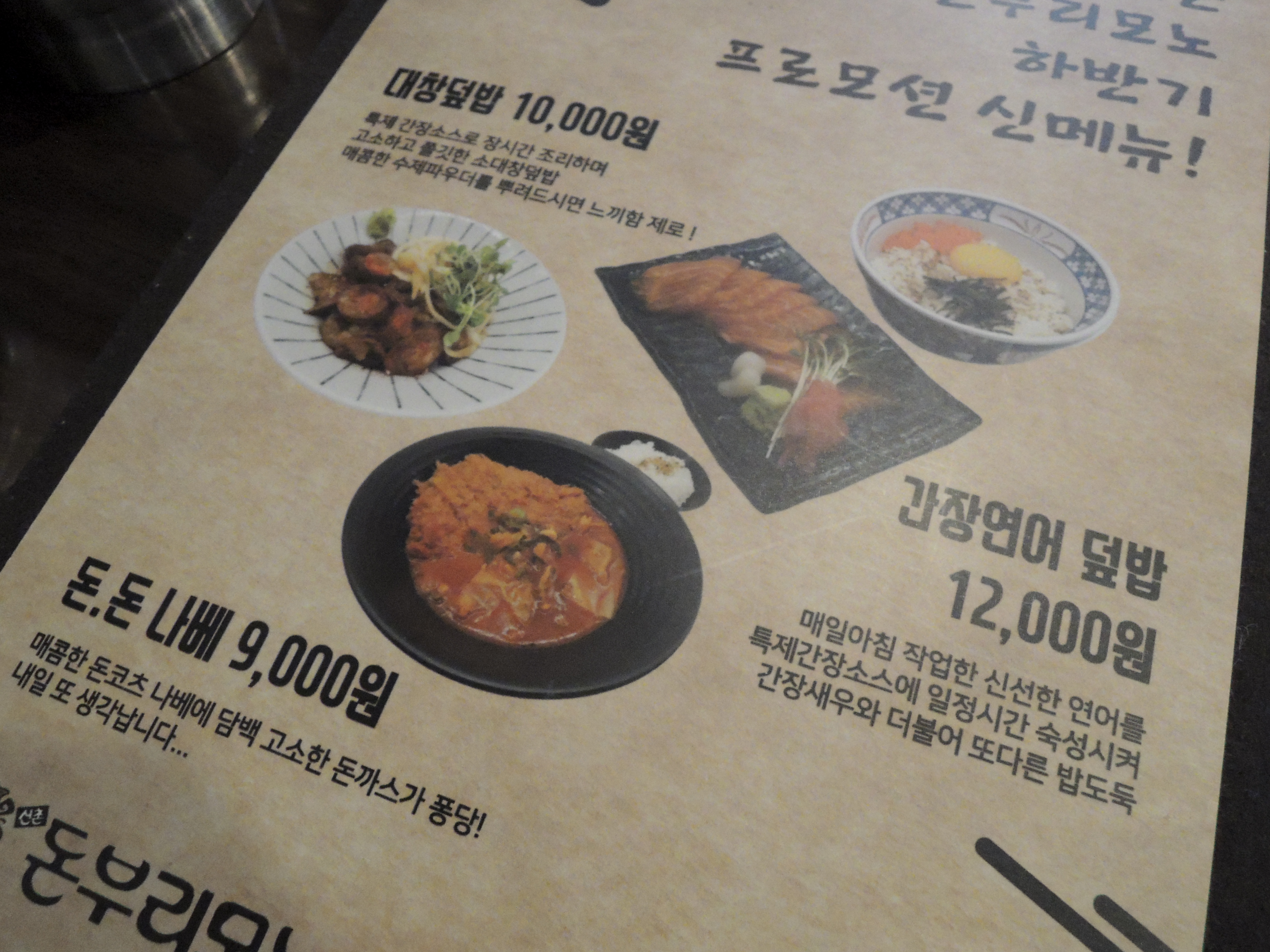 하반기 프로모션 신메뉴로 대창덮밥과 간장연어덮밥, 돈.돈 나베가 출시되었대요.