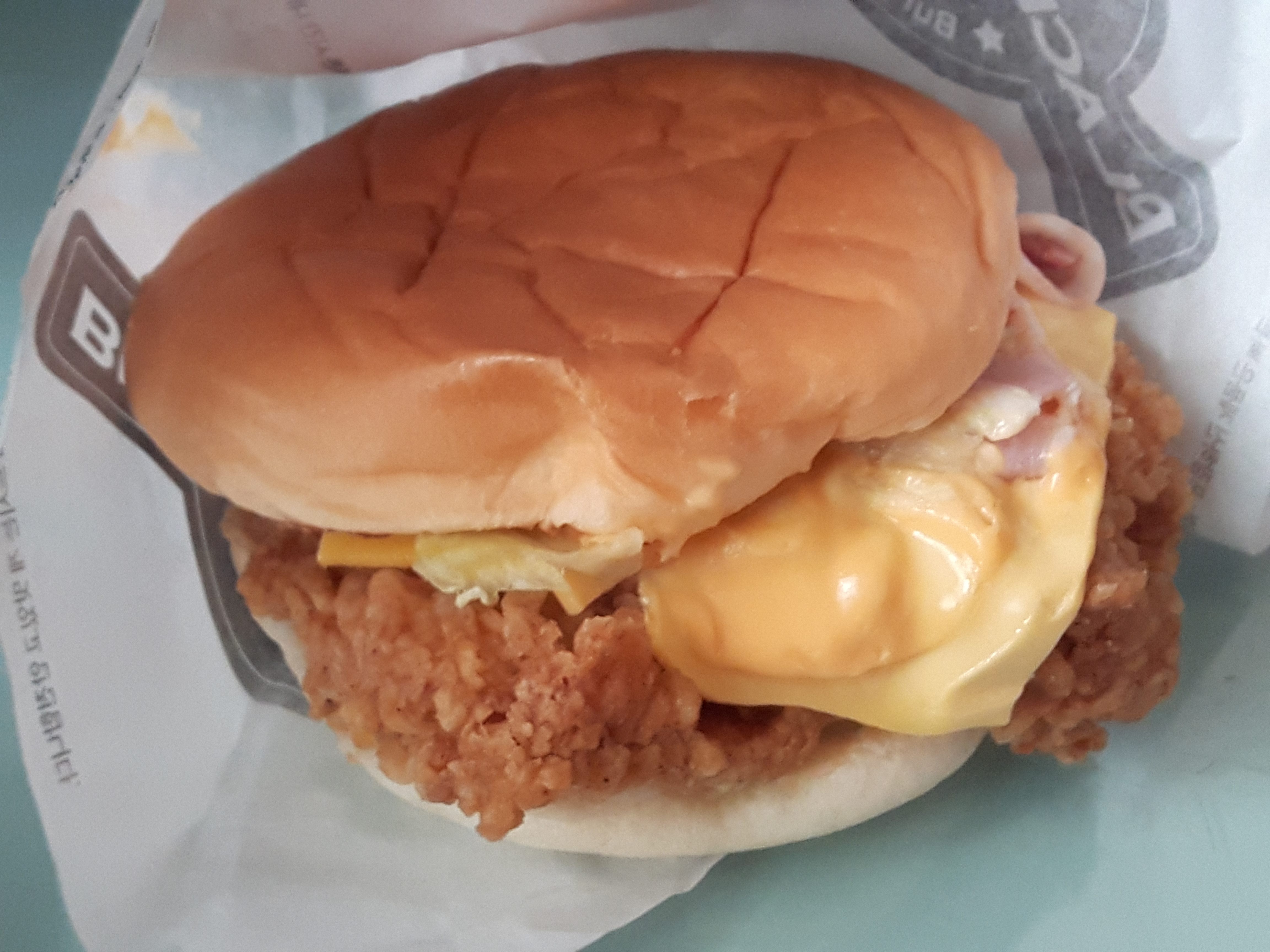 블랙라벨 폴인치즈버거 입니다. 포장구입했고요. 앞서 먹었던 징거버거와는 포장이 다르네요 고급스럽게 종이상자에 담겨있습니다. ㅎㅎ;;