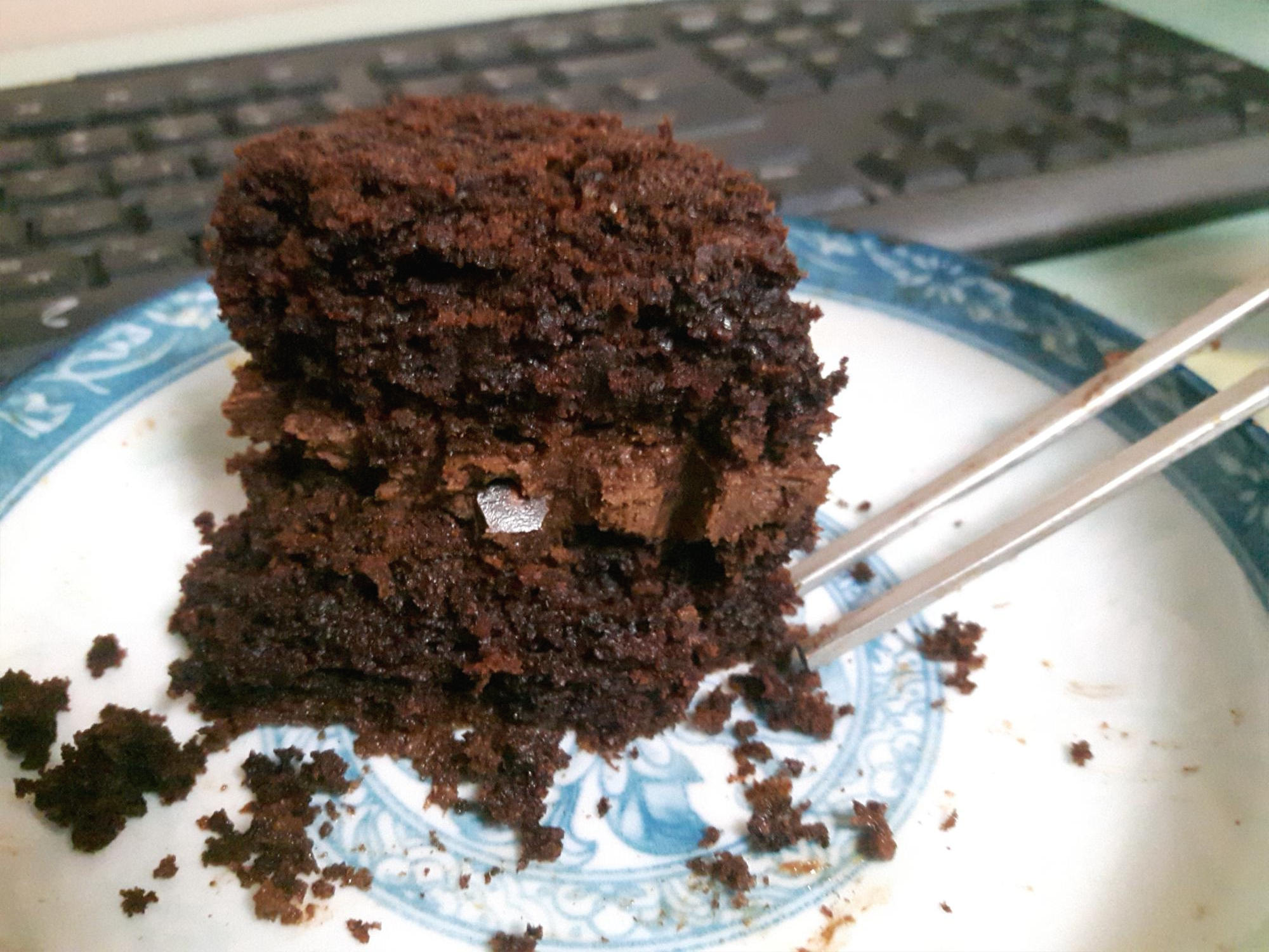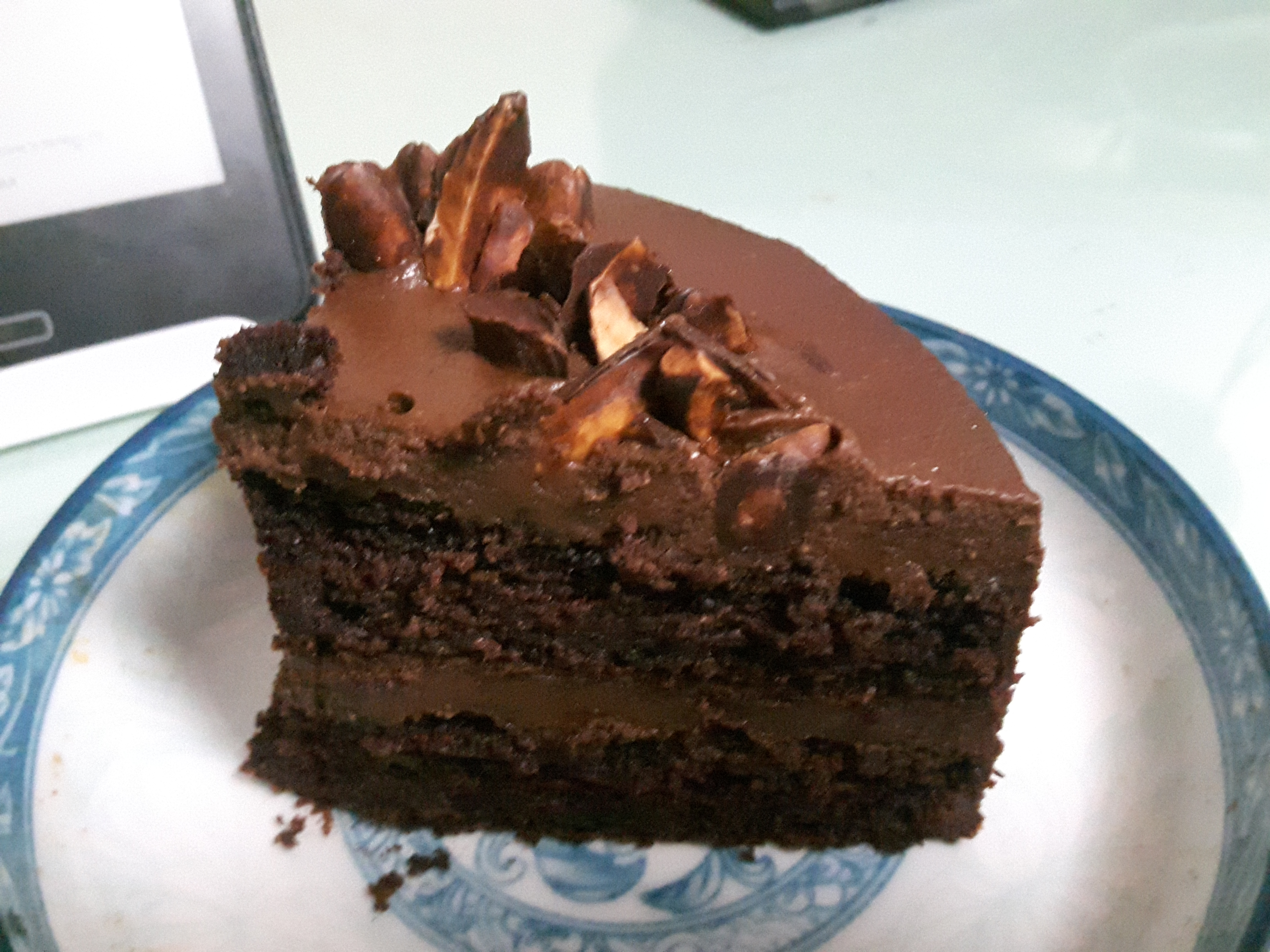 현미초코케이크 집에 가져와서 한조각 먹어봐요 ㅎㅎ 홈페이지에 나온 사진보다 실제 케이크에 견과류가 더 많이 뿌려진거 같아요. 오독오독 맛있고요. 메이플시럽이라 일반 케이크랑은 조금 다른 달콤함이 있어요. 근데 자세히 맛보지 않으면 별차이없어요.