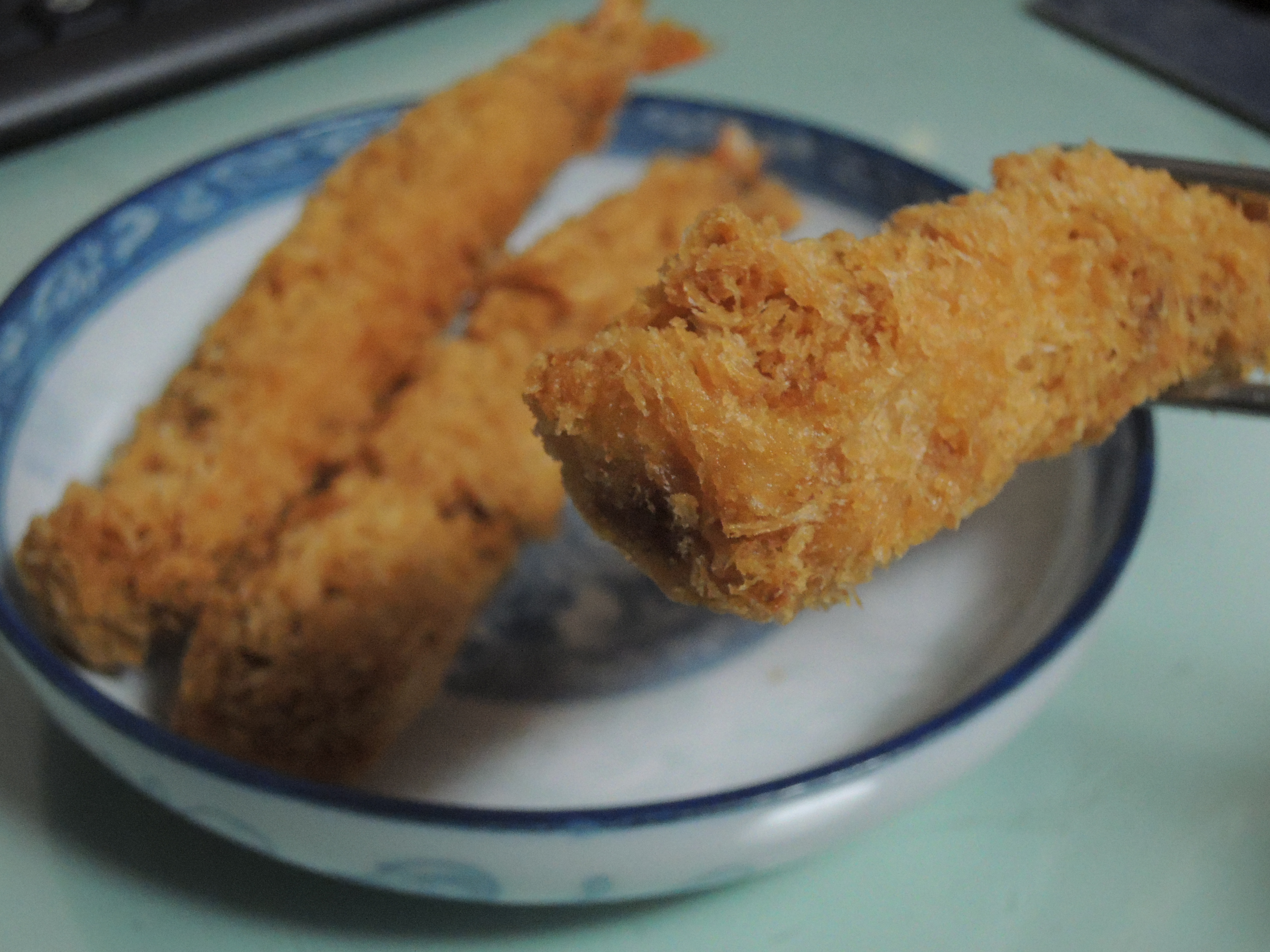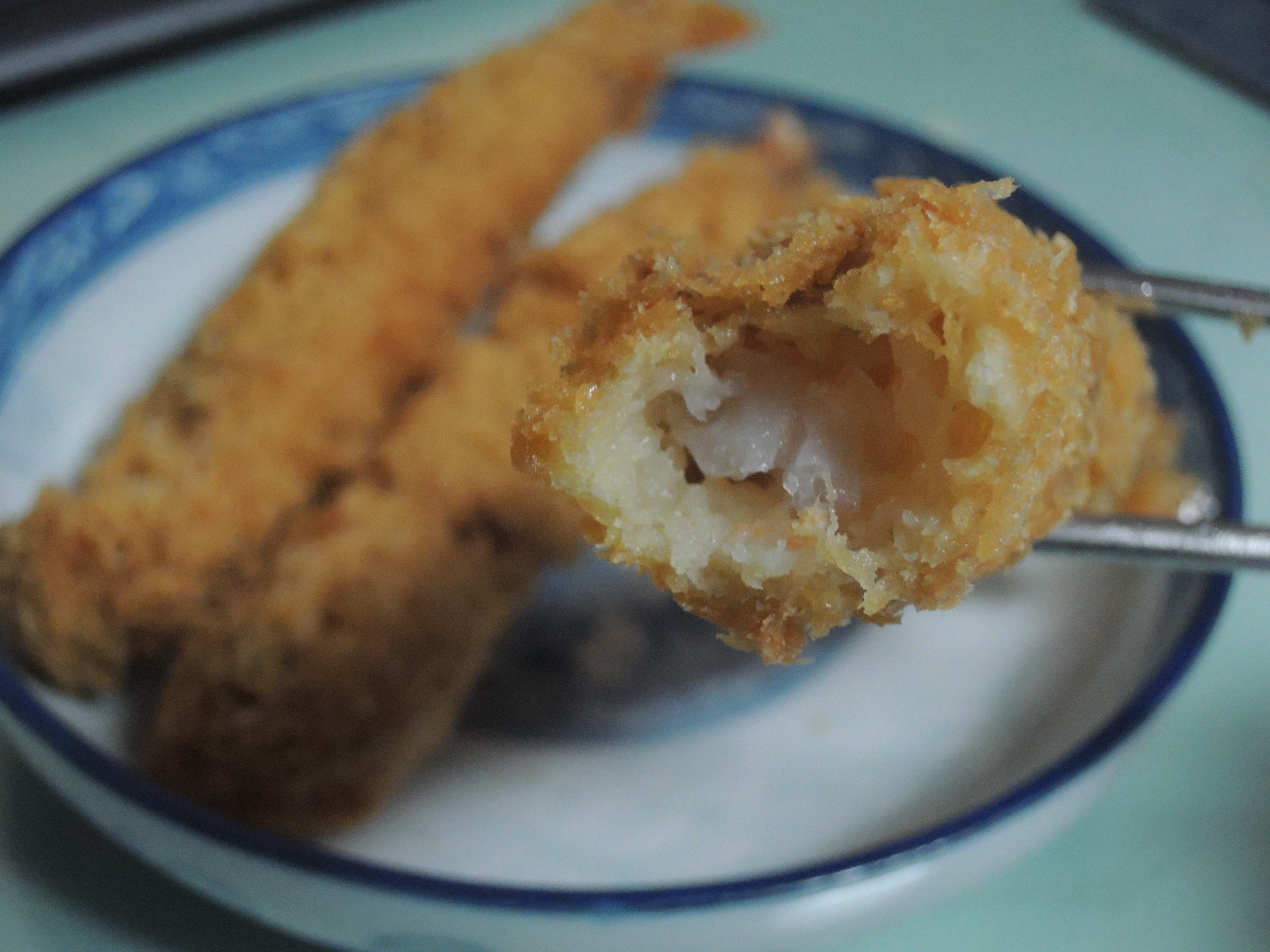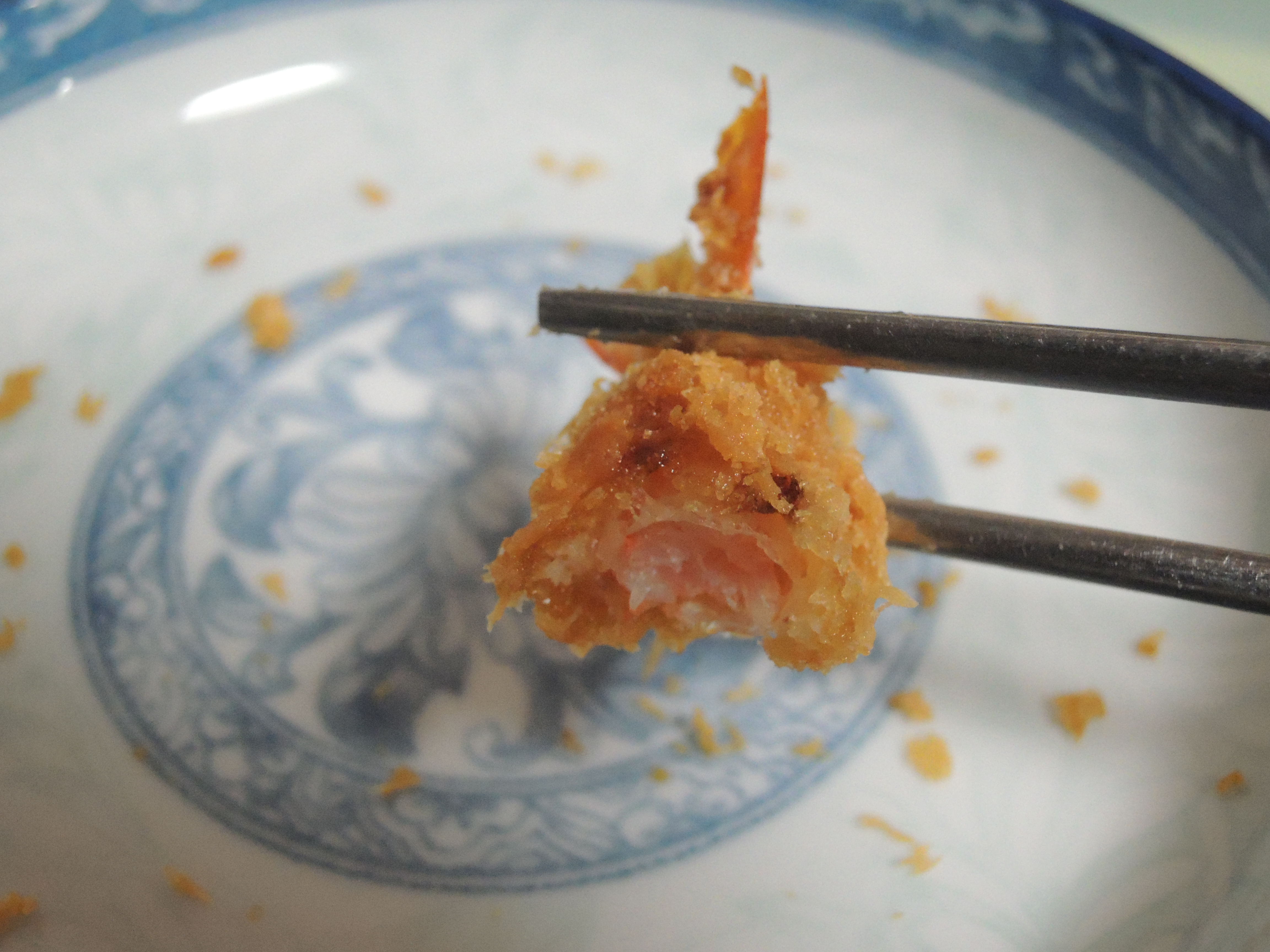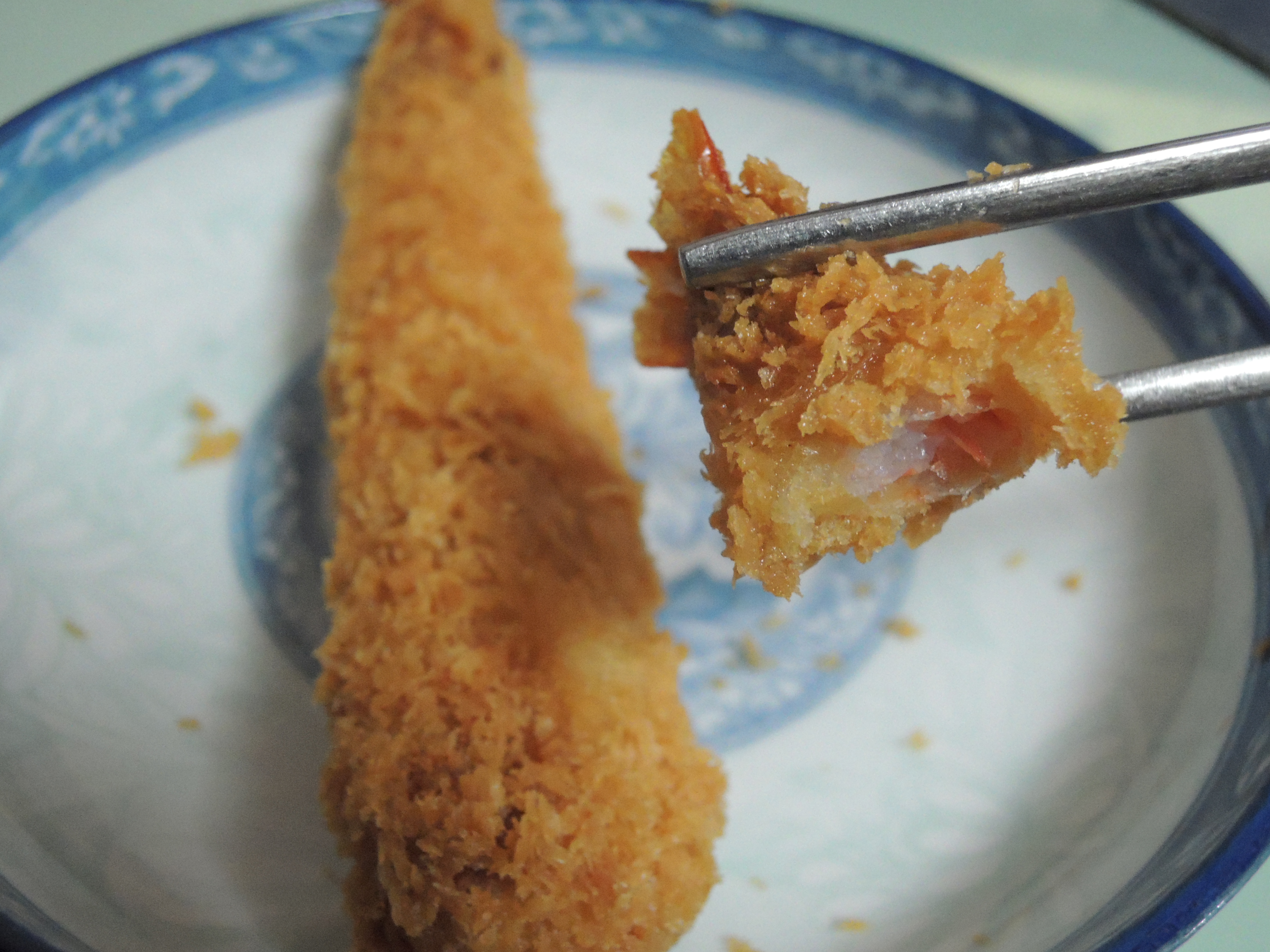 한입먹어봅니다. 빵가루 안에 새우살이 보이죠 ㅎㅎ 빵가루가 두꺼워서 씹는식감이 좋습니다.