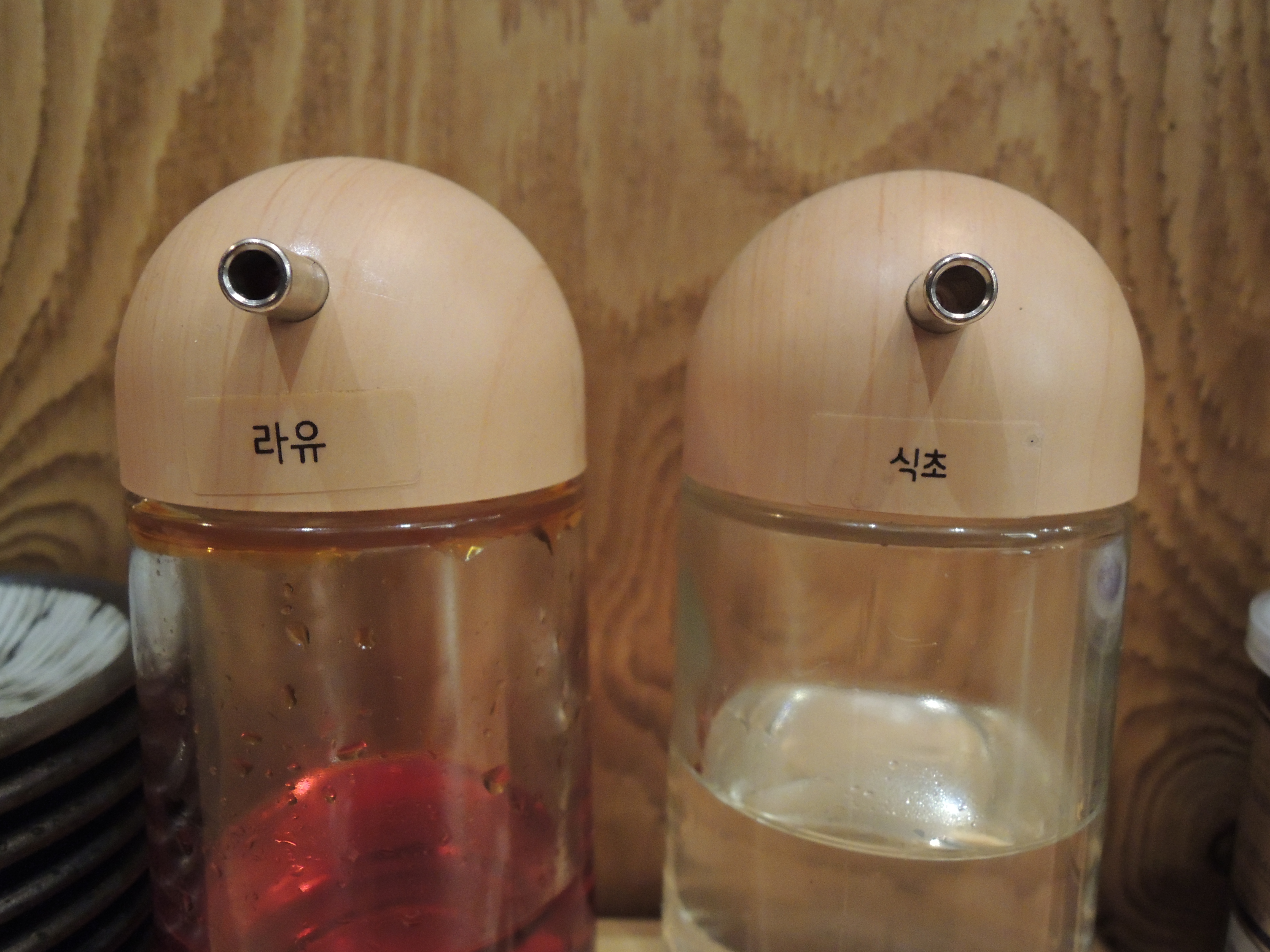 가게 테이블앞에 이렇게 곁들여 먹을 단무지와, 소스들이 준비되어 있어요.
