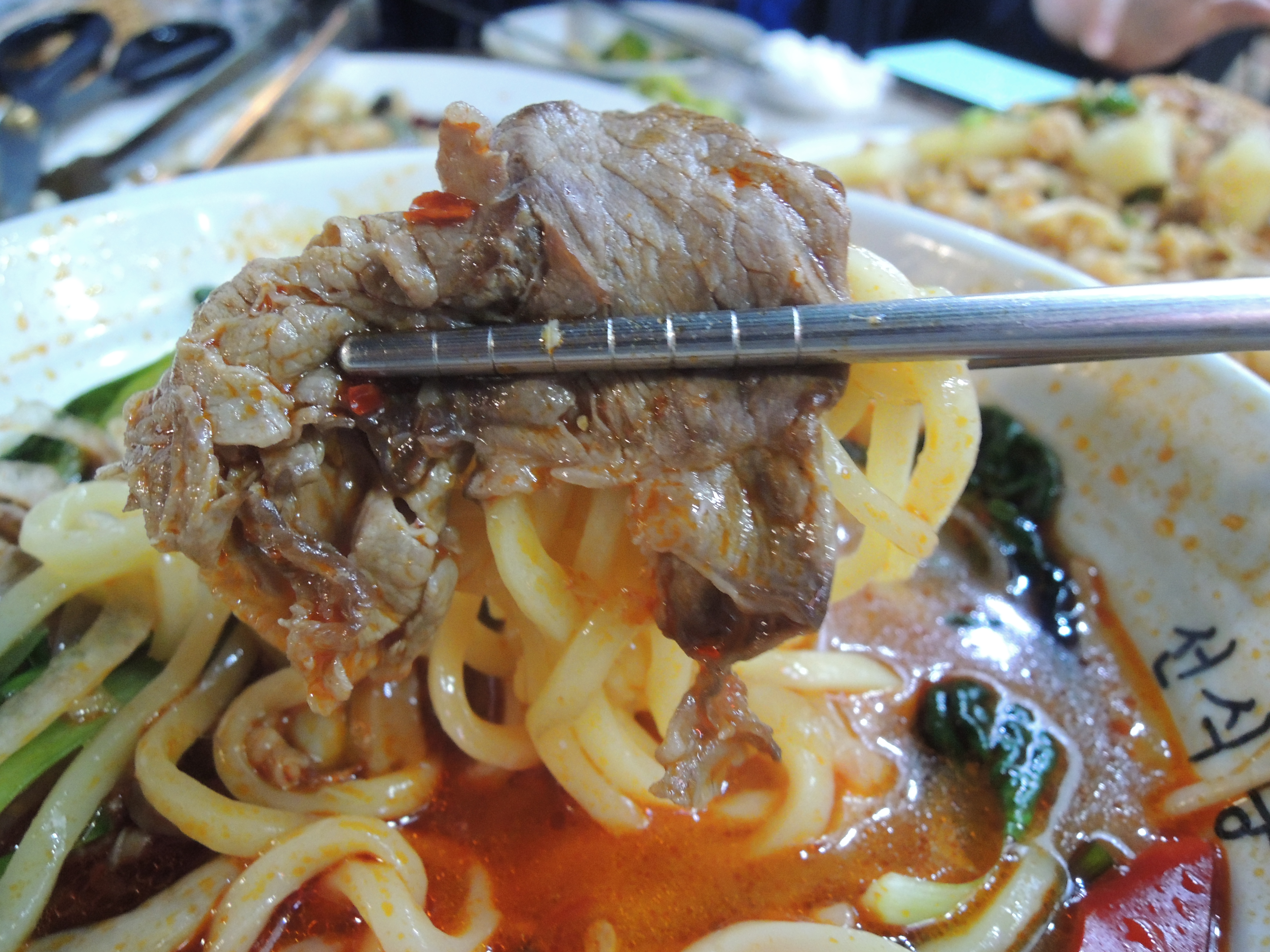 스파이시 양지면도 먹어요. 국물이 매워서 건더기만 건져먹었어요.