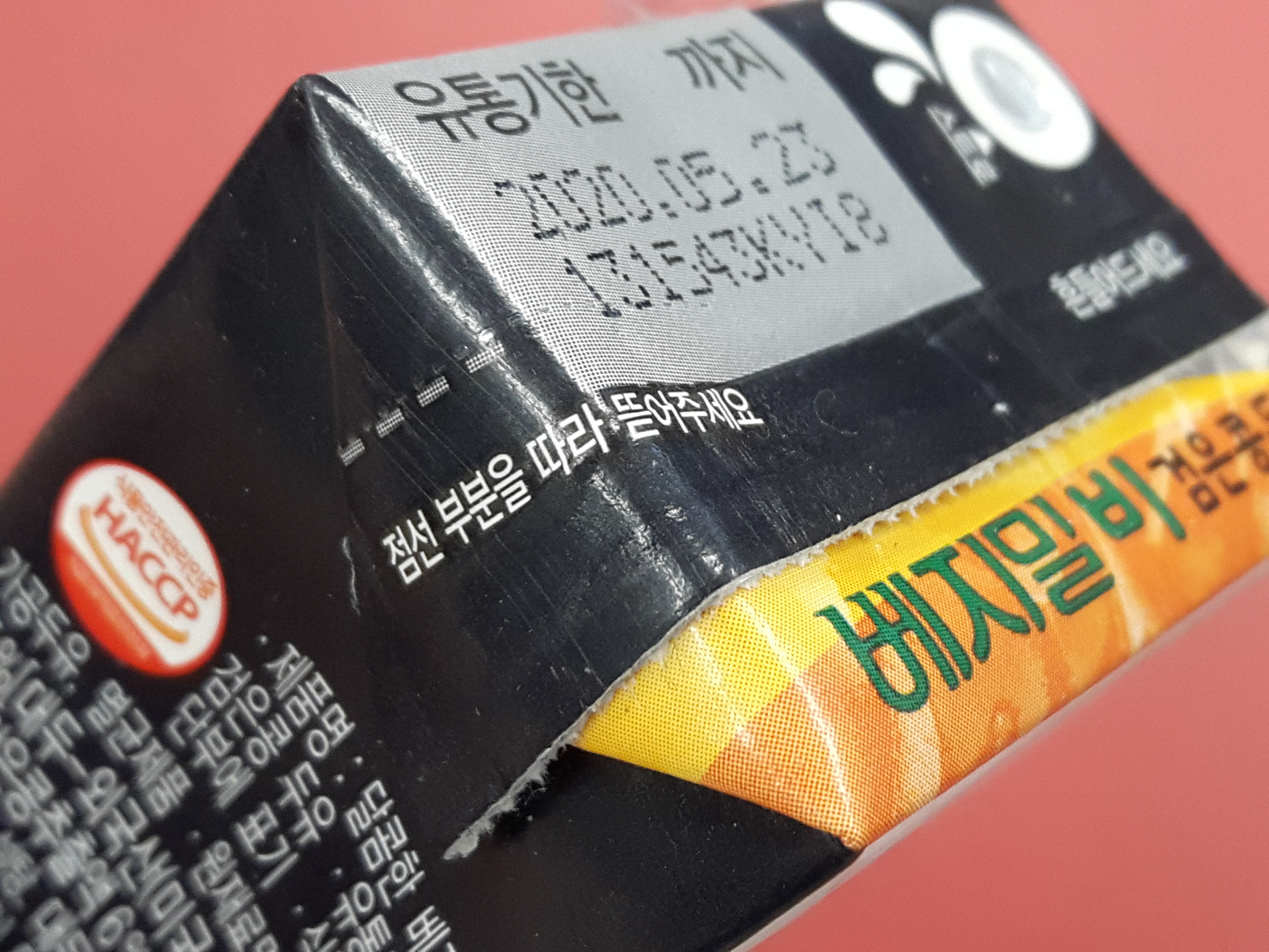 제품 상단에는 유통기한이 나와있습니다. 두유이기때문에 흔들어 먹으면 좋습니다.