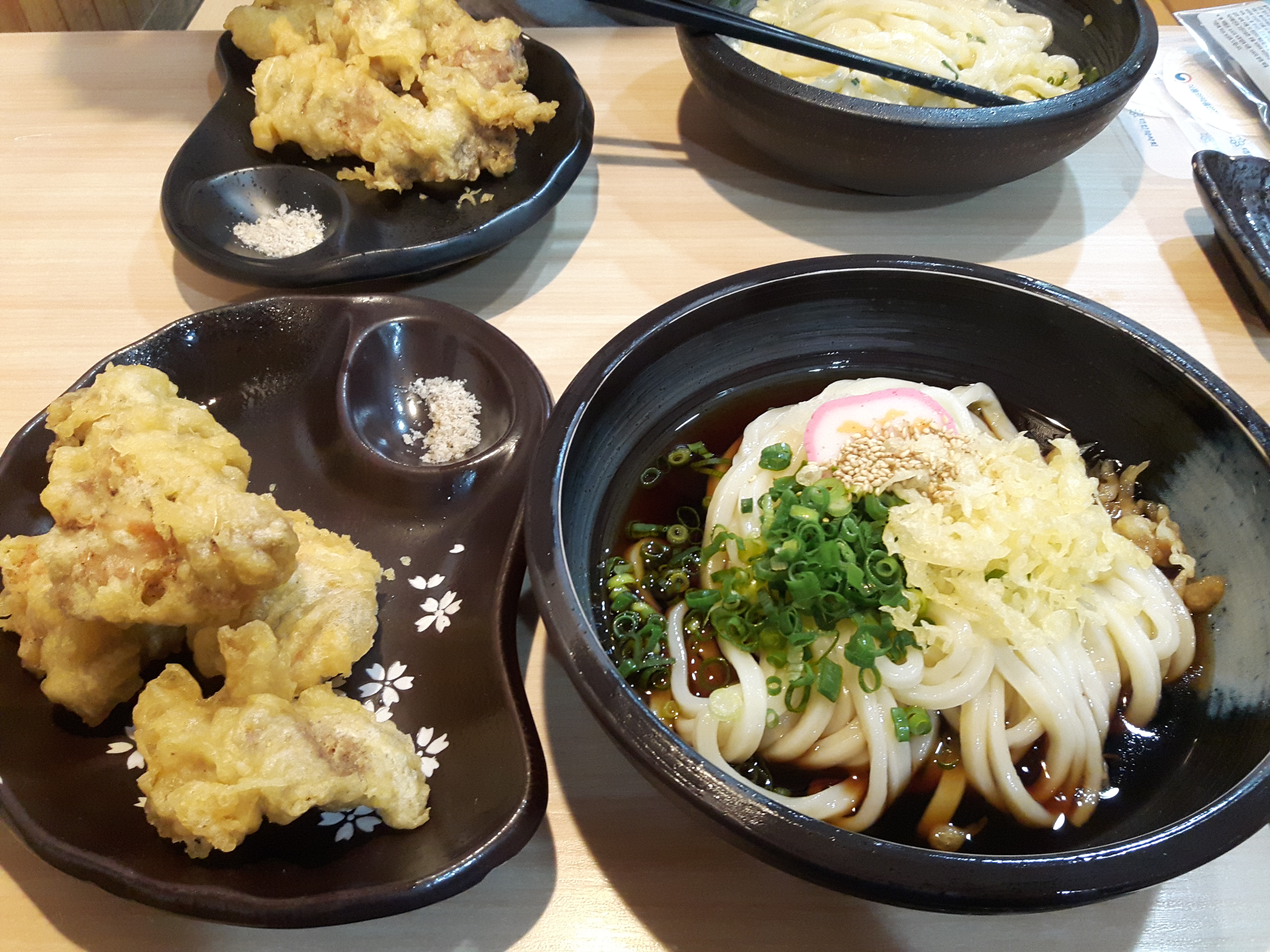 하지만 단품우동은 거의 안먹고 세트를 주문합니다. 저는 이번에 시원한우동 붓가께 우동에 닭튀김을 곁들잉ㄴ 세트메뉴를 주문했어요. 다른 튀김도 있지만, 튀김만은 닭튀김이 가장 좋은거 같습니다. ㅎㅎ;