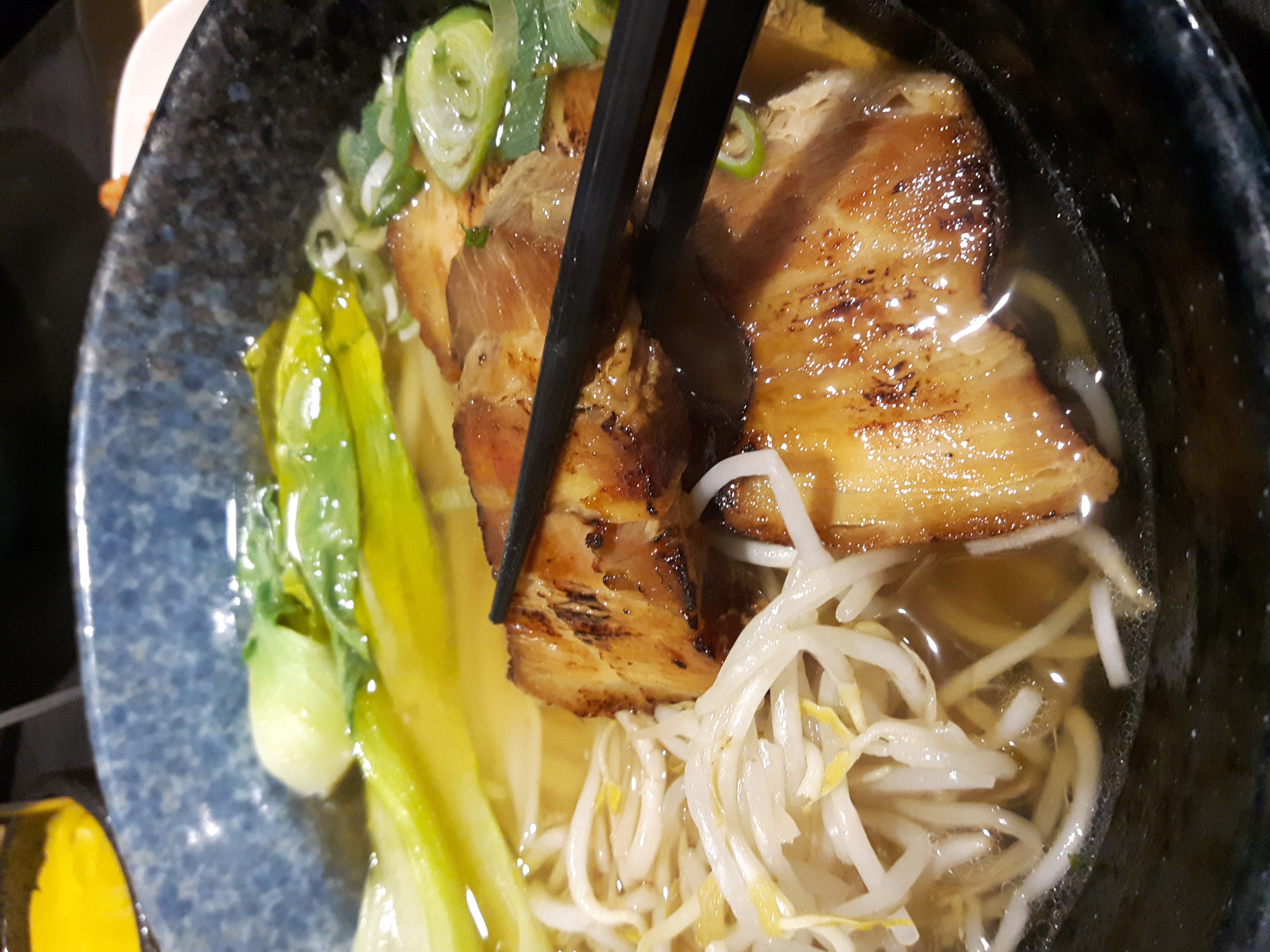 차슈와 더불어 숙주, 청경채등 다양한 고명이 올라가 있습니다. 차슈 넘 부드럽네요. 옛날에 발산역에서 먹던 그 맛입니다. ㅎㅎ 보통 일본라면집에서 먹는 차슈의 식감과 동일합니다. 다만 간장에 조림되어 짭쪼름하니 맛나는거 같아요. 우동하고 차슈도 엄청 잘 어울리네요.