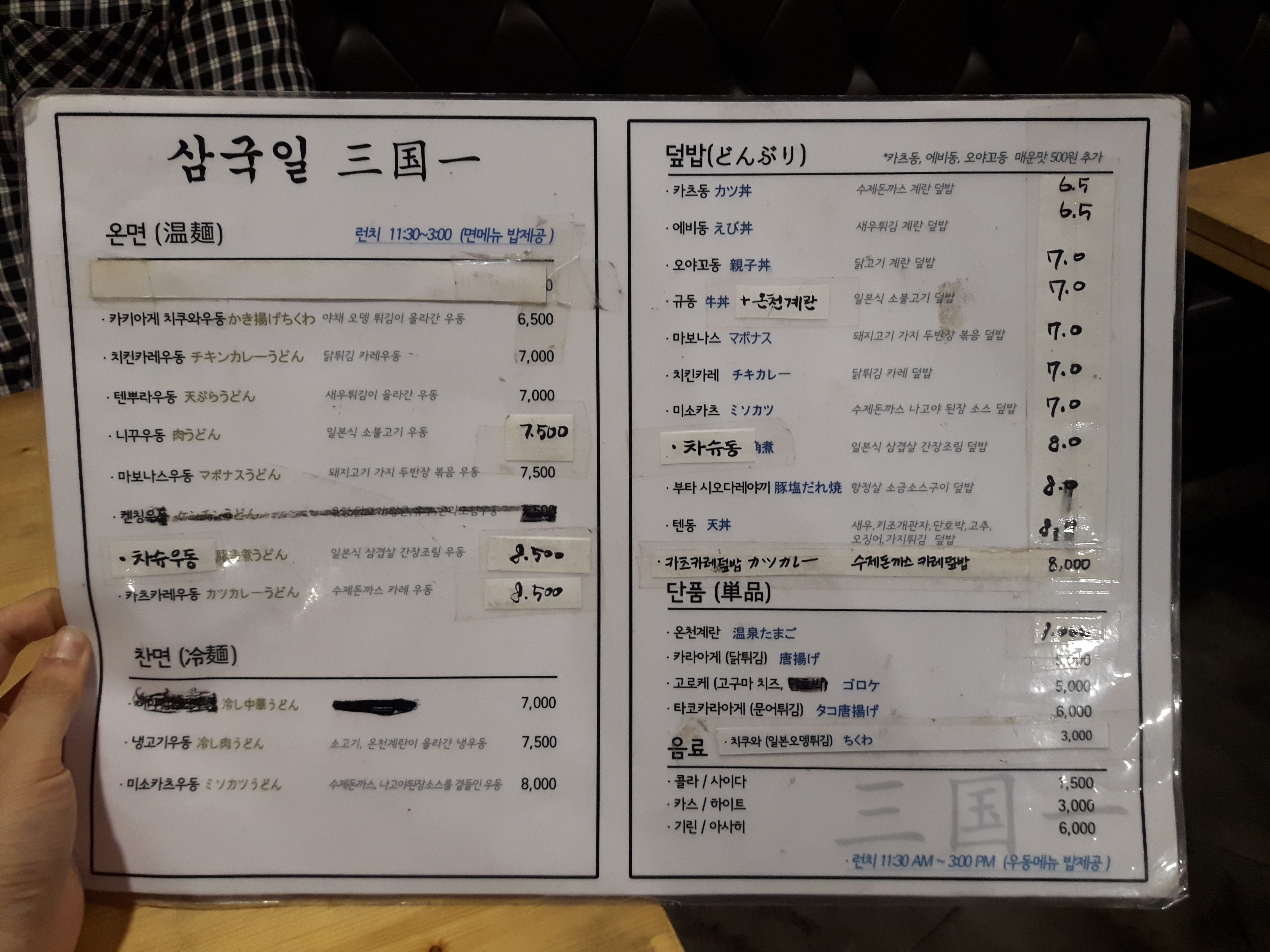 메뉴판입니다. 홍대입구역 가미우동처럼 여기도 온면과 찬면으로 나뉘어져 있습니다. 예전에 차슈우동을 맛있게 주로 먹어서, 이번에도 차슈우동으로 주문합니다. 가격은 단품이 8,500원 입니다. 2020년 5월 기준 입니다.