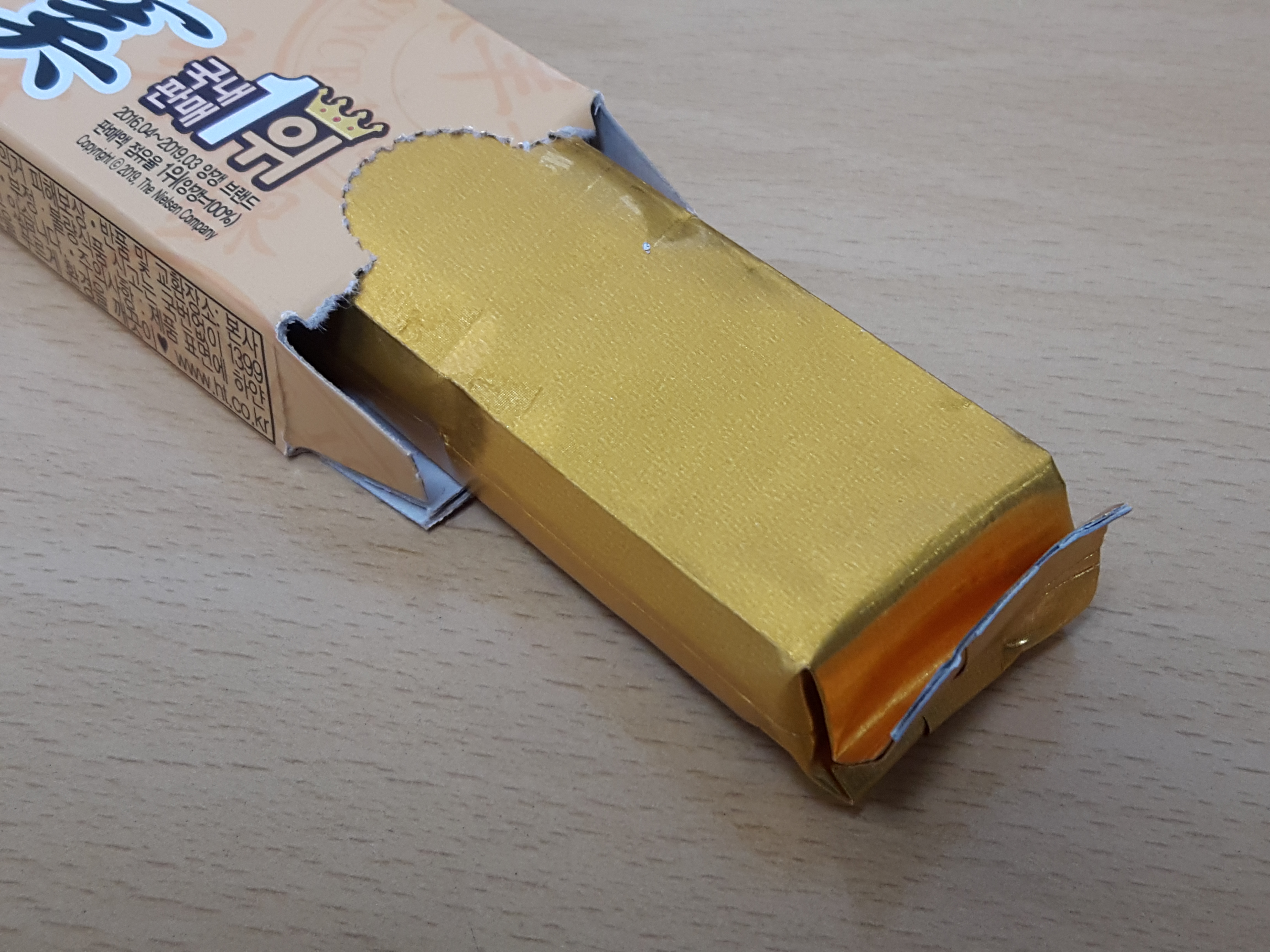안에는 금괴(?)가 아니 영양갱이 금색 포장지에 들어있습니다. 제가 먹던 옛날 그대로...