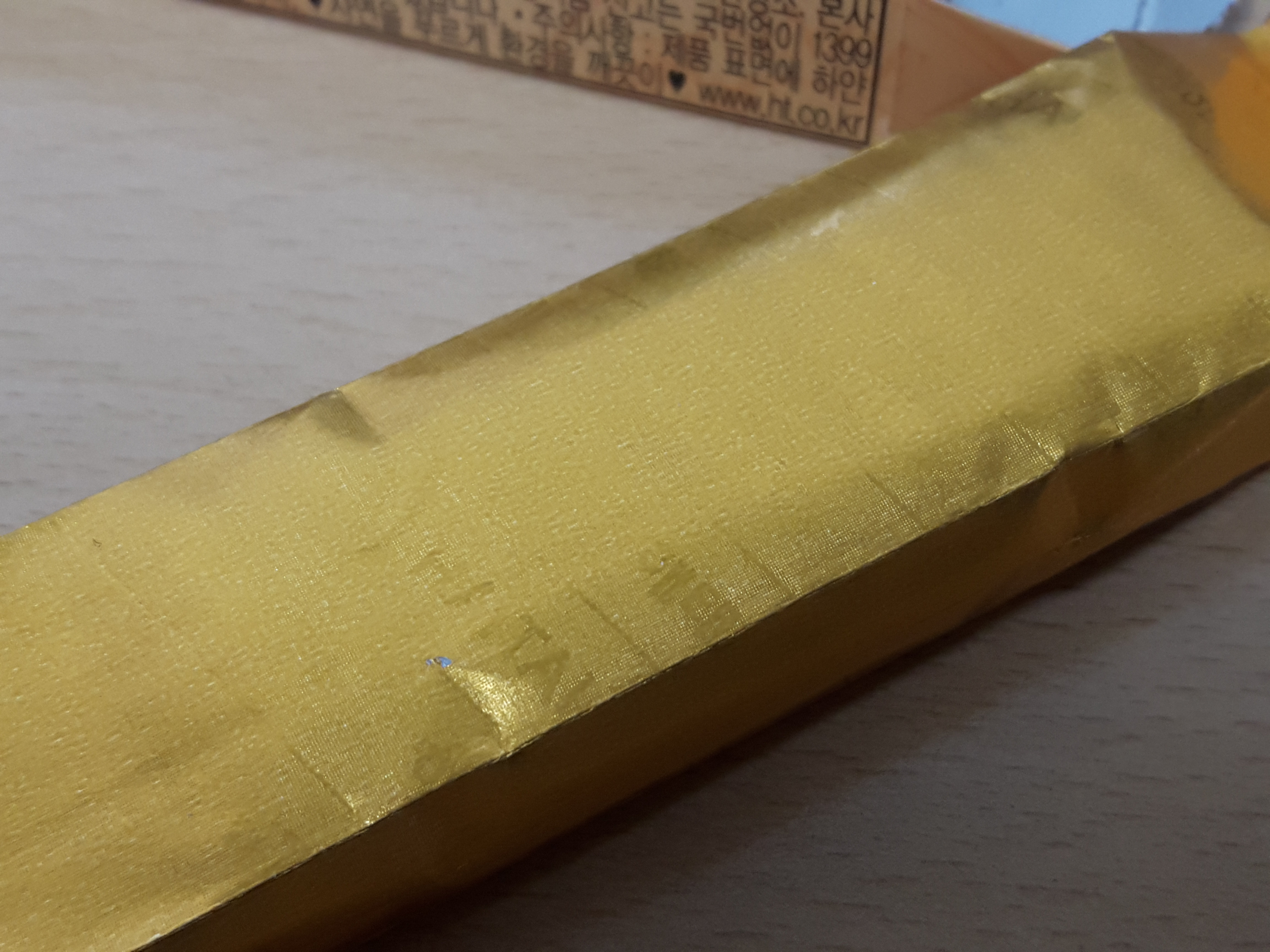 ... 인것 같았으나 금색 포장지에 HAITAI라고 로고가 은은하게 비추는 가공을 했네요. 오 멋집니다.