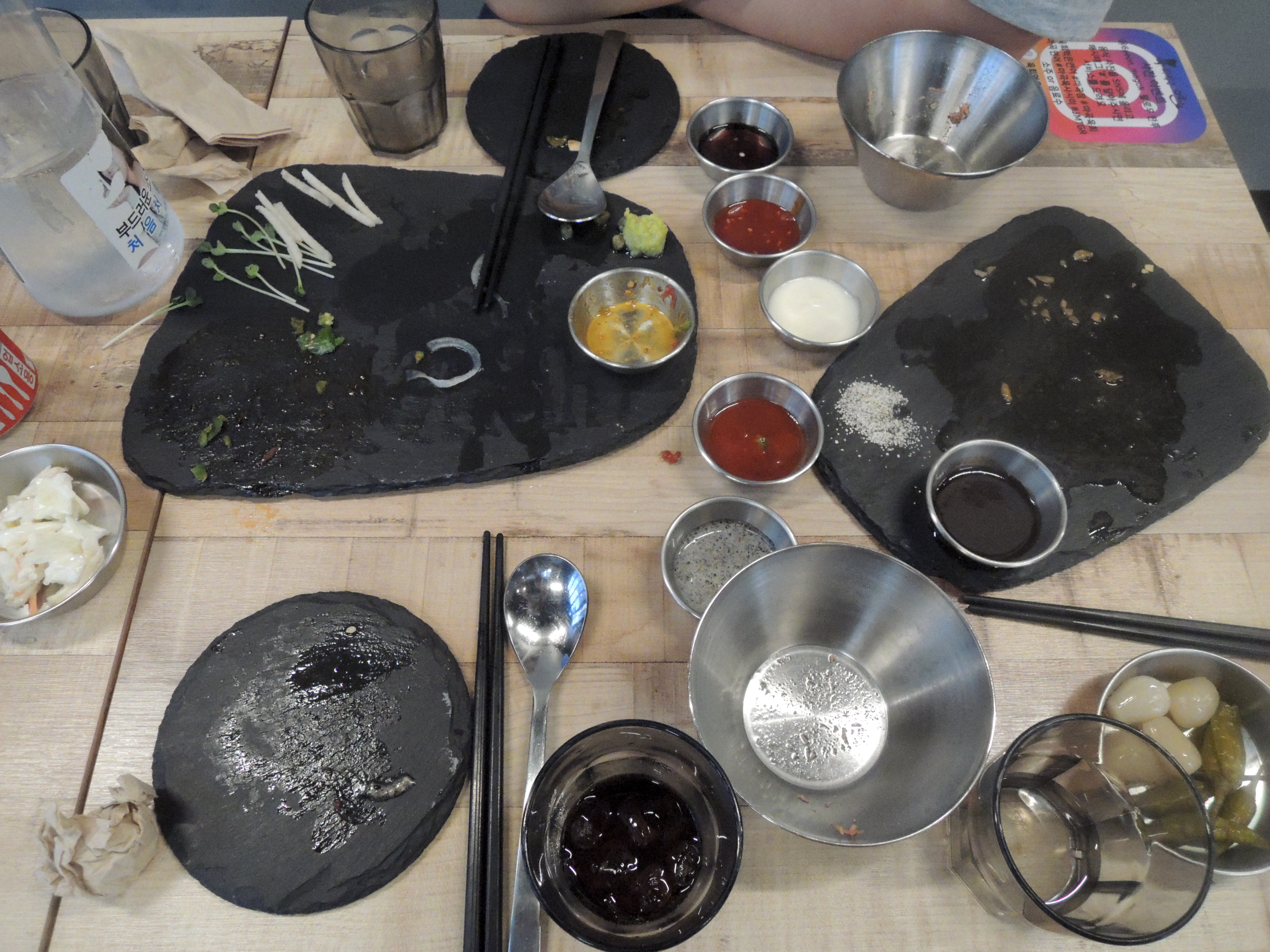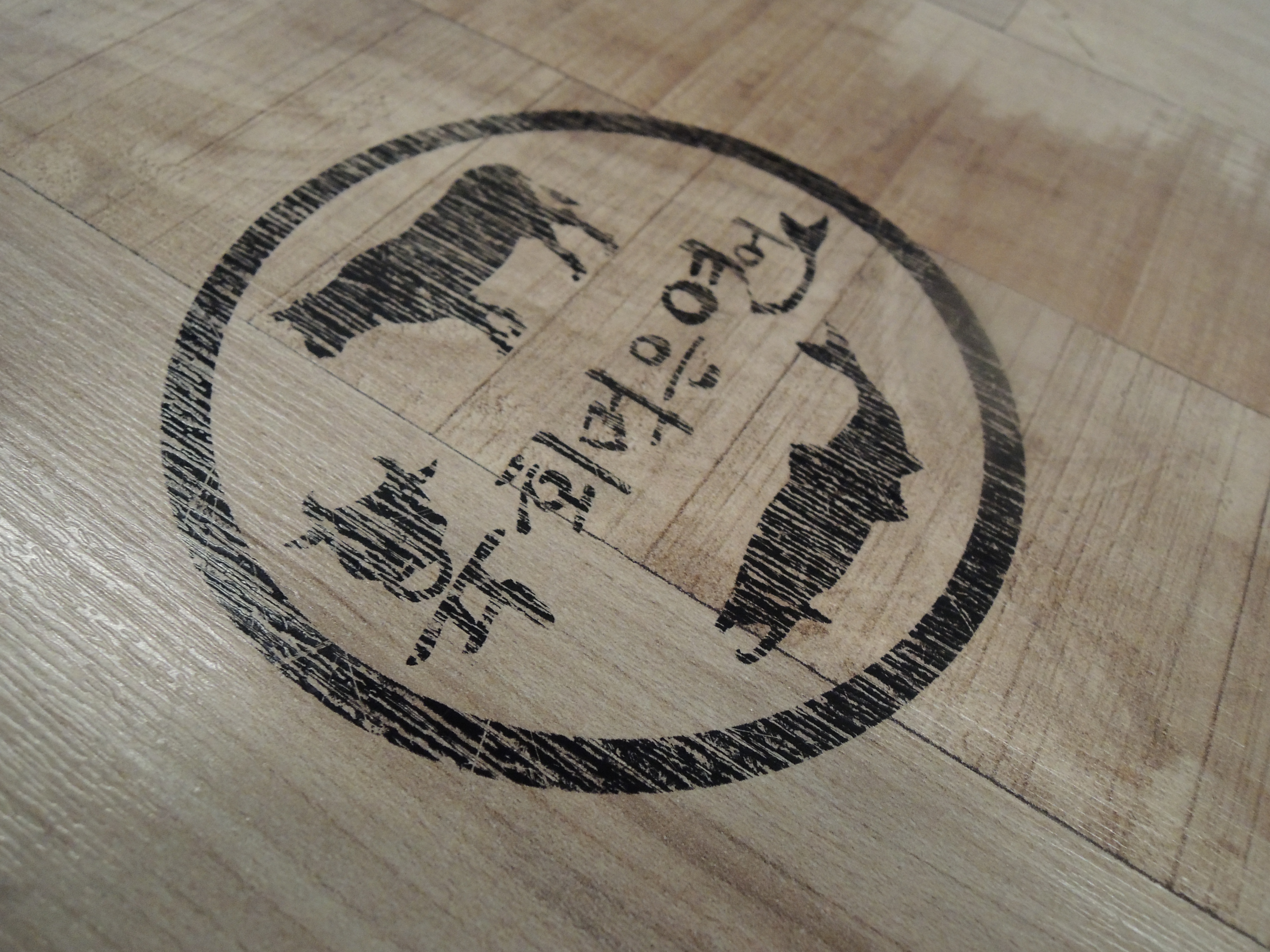 테이블에도 이렇게육회먹은연어 로고가 똭! 센스있네요.