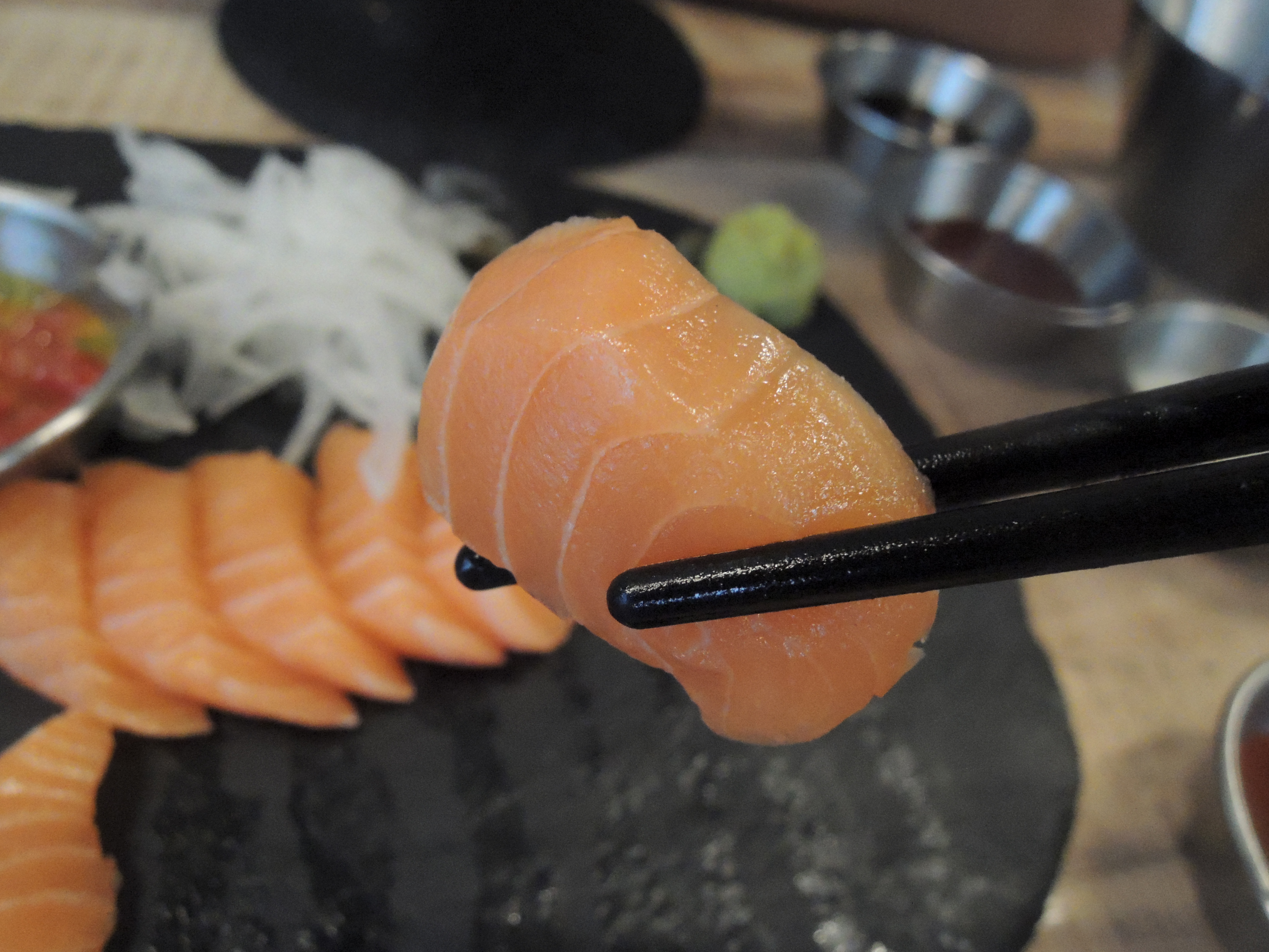 연어를 똬악! 간장에 찍어먹어요. 살살 녹네요. 연어엔 오메가3가 들어있고 영양소도 풍부한 슈퍼푸드로 너무나 유명하죠. 많이 먹어서 오메가3를 좀 채워넣어야겠어요 ㅎㅎ