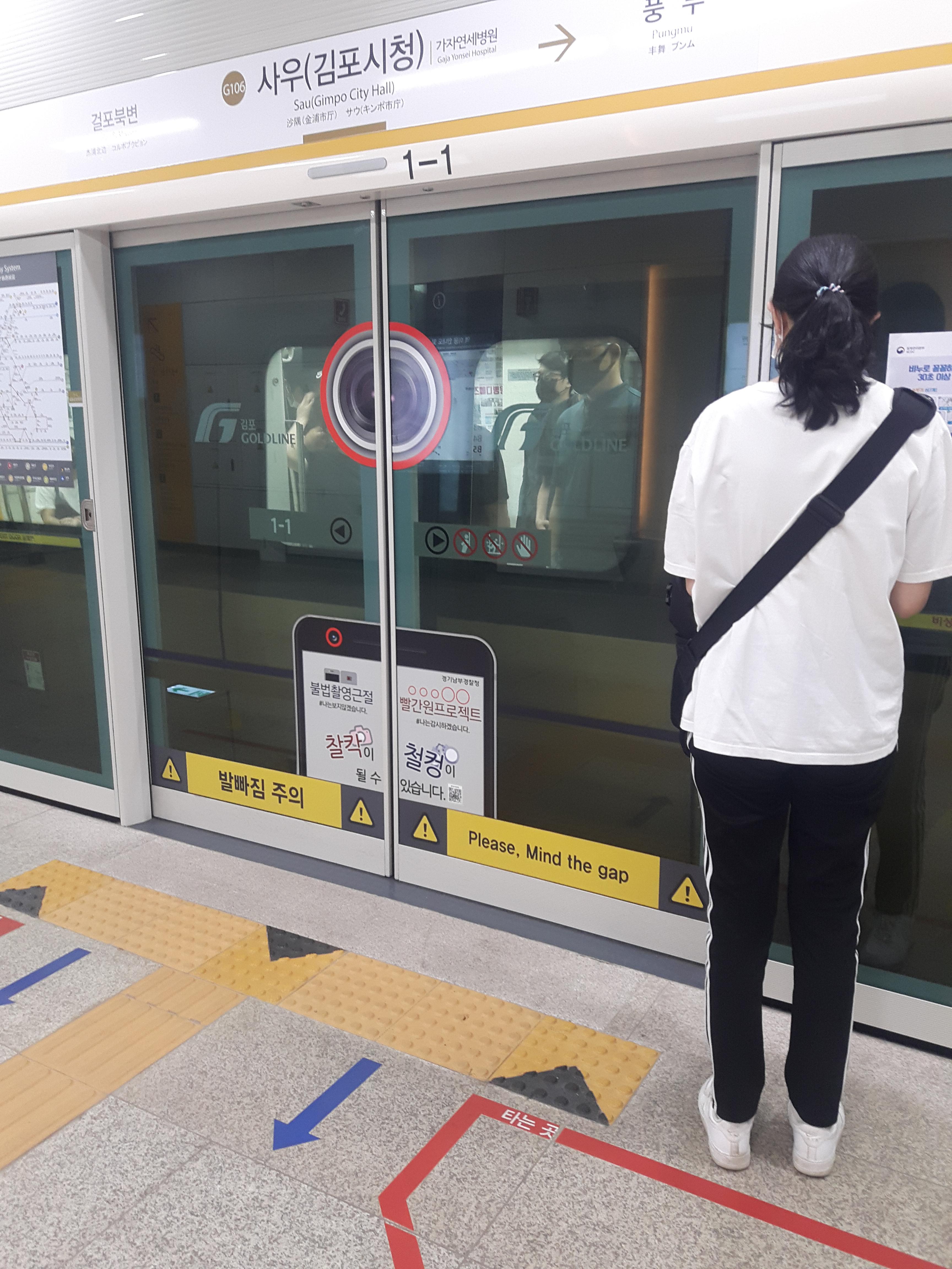 김포골드라인은 김포공항에서 김포양촌까지 가는 지하철이고요. 4량으로 칸은 매우 적습니다.