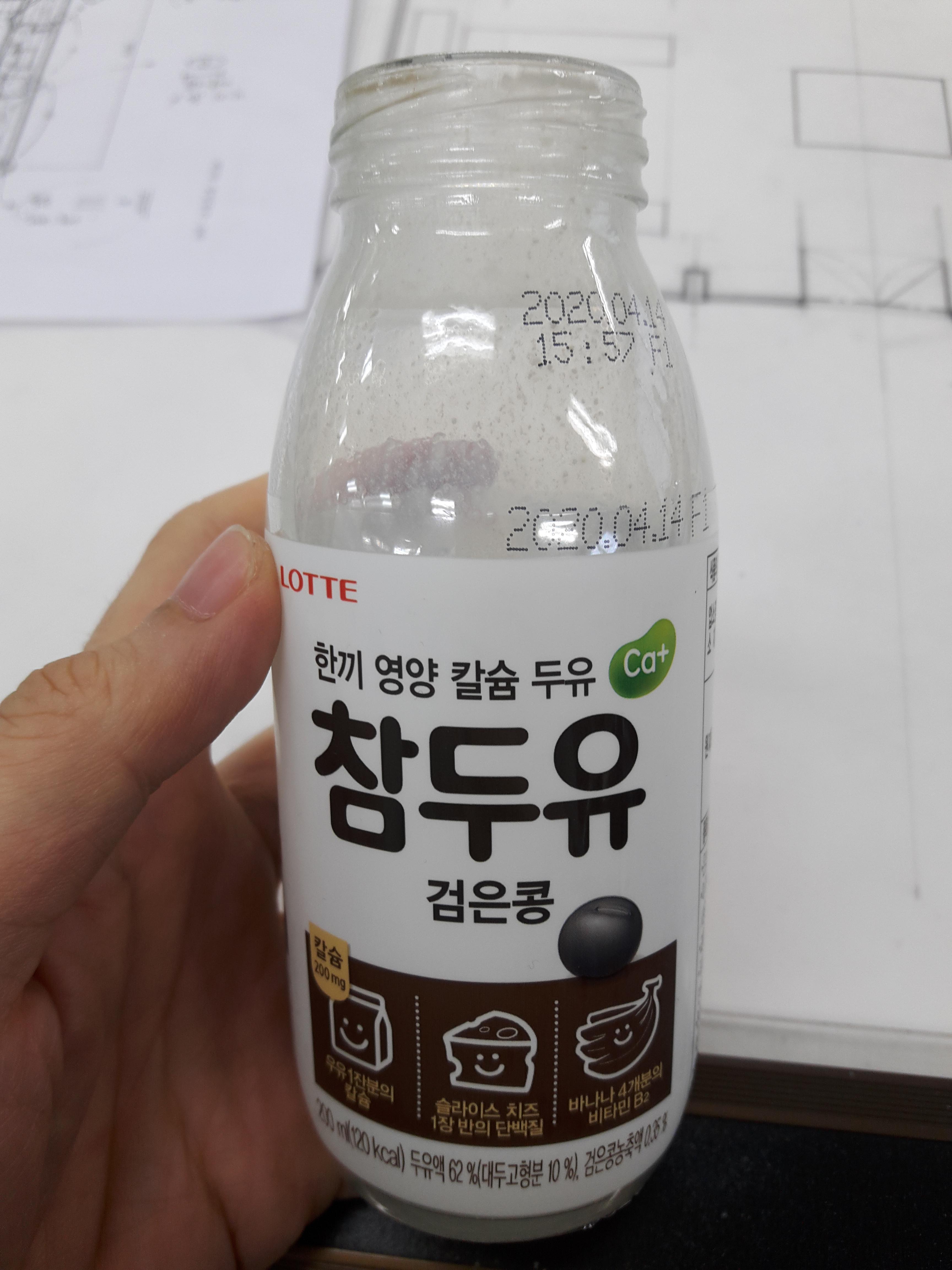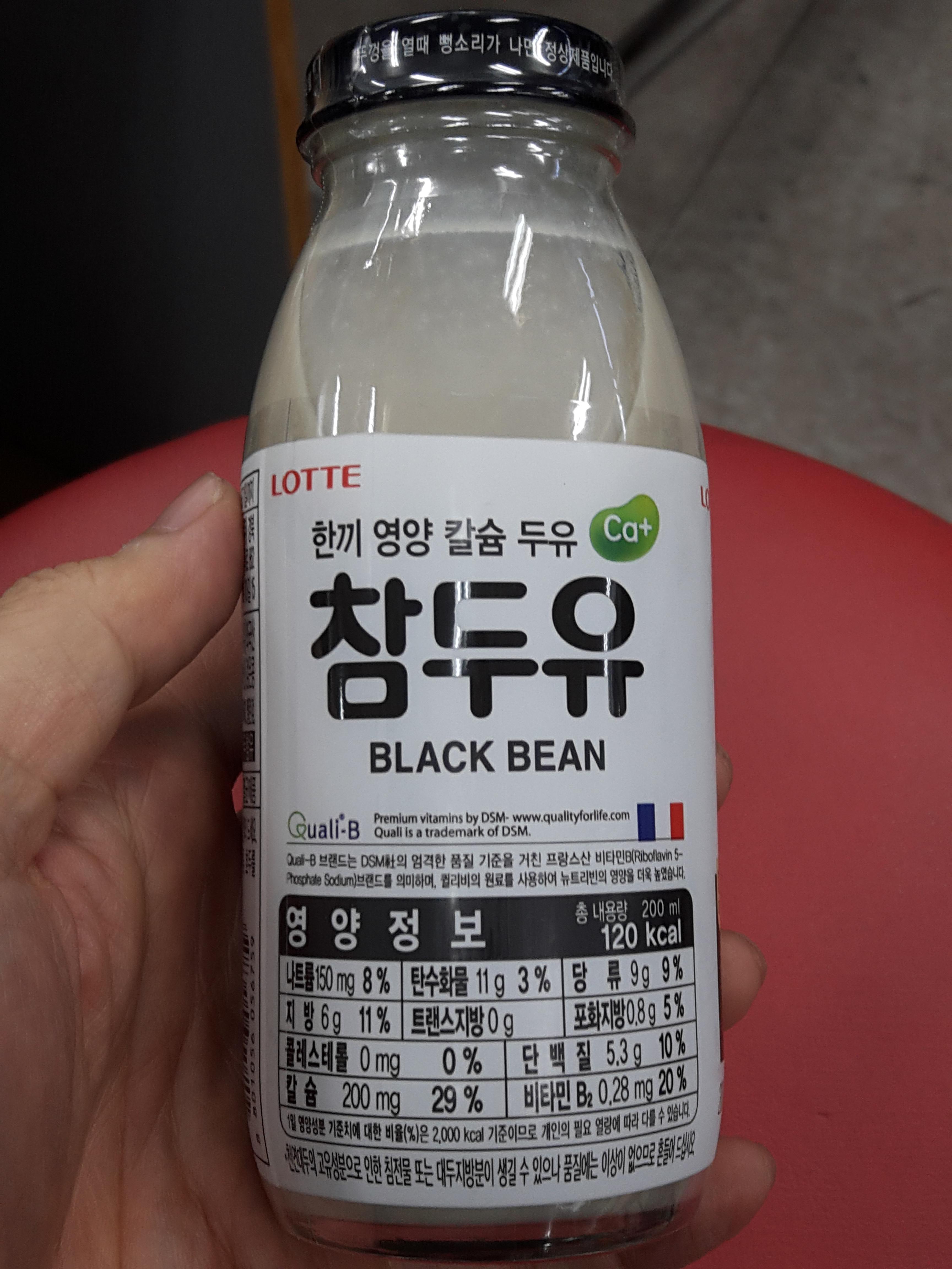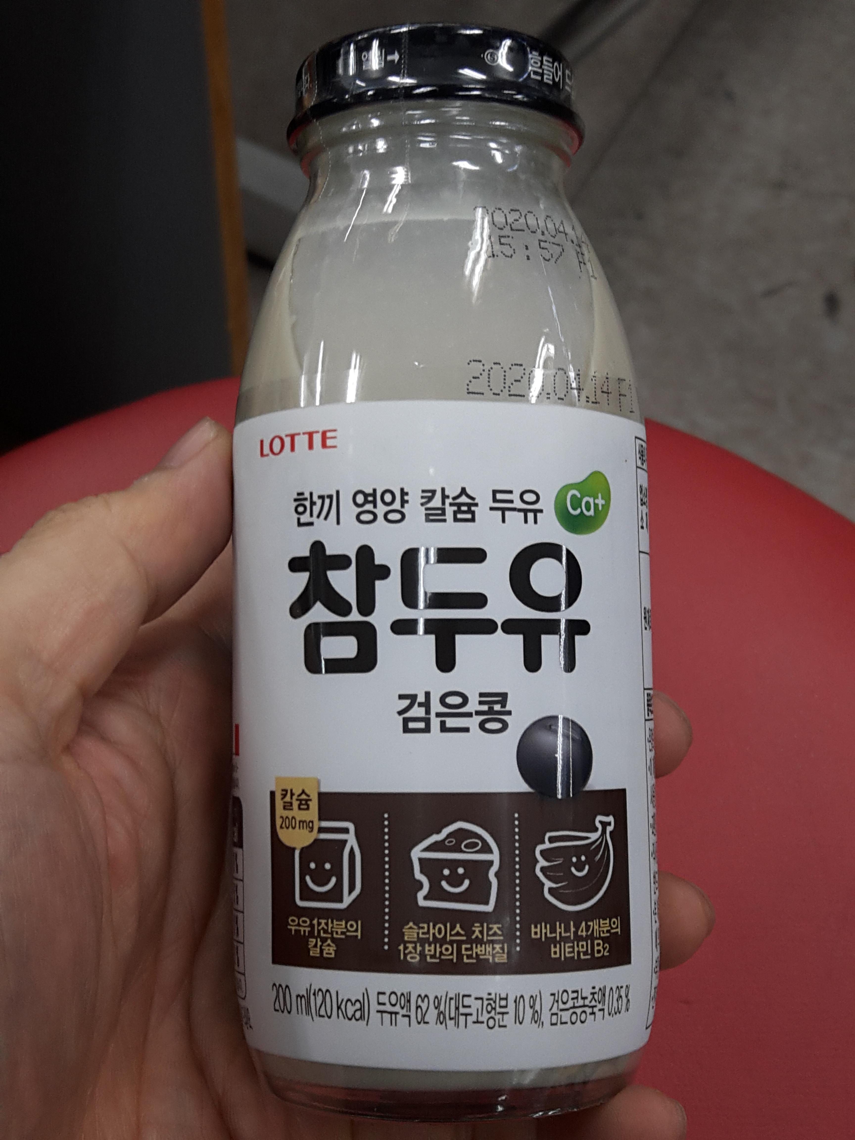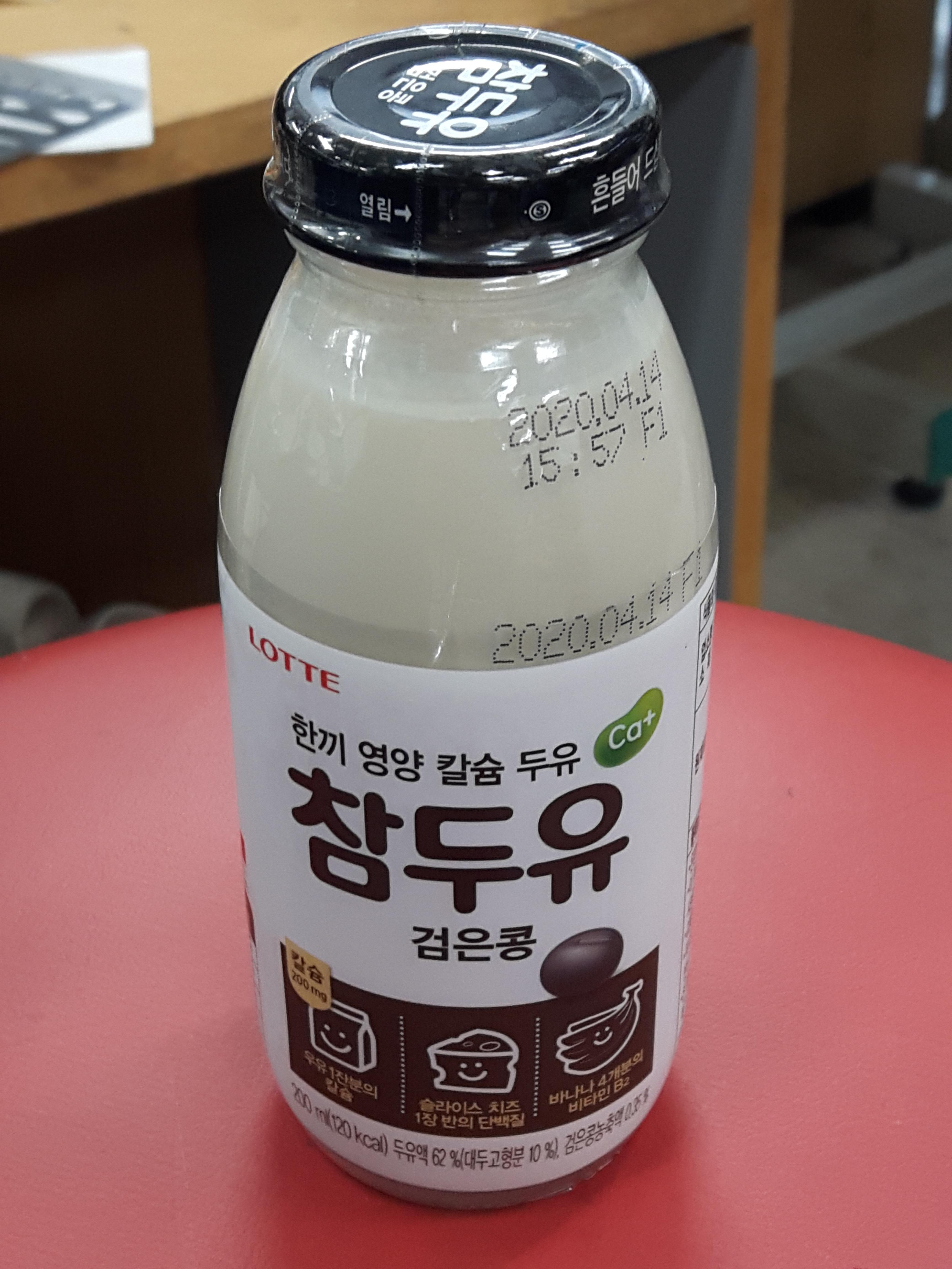 참두유 입니다. 롯데에서 나왔고요. 검은콩 두유이기때문에 글자와 뚜껑이 검은색입니다. ㅎㅎ