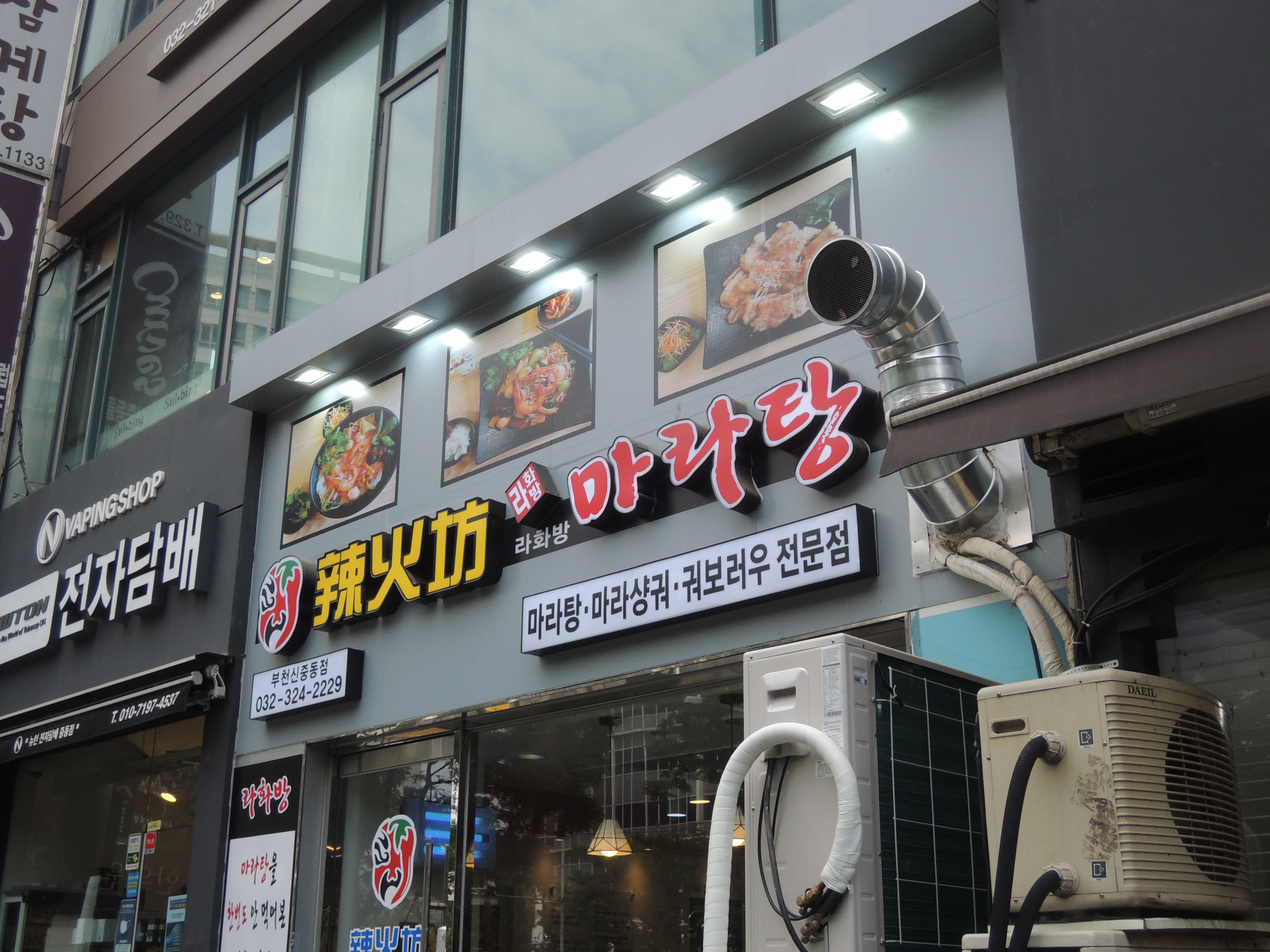 라화방마라탕 신중동점은 7호선 신중동역 3번출구로 나와 롯데백화점 뒤쪽 맛집골목에 위치해 있어요.