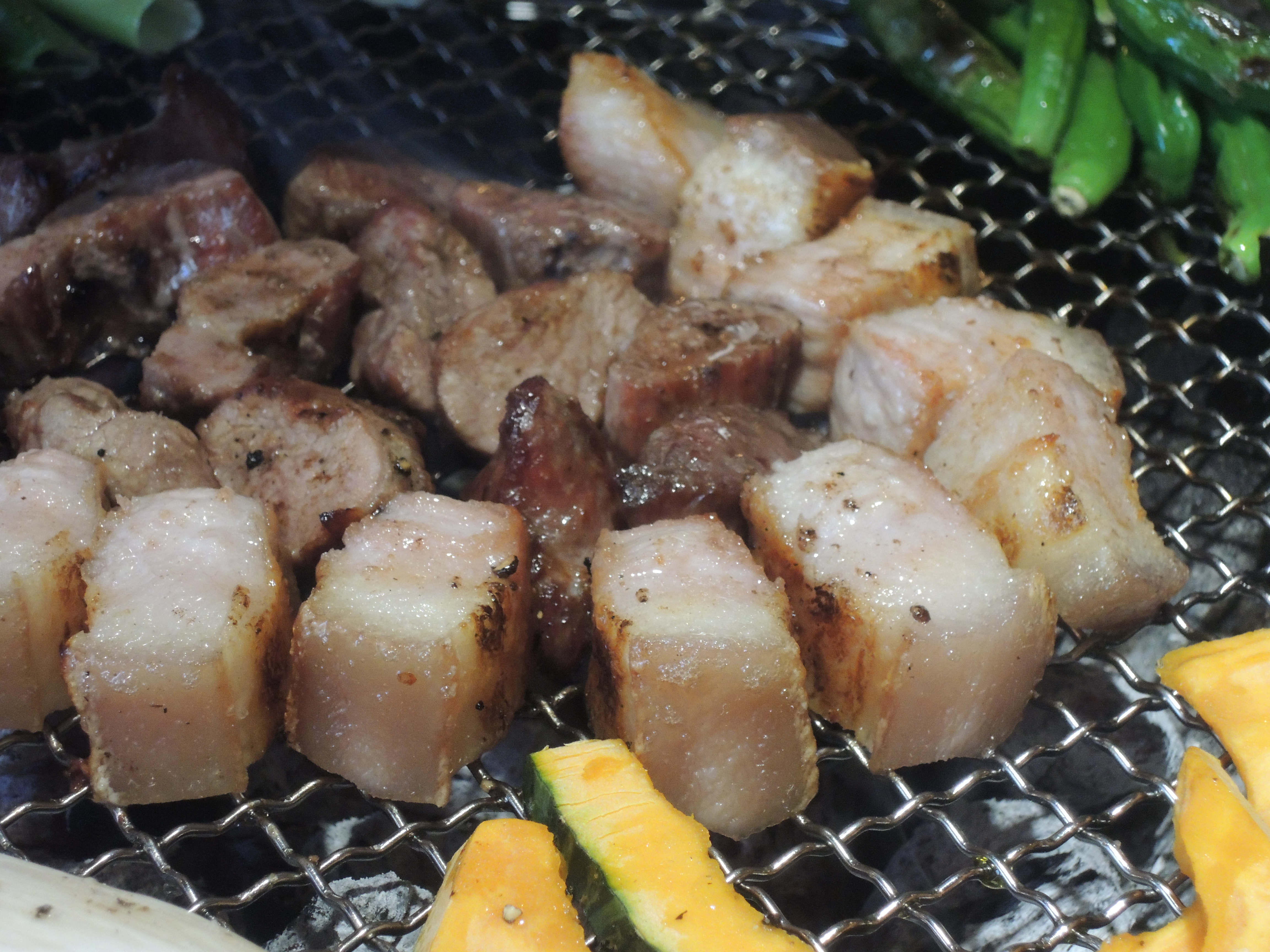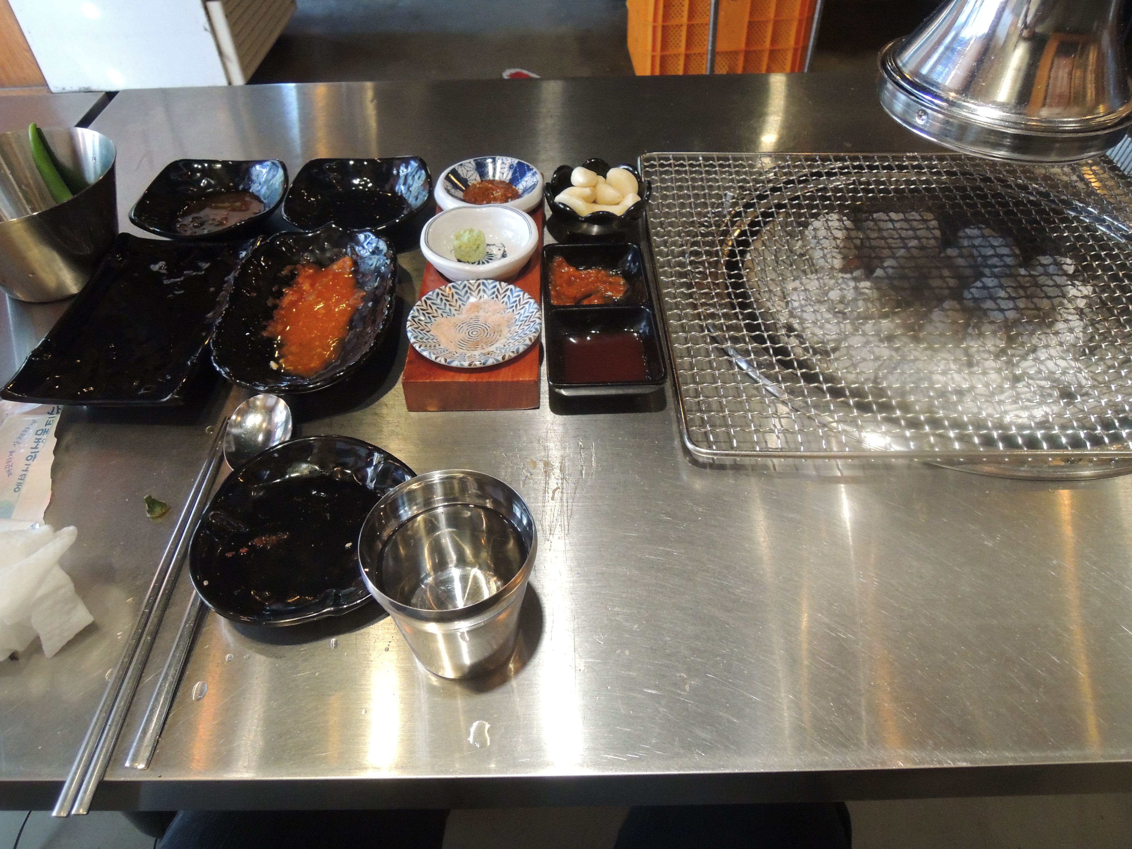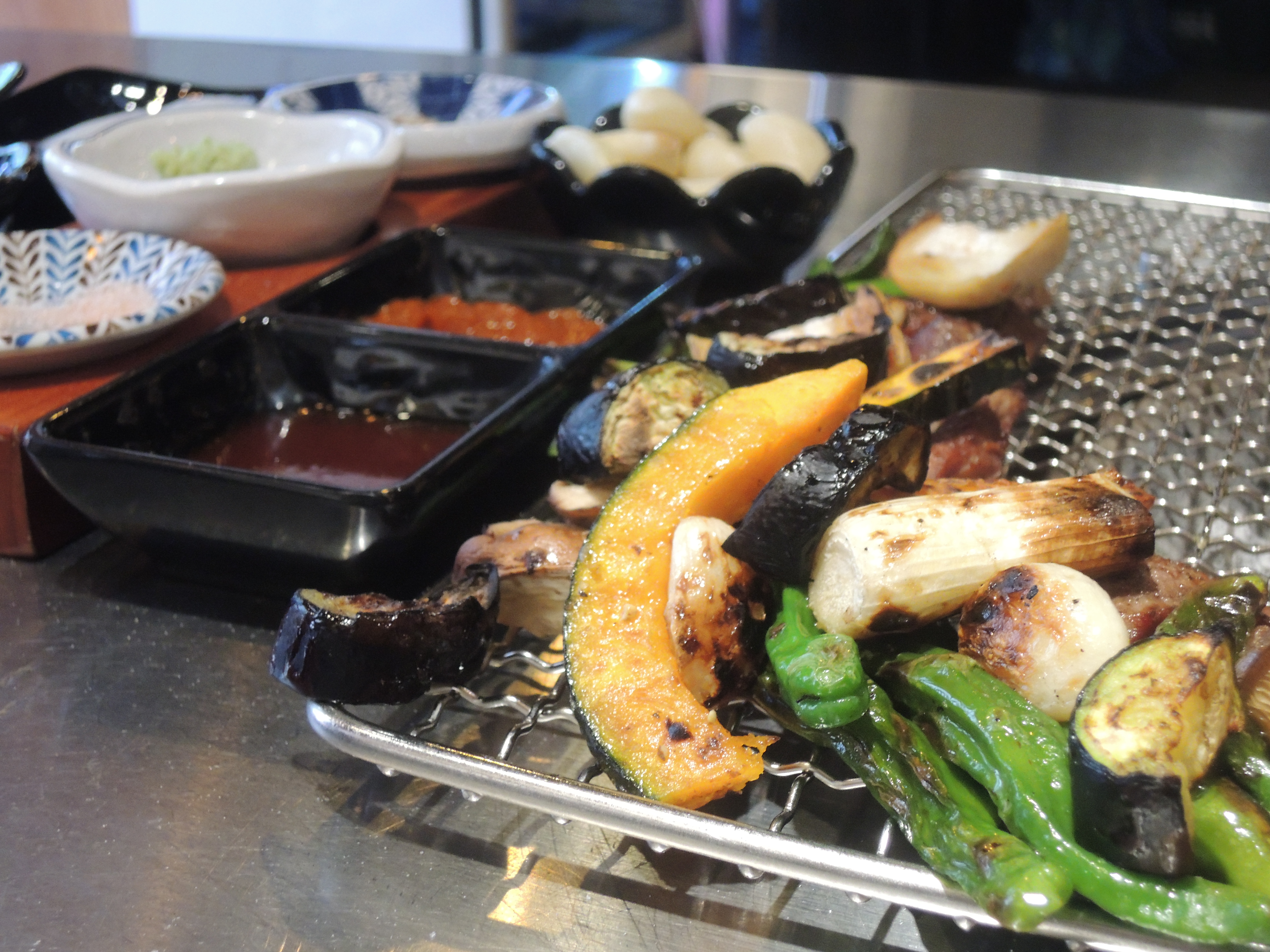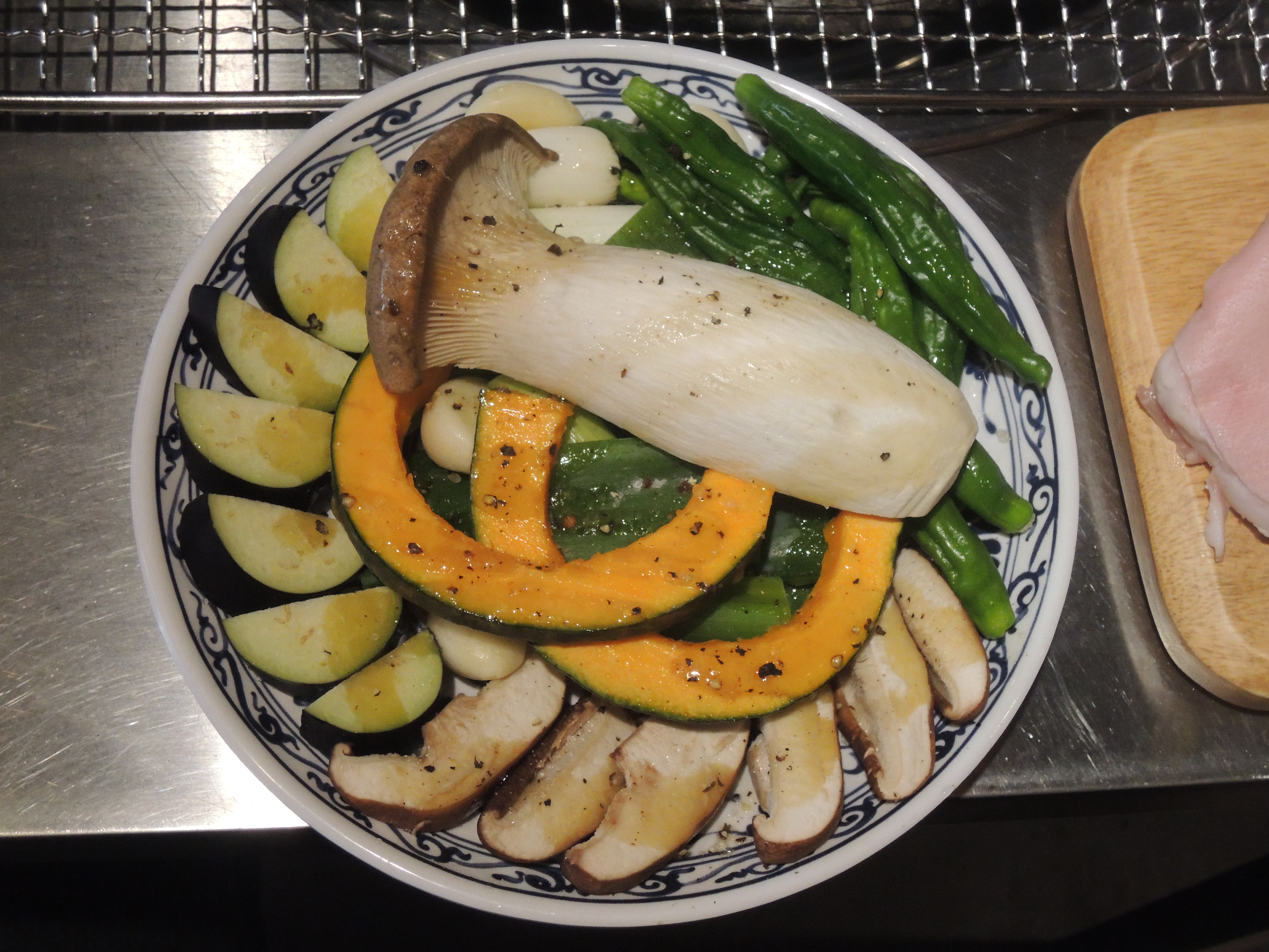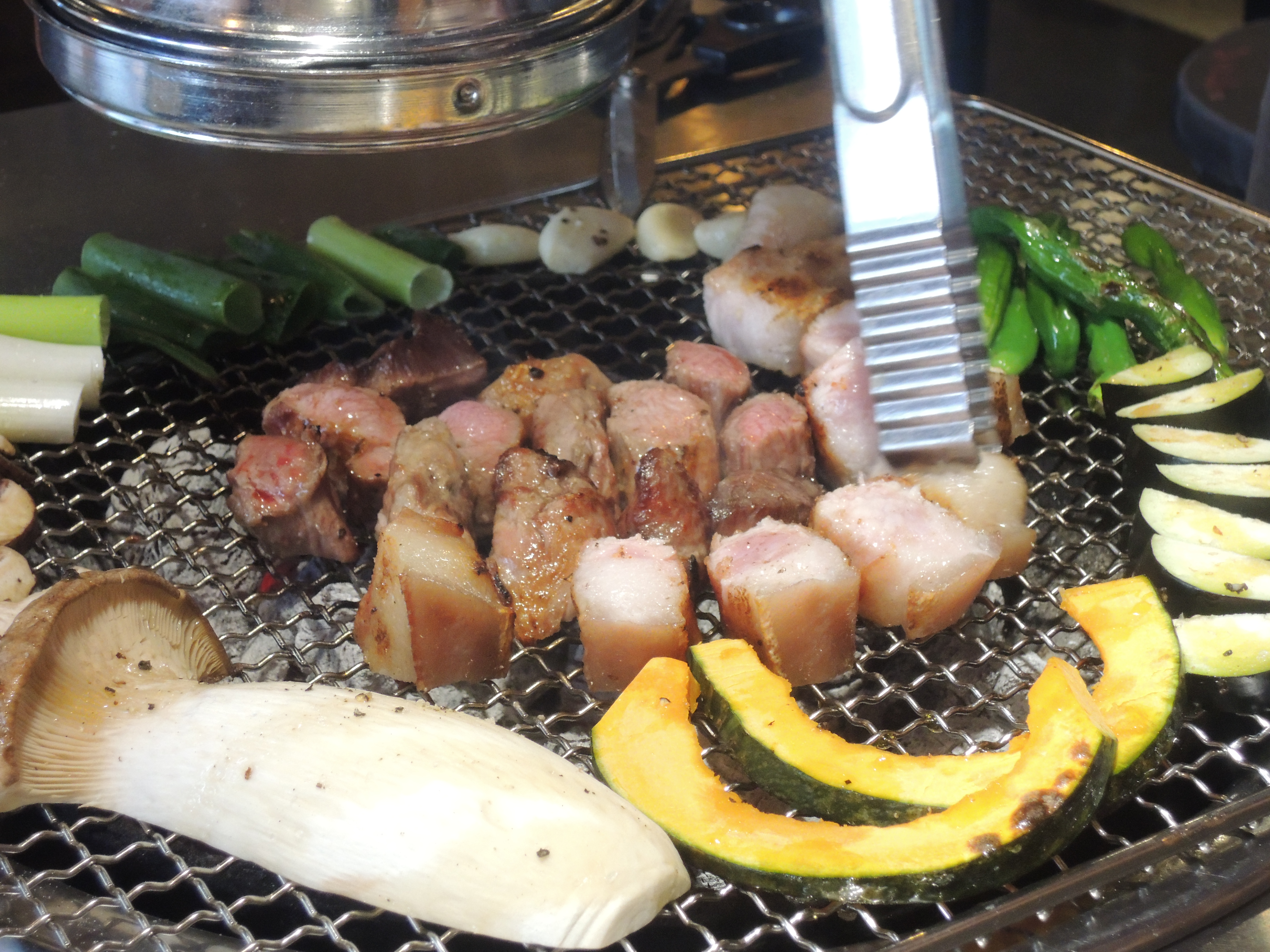 주문한 모둠야채구이와 고기가 나왔습니다.