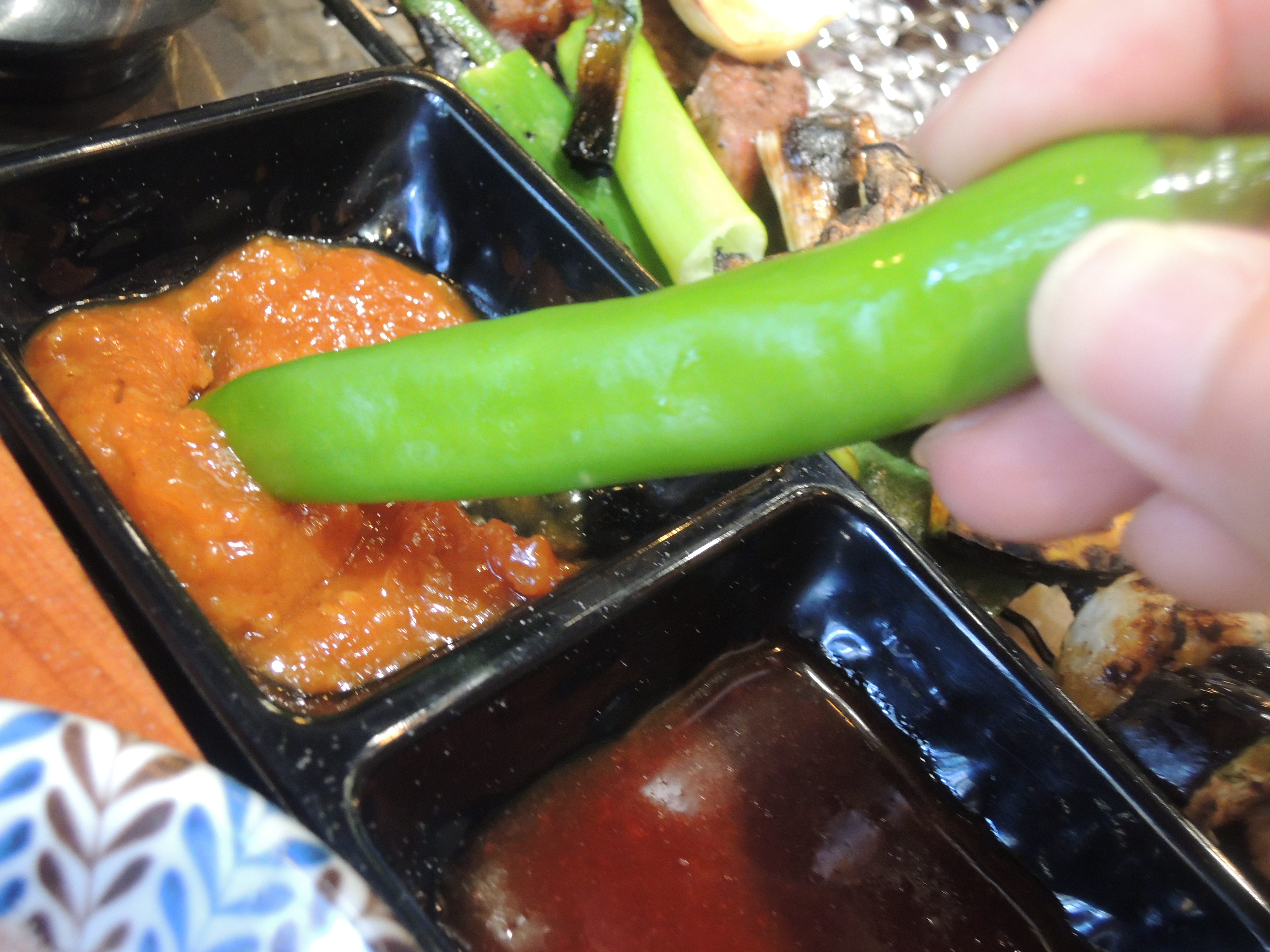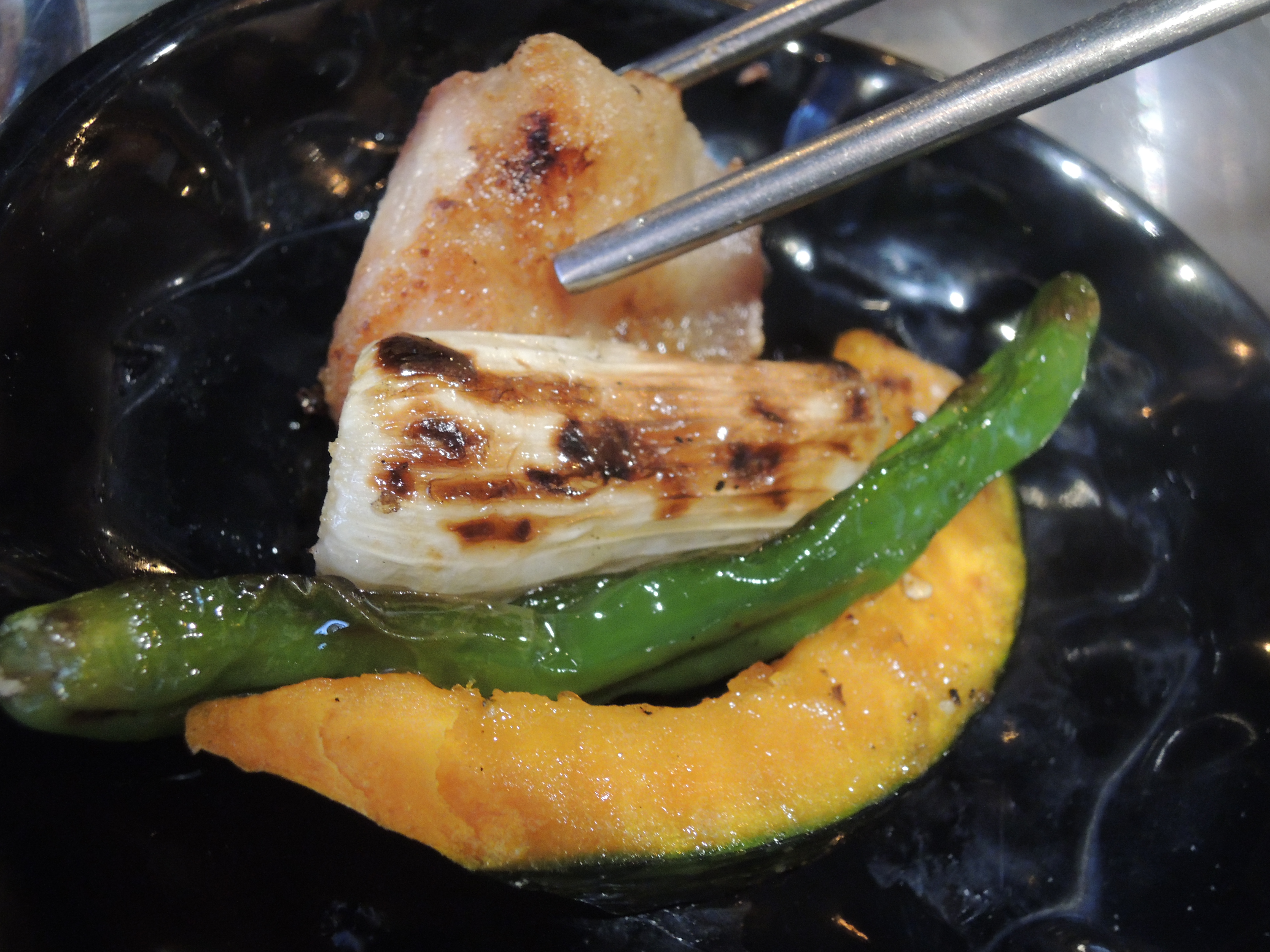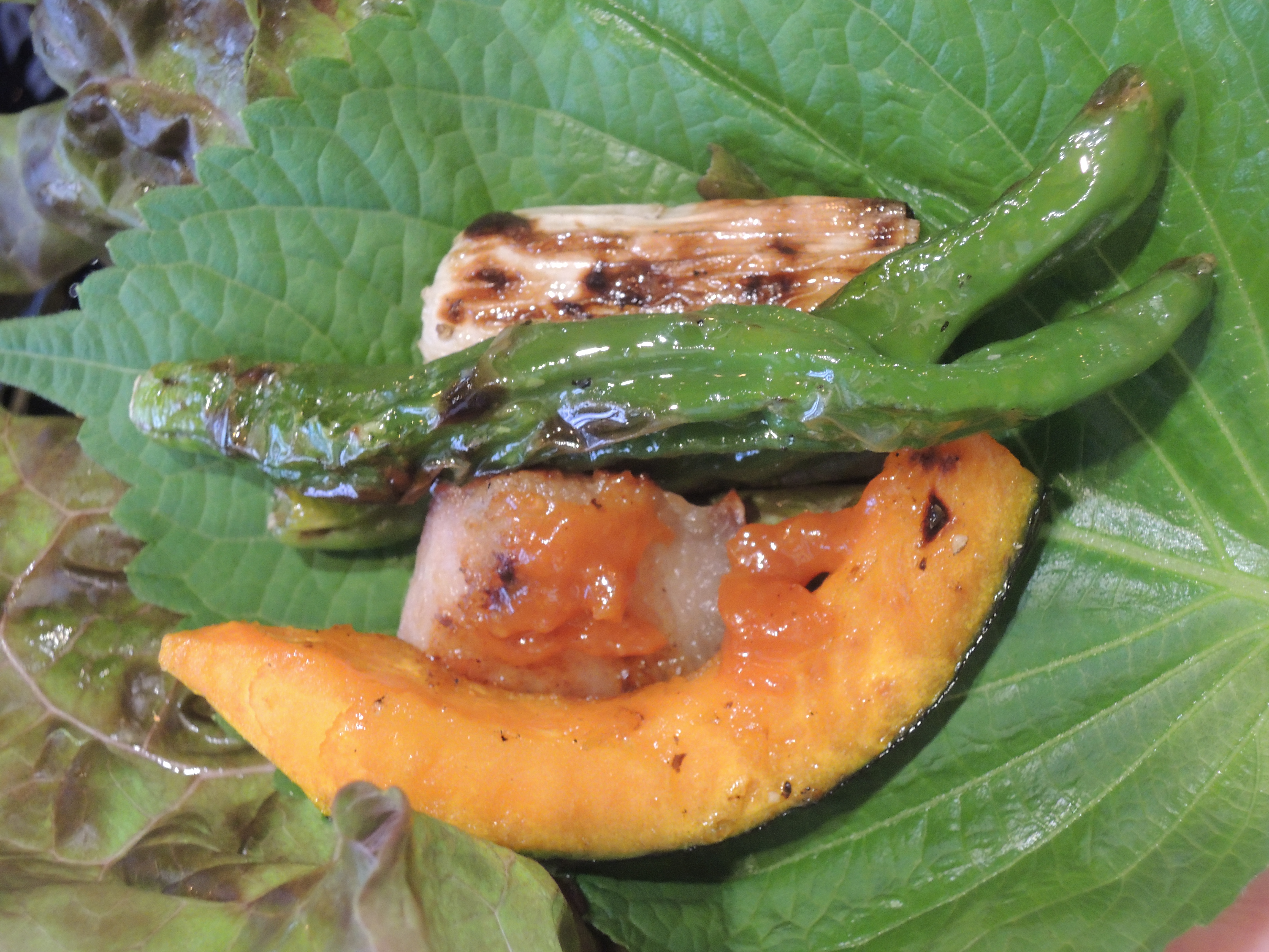 꽈리고추와 대파, 그리고 호박구이를 같이 싸먹습니다. 다양한 식감을 느낄 수 있습니다.