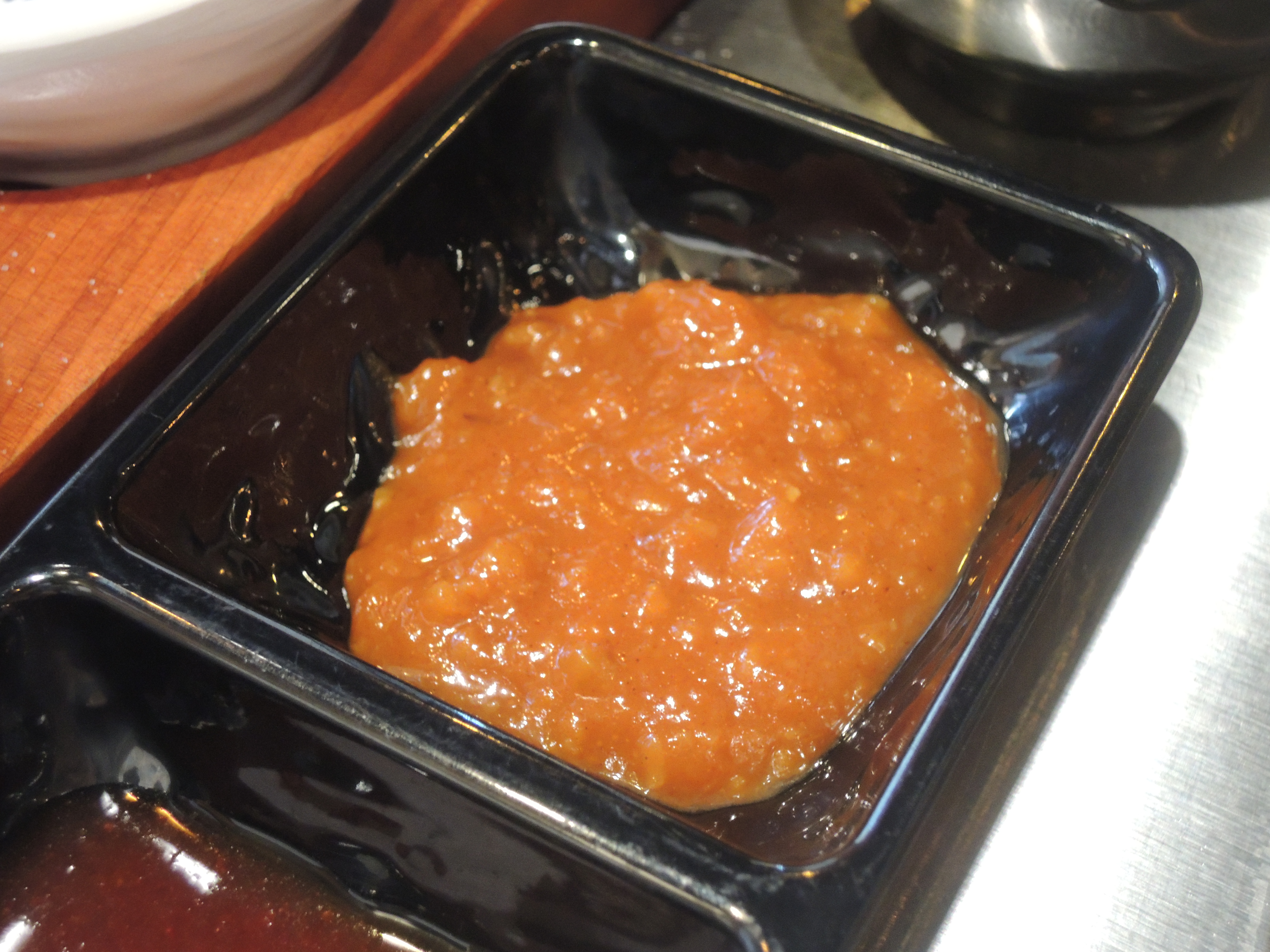 먼저 고기에 찍어먹는 소스입니다. 고추장을 베이스로 한 소스입니다.