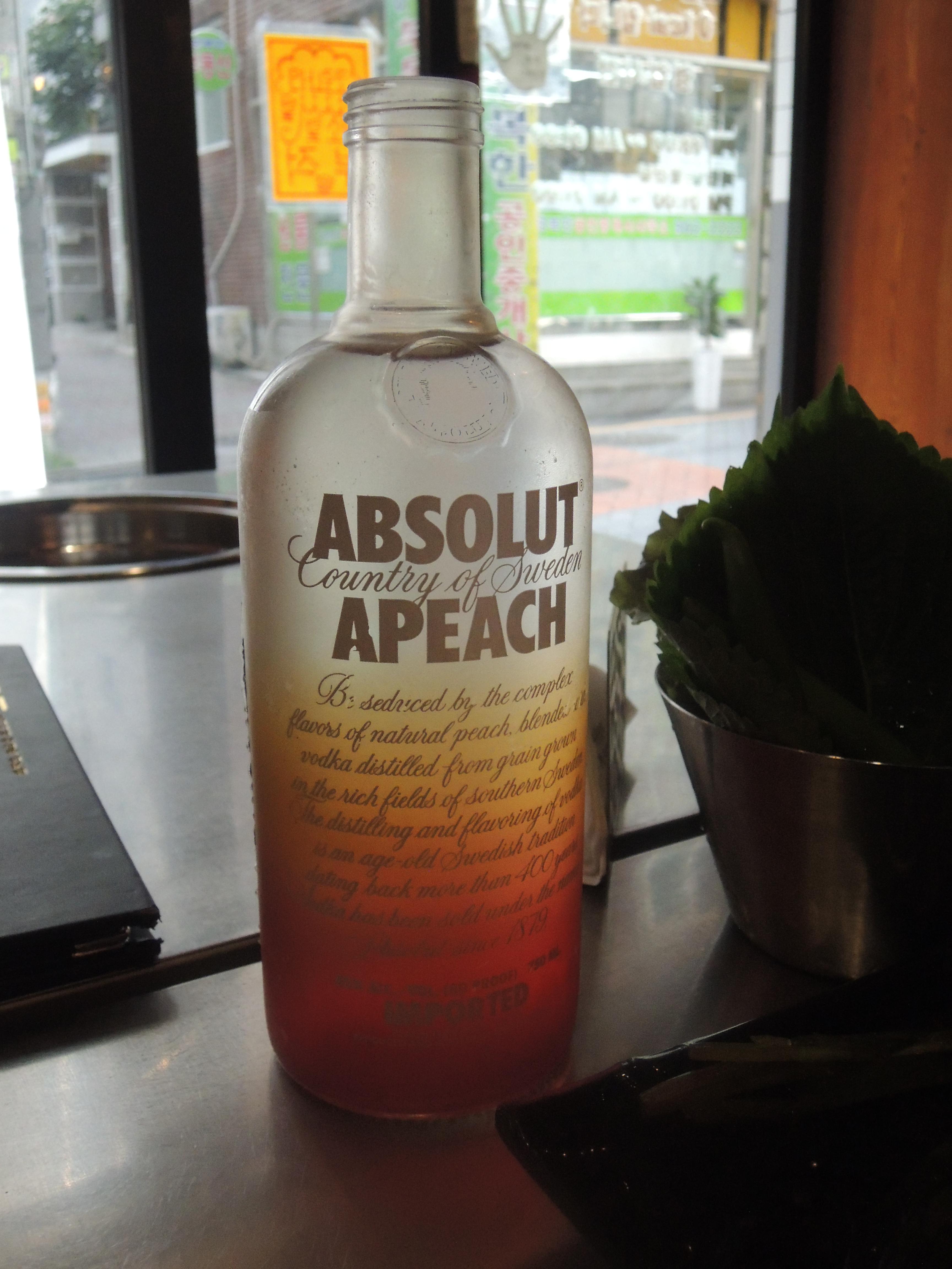 여긴 특이하게 앱솔루트보드카병을 물병으로 쓰더라고요 ㅎㅎ 인상적이었습니다.