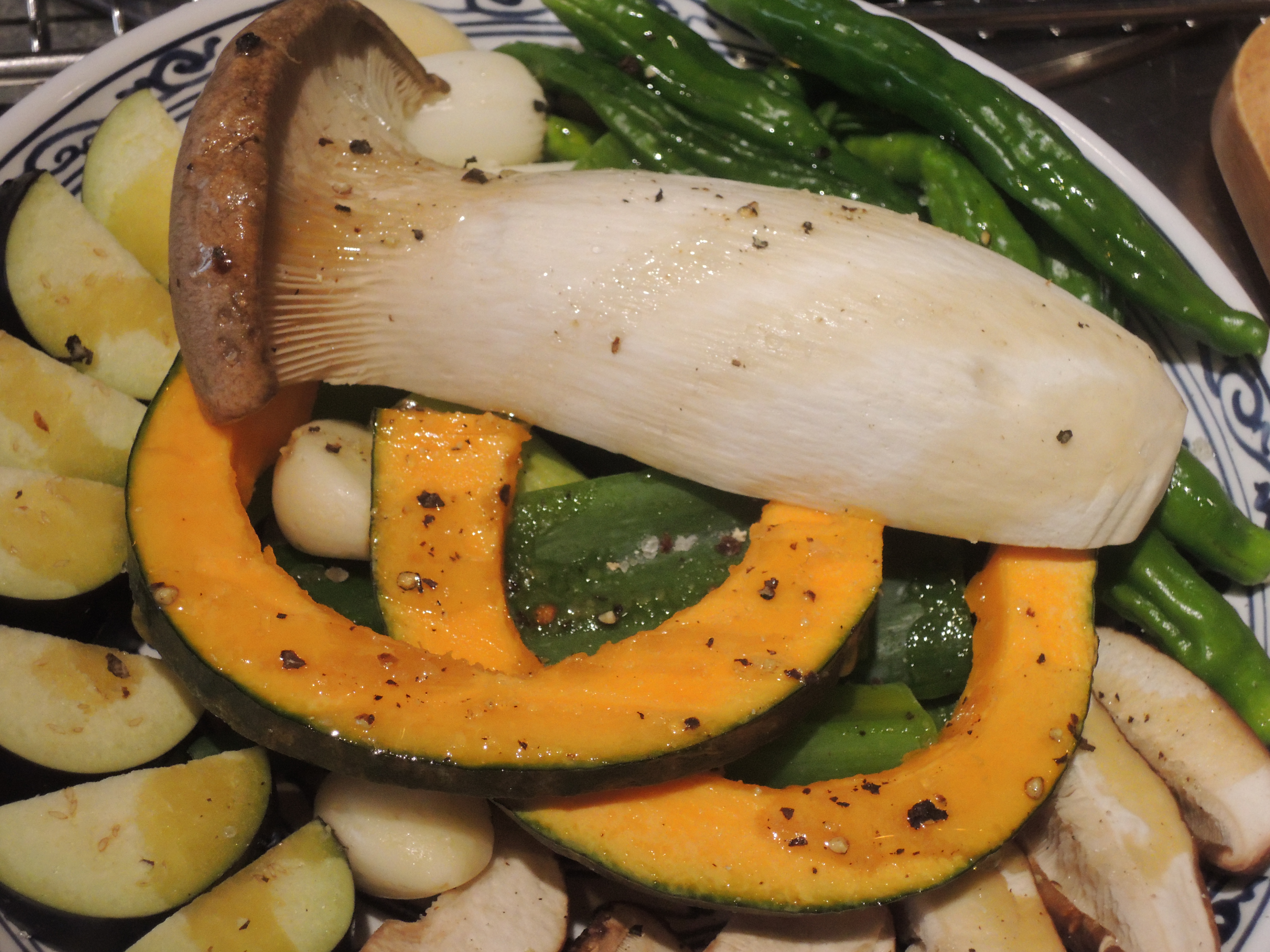 제가 좋아하는 새송이버섯이네요. 그외에도 꽈리고추, 마늘, 가지 등등이 있습니다.