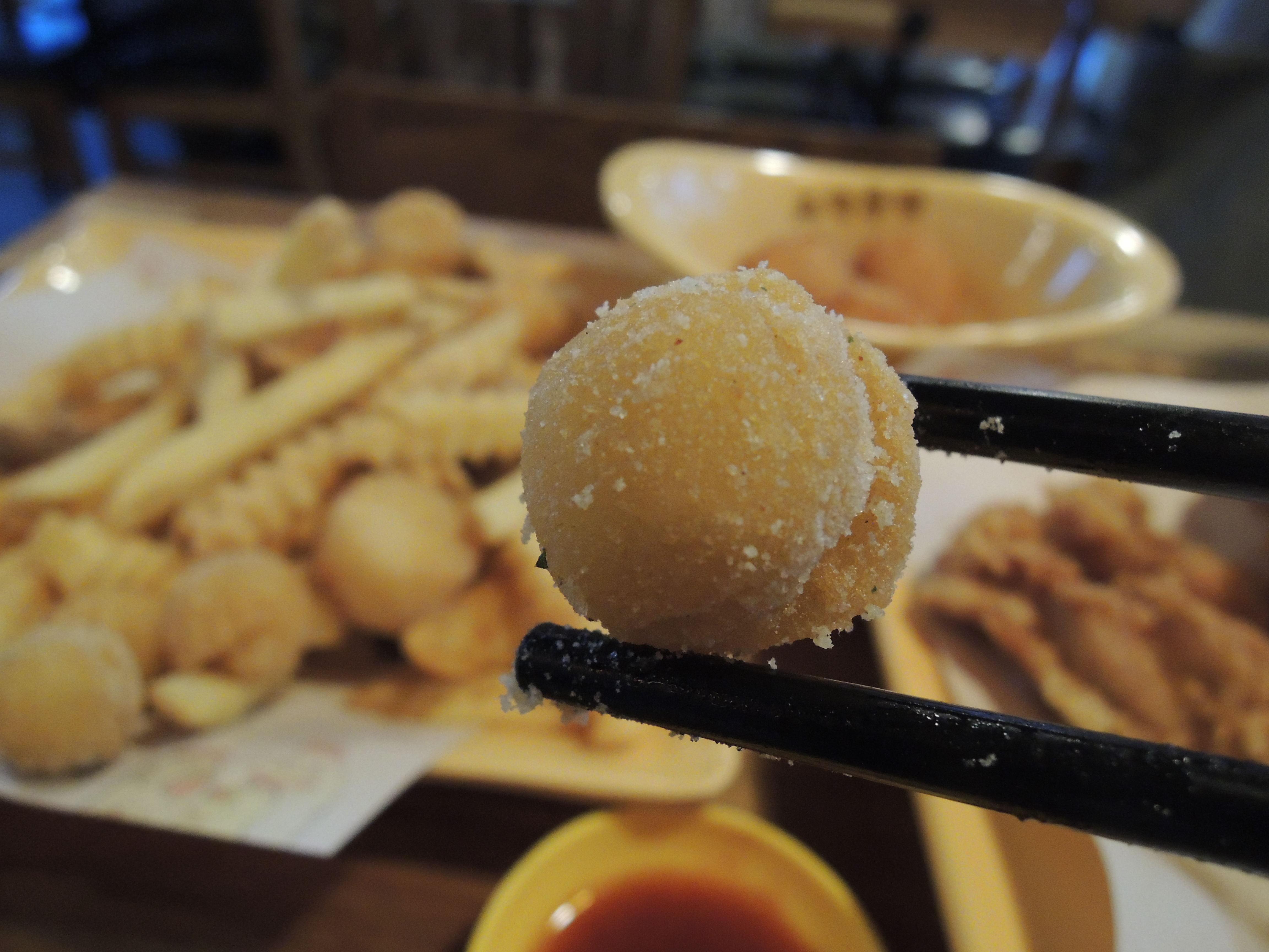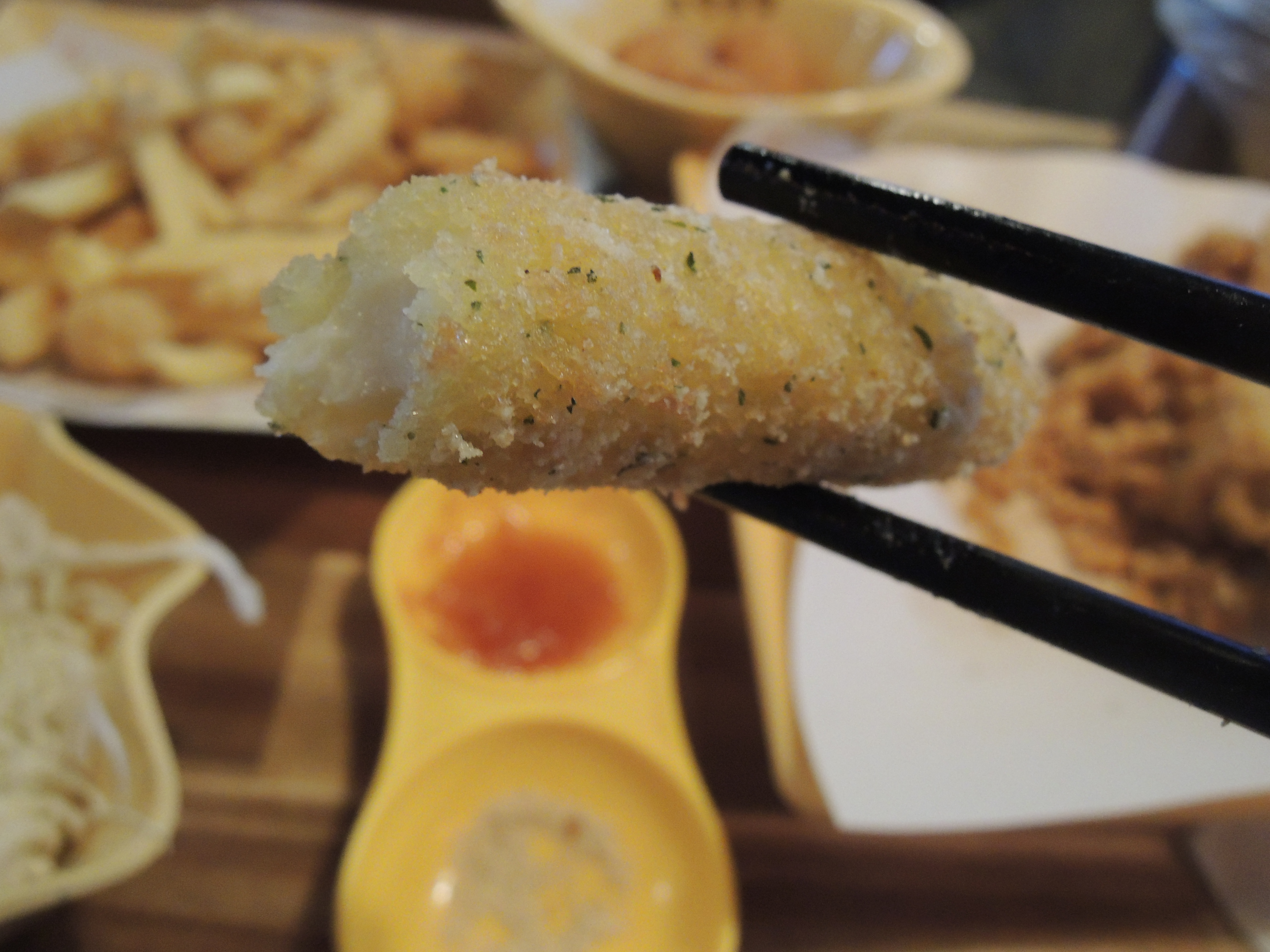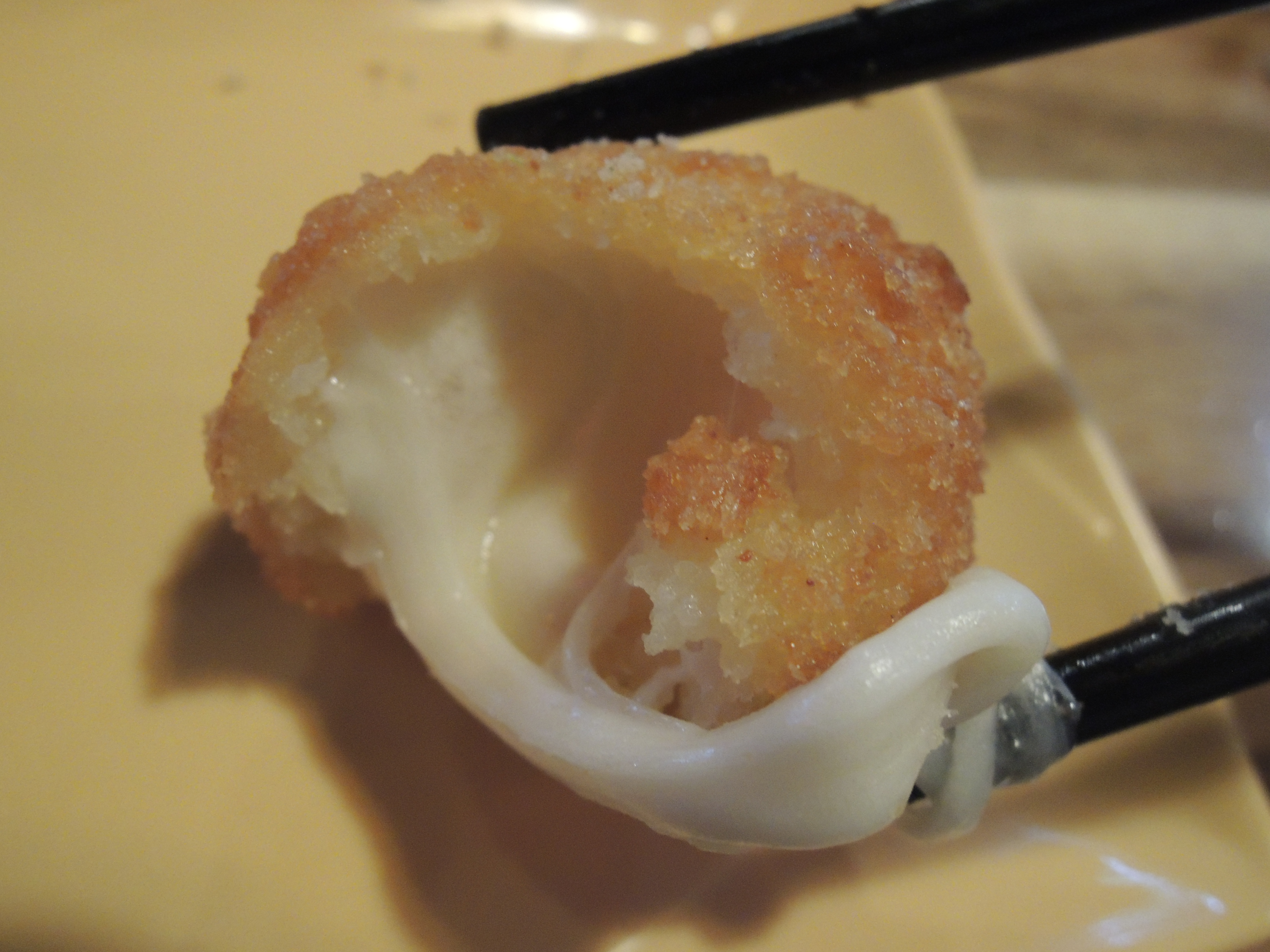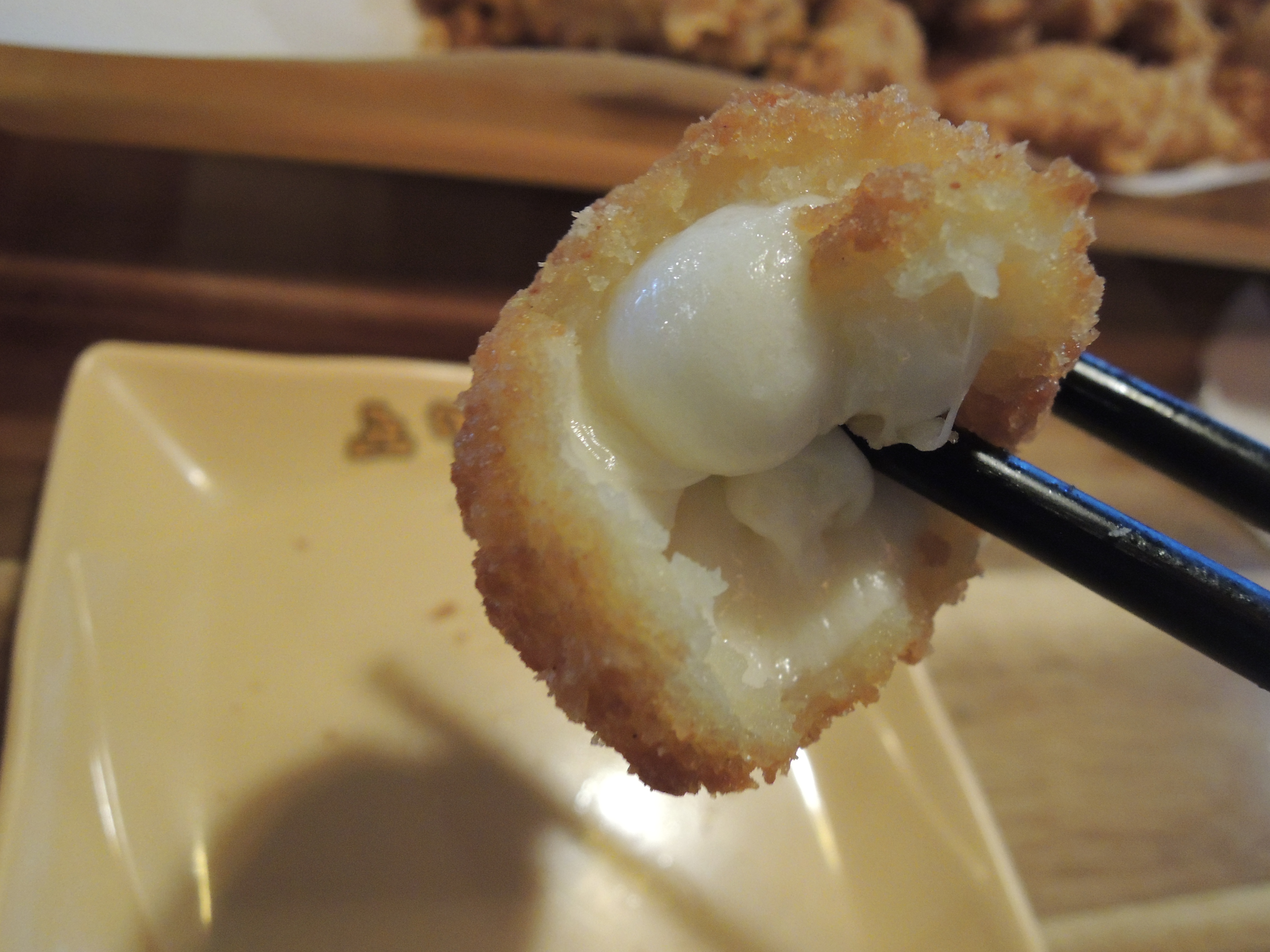 치즈볼입니다. 안에 모짜렐라 치즈가 들어있어서 쭉쭉 늘어납니다.