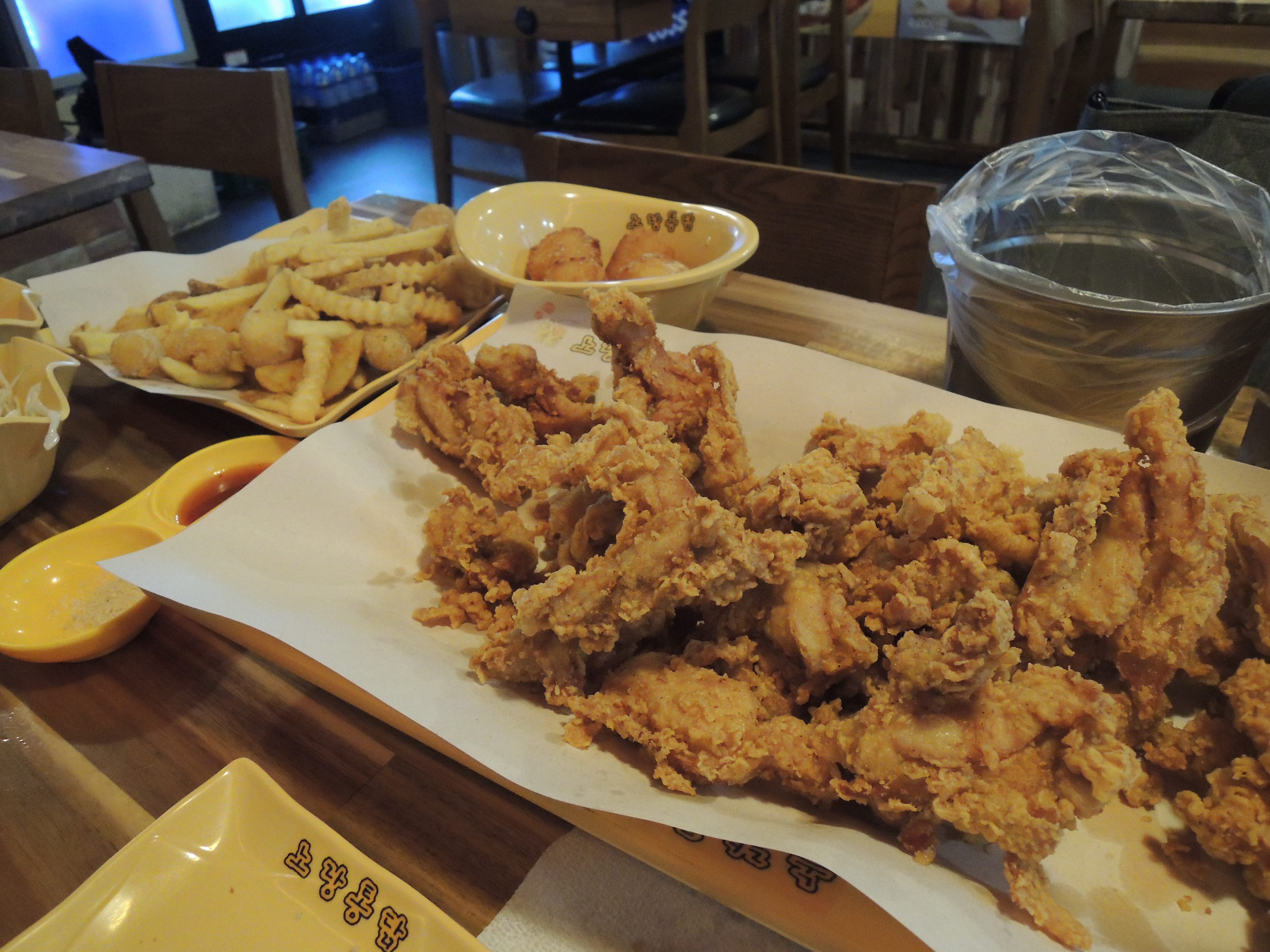 후라이드치킨과 노랑봉투감자, 치즈볼 넘 맛있네요. 특히 치즈볼 모짜렐라 치즈가 쭉쭉 늘어나서 재밌게 맛있게 잘 먹었습니다. 오랜만에 가본 노랑통닭 여전히 맛있네요. 잘 먹었어요. 추천합니다.