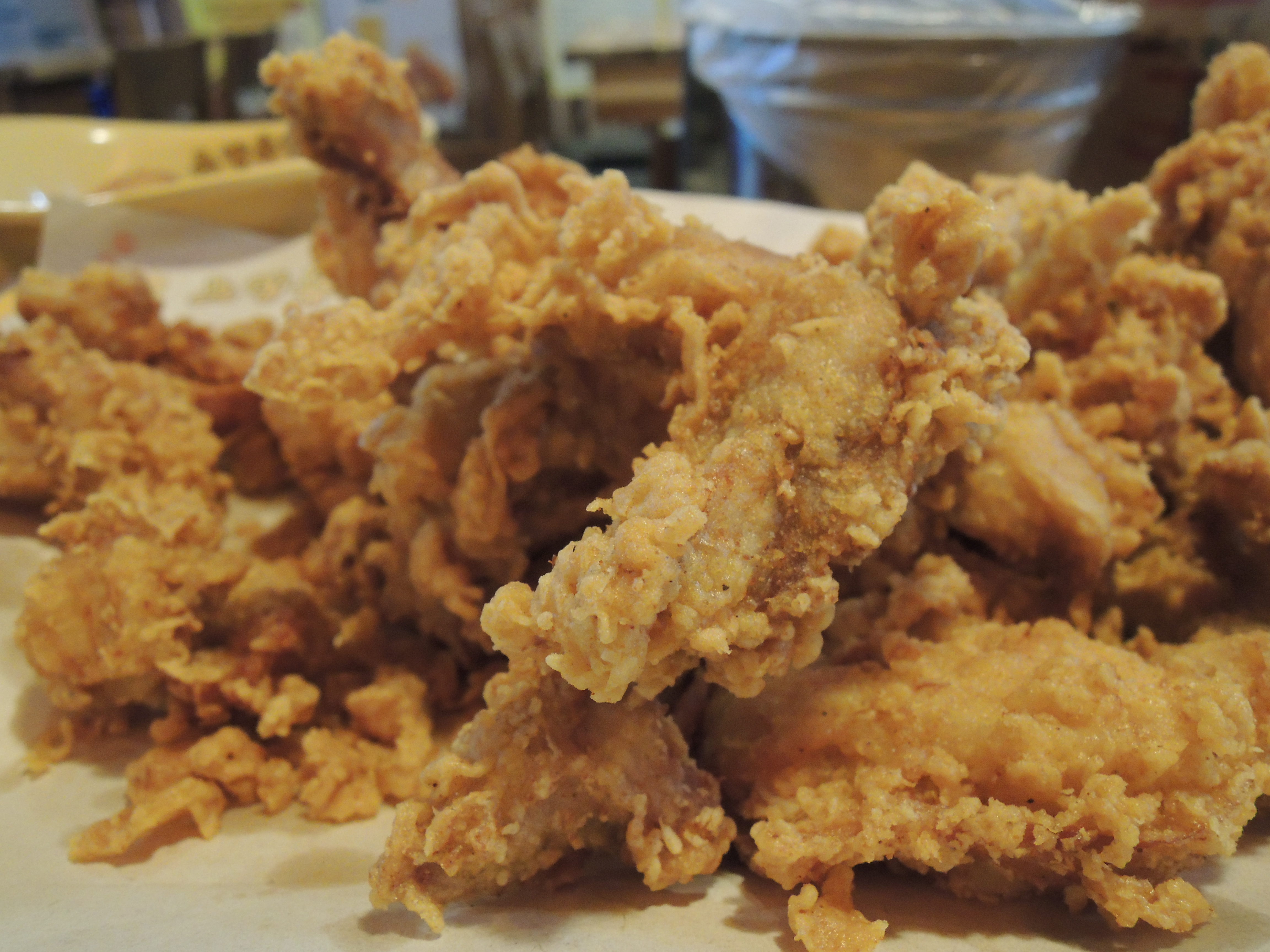 주문한 엄청 큰 후라이드가 나왔습니다. 이름대로 엄청 양이 많네요. 저는 순살로 주문했습니다.