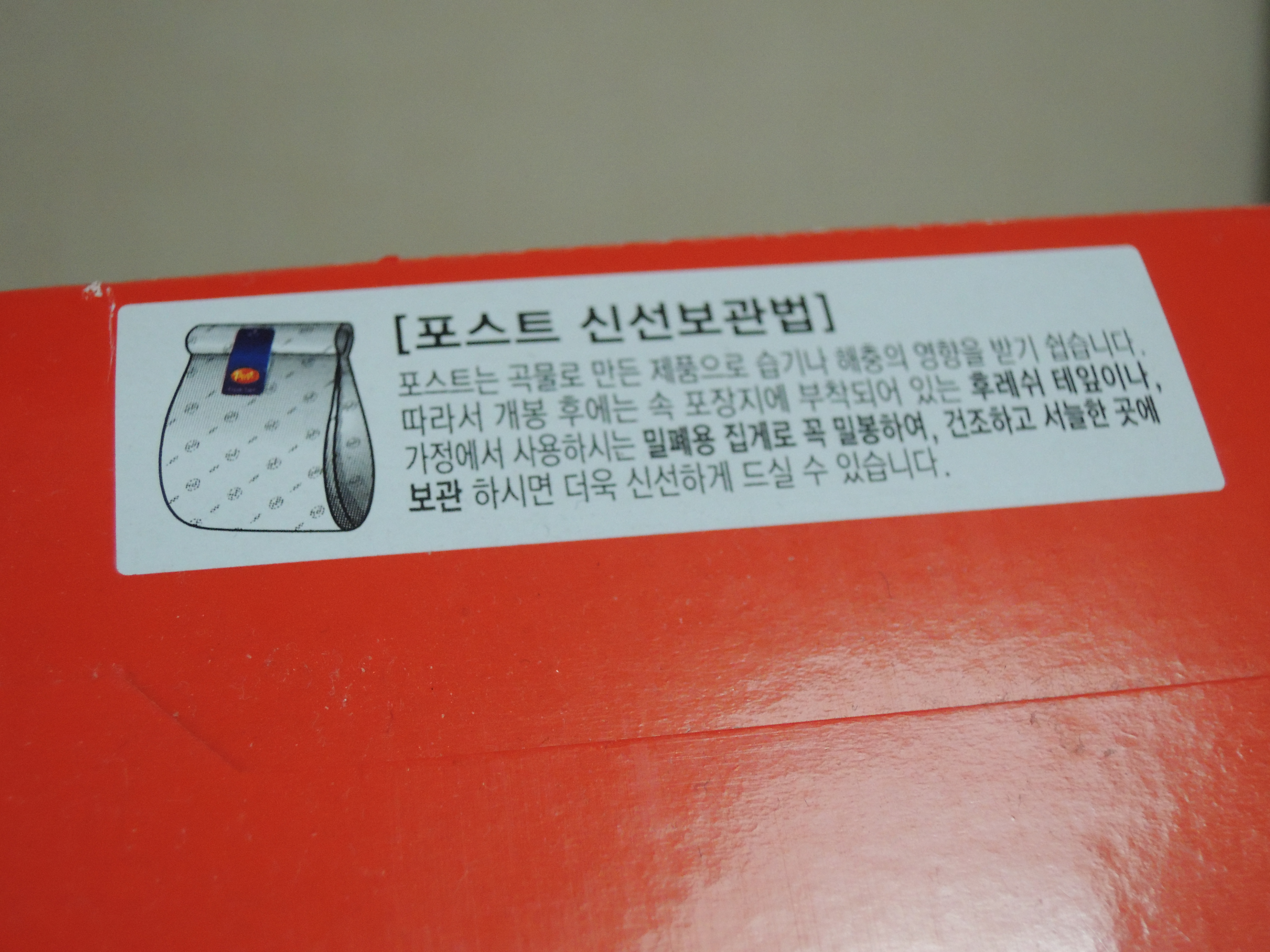 포스트 오곡코코볼은 곡물로 만든 시리얼로 습기나 해충의 영향을 받을 수 있기 때문에 후레쉬테잎이나 집게로 밀봉을 권유하고 있습니다.