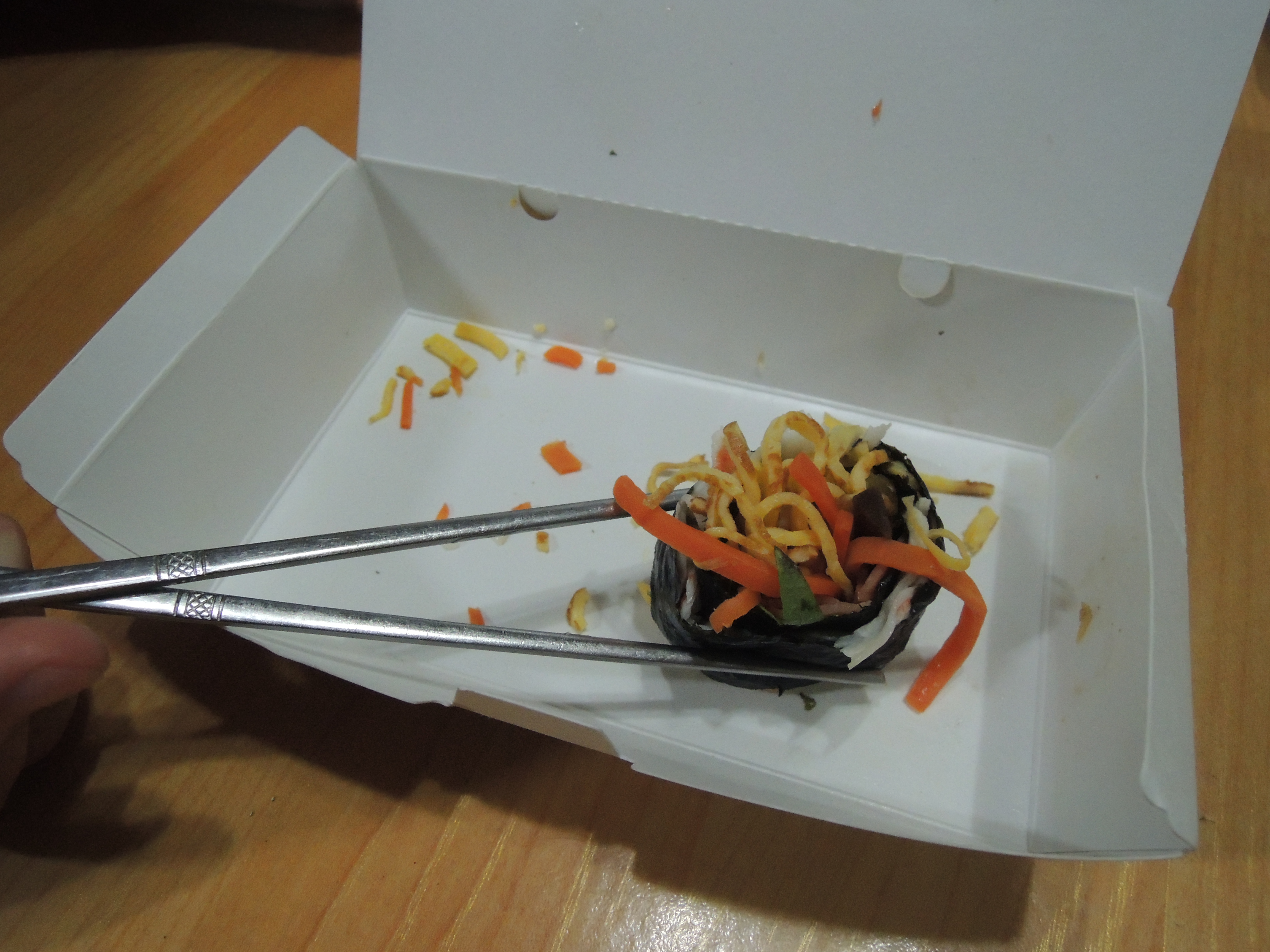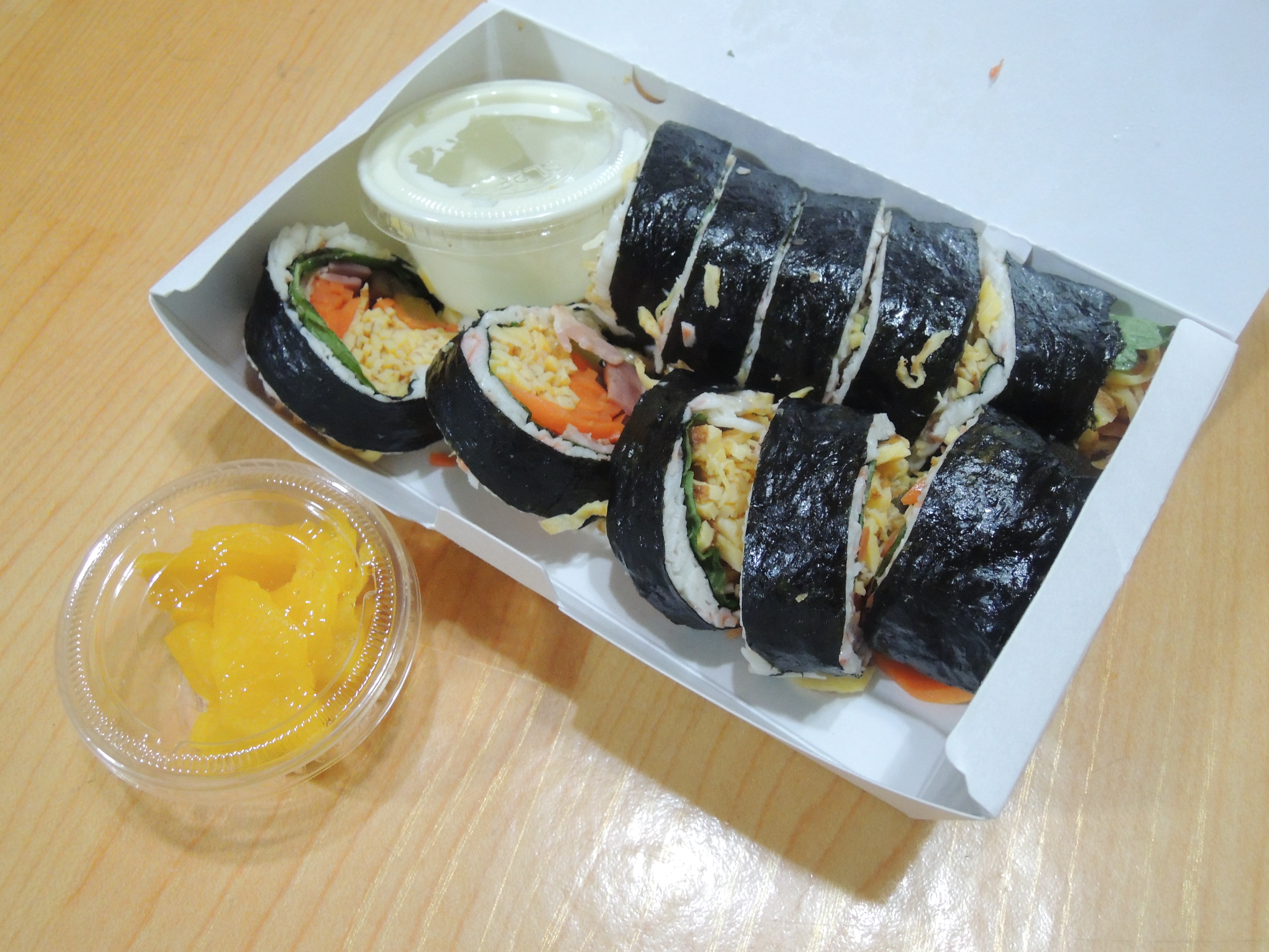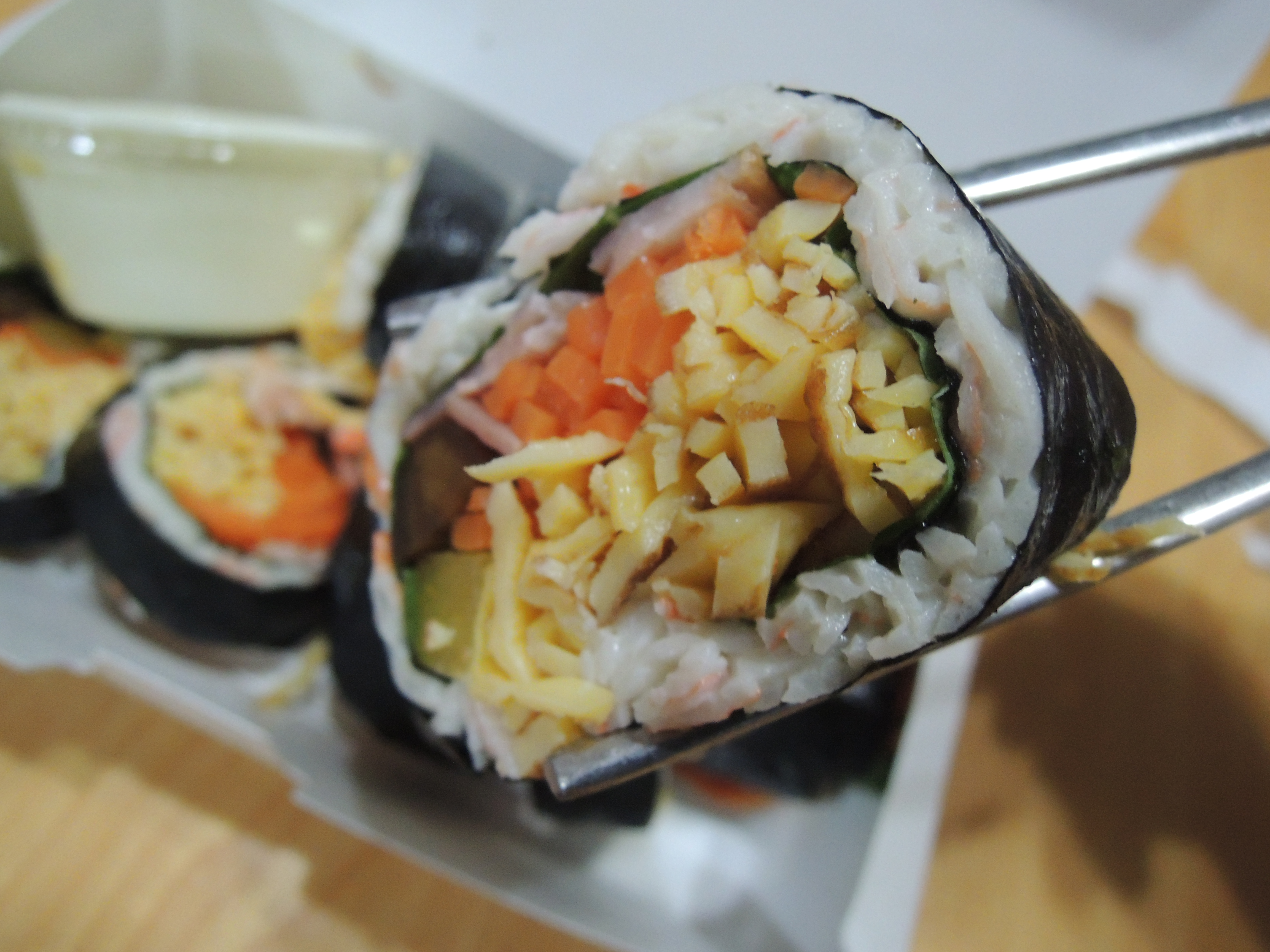 김밥은 자전거 타고 와서 흔들려서 다소 모양이 흐트러졌네요.