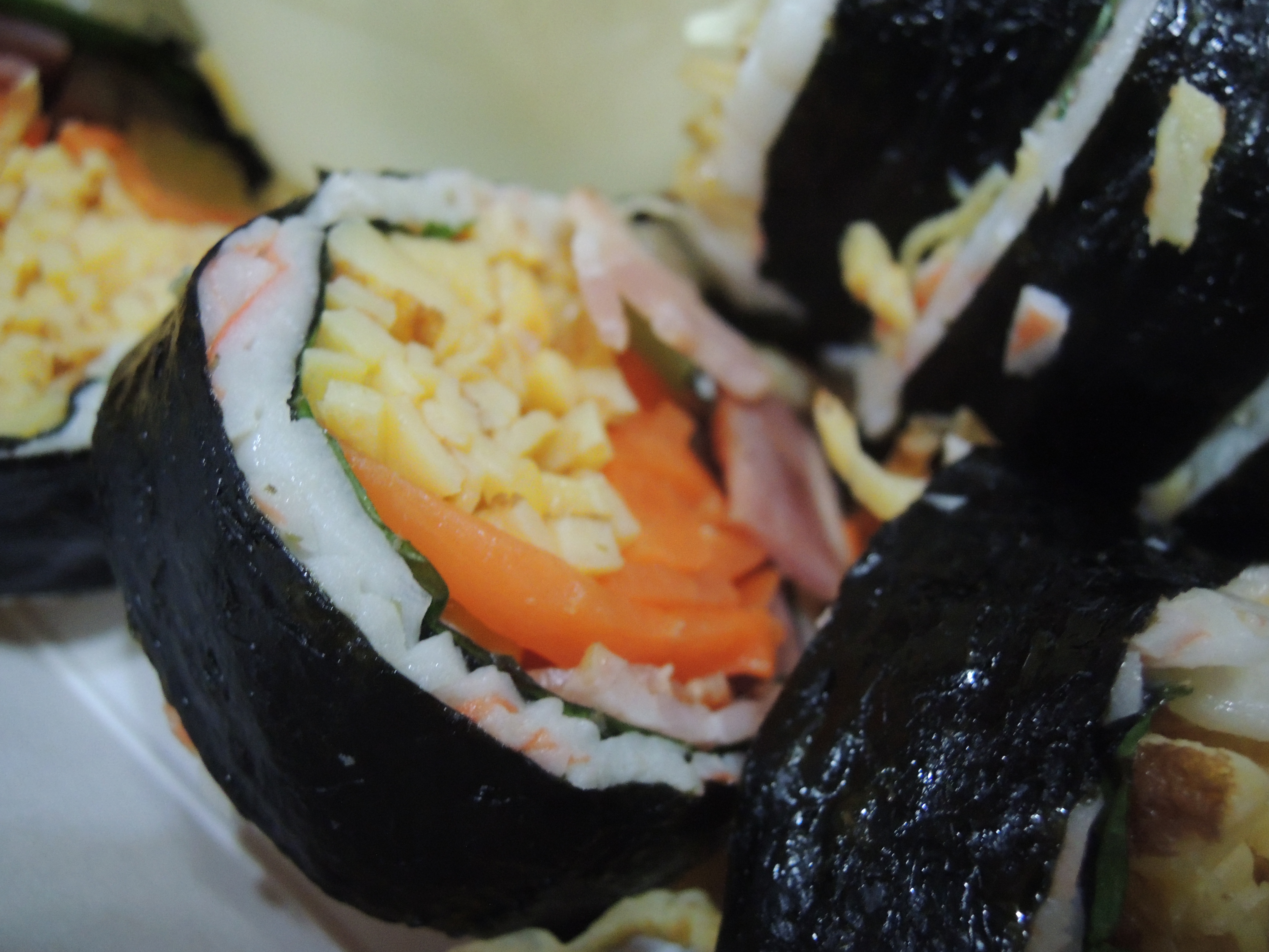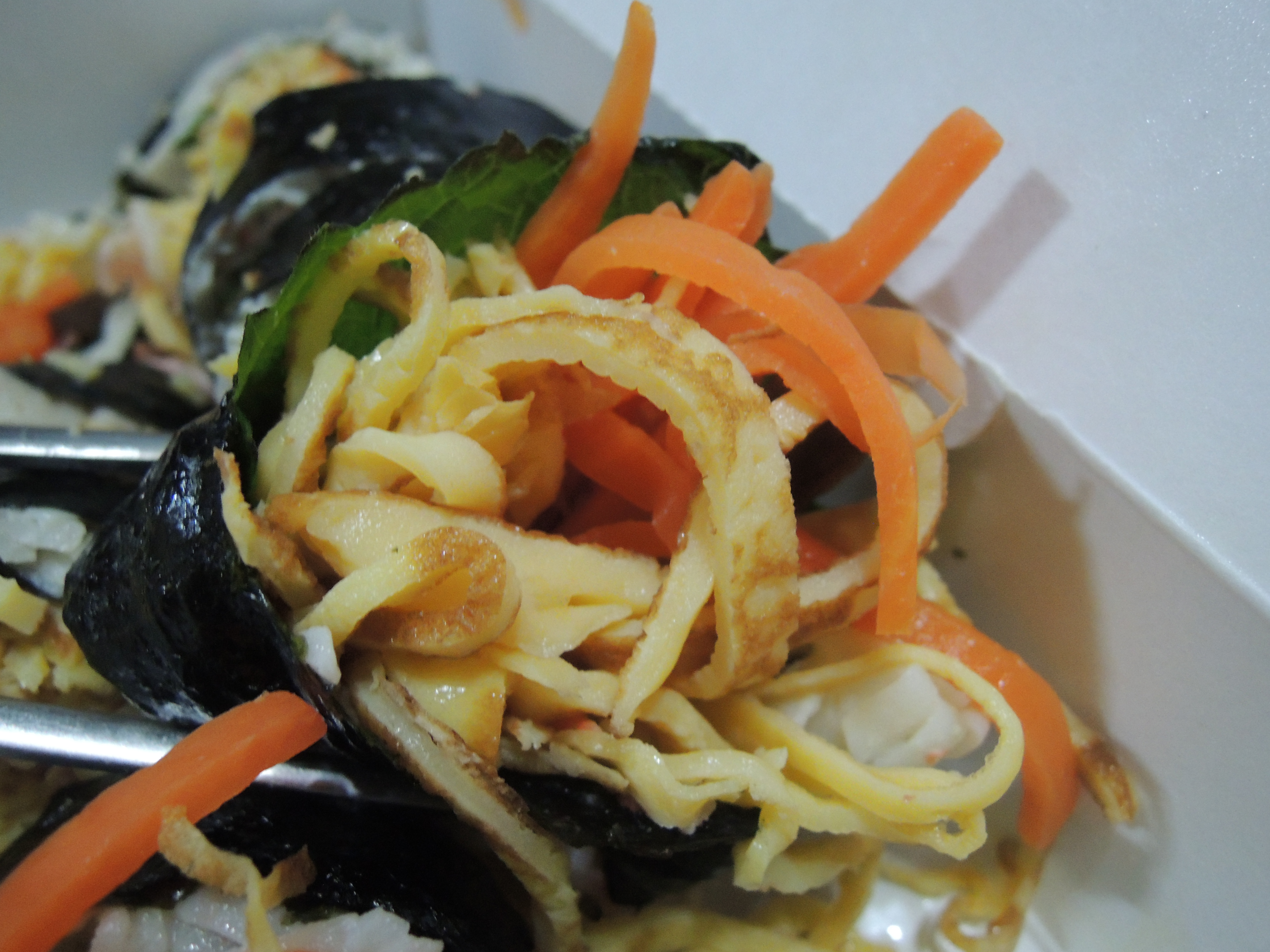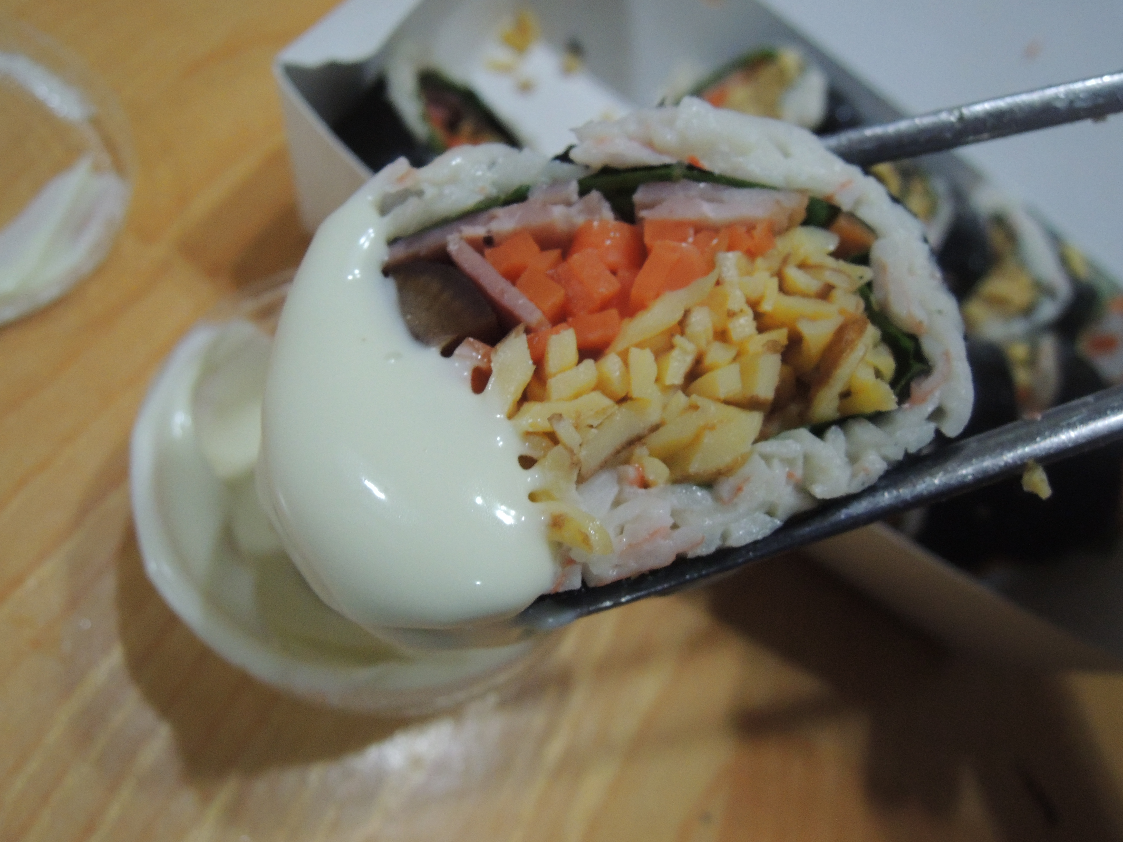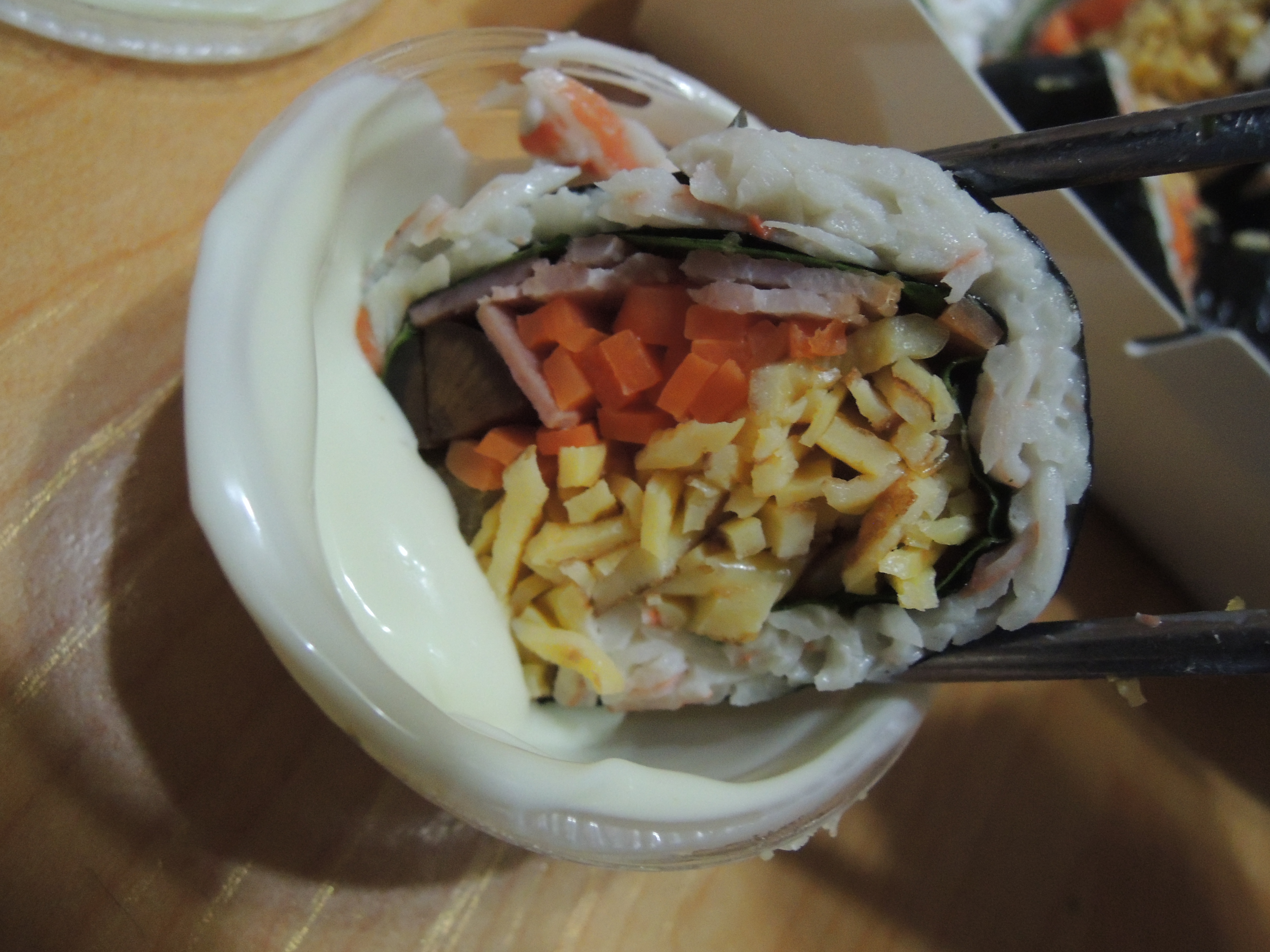 김밥은 자전거 타고 와서 흔들려서 다소 모양이 흐트러졌네요.