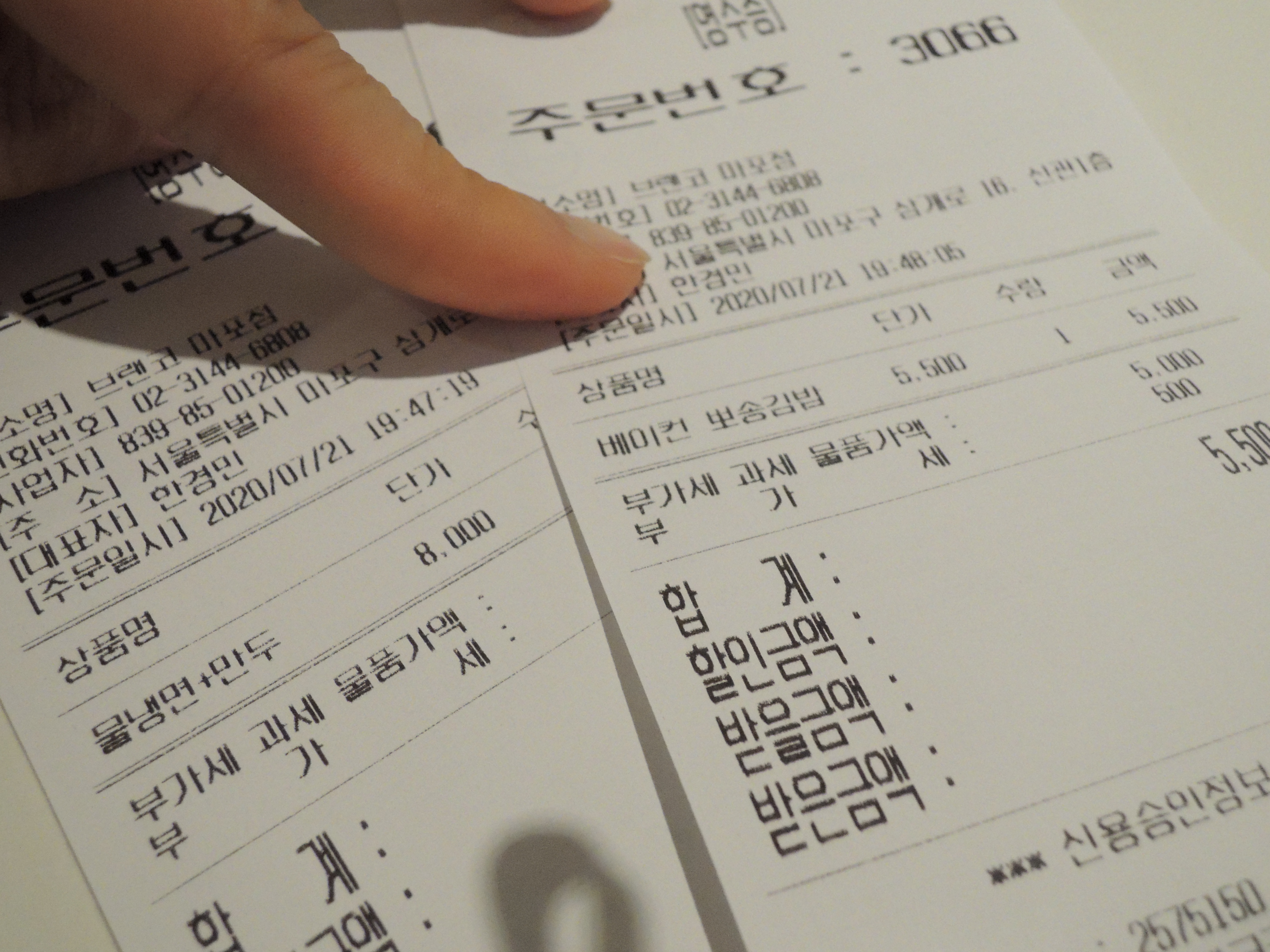 저는 물냉면 만두세트랑 집에서 먹을 베이컨 뽀송김밥 주문했습니다.