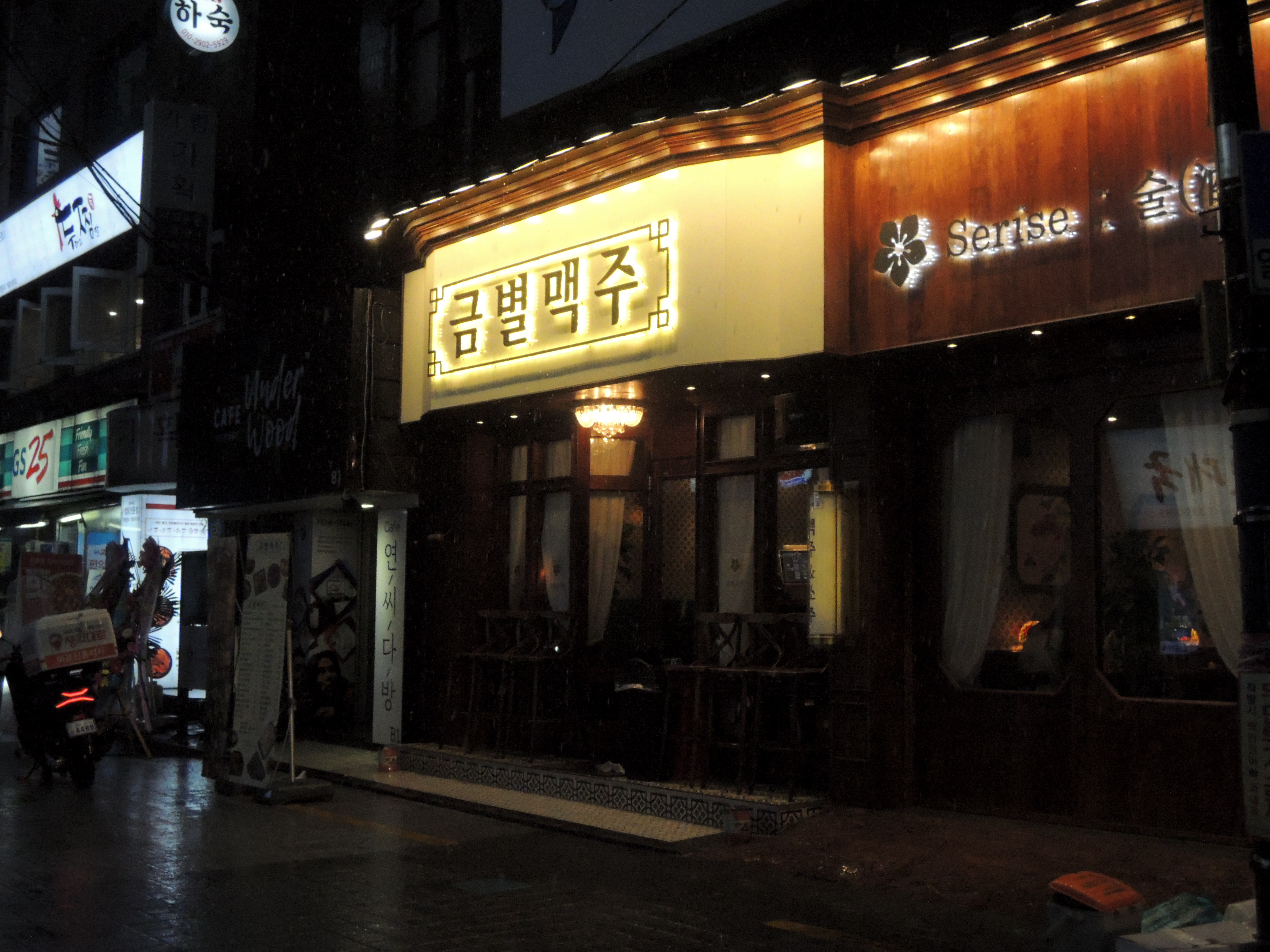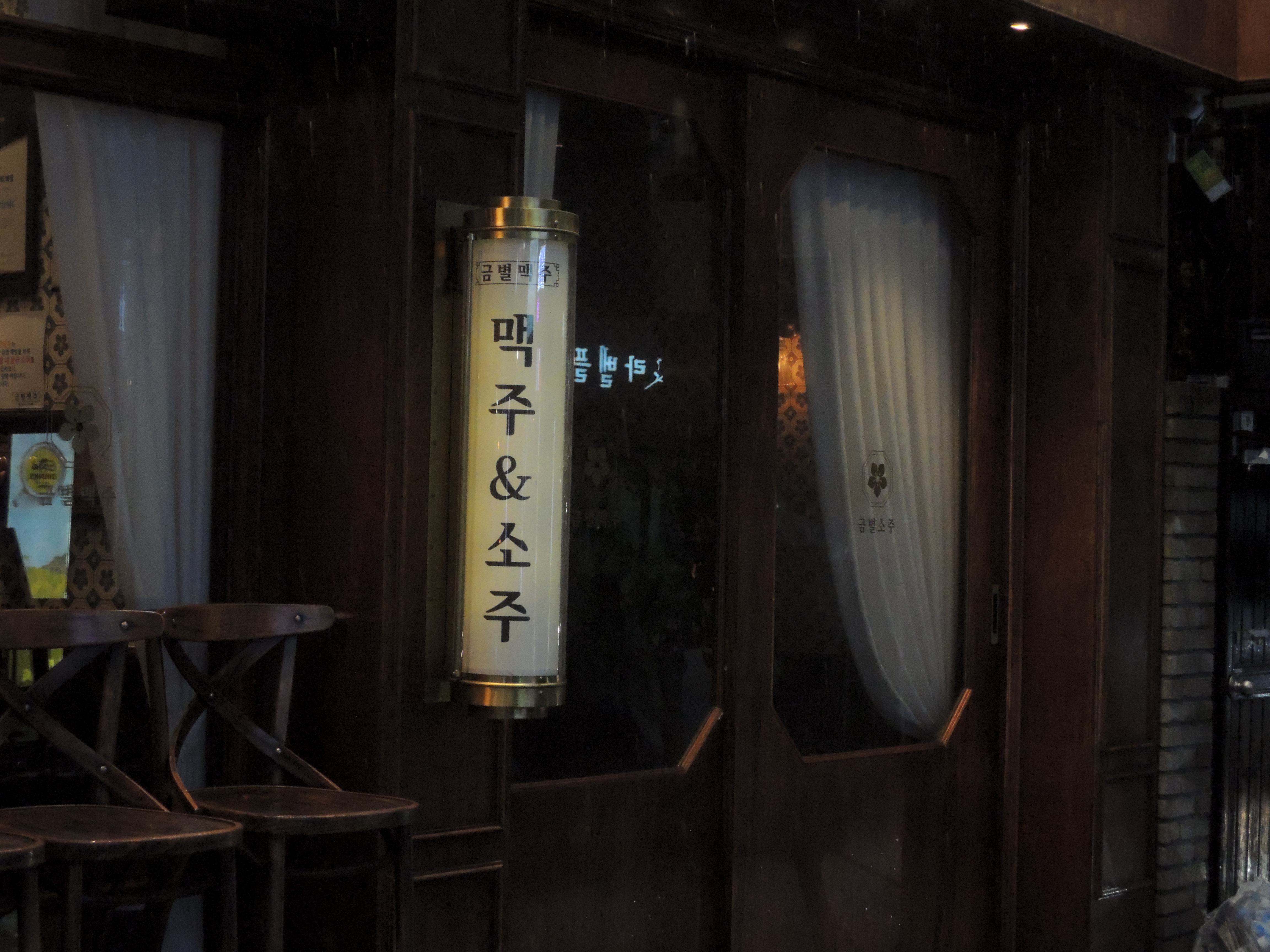 신촌 금별맥주 입구입니다. 1970~80년대 고급 레스토랑같은 느낌의 나무 인테리어가 멋집니다.