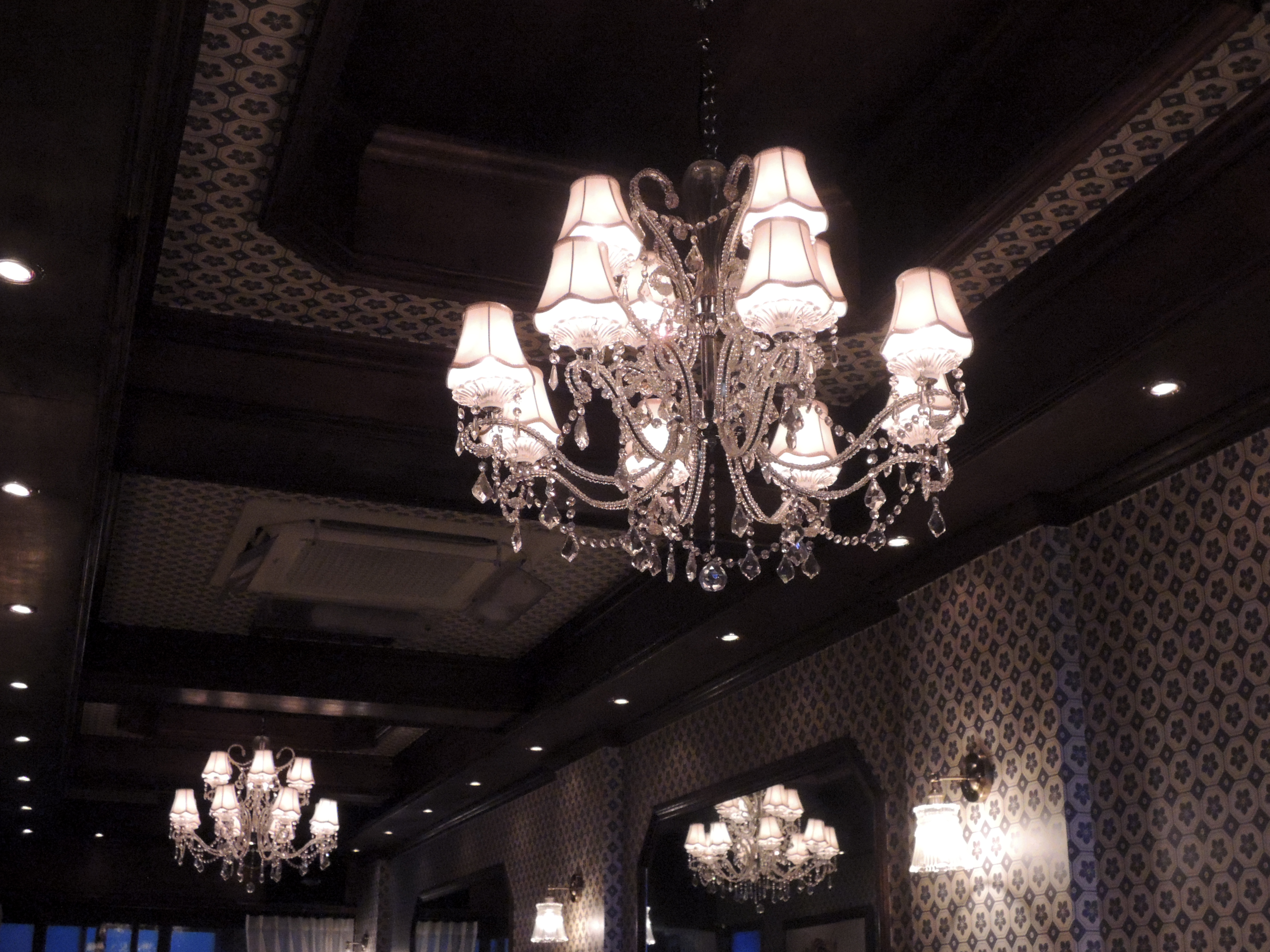 주문하고 기다리면서 주변을 사진으로 담아봅니다. 샹들리에 조명이 정말 멋있었어요.