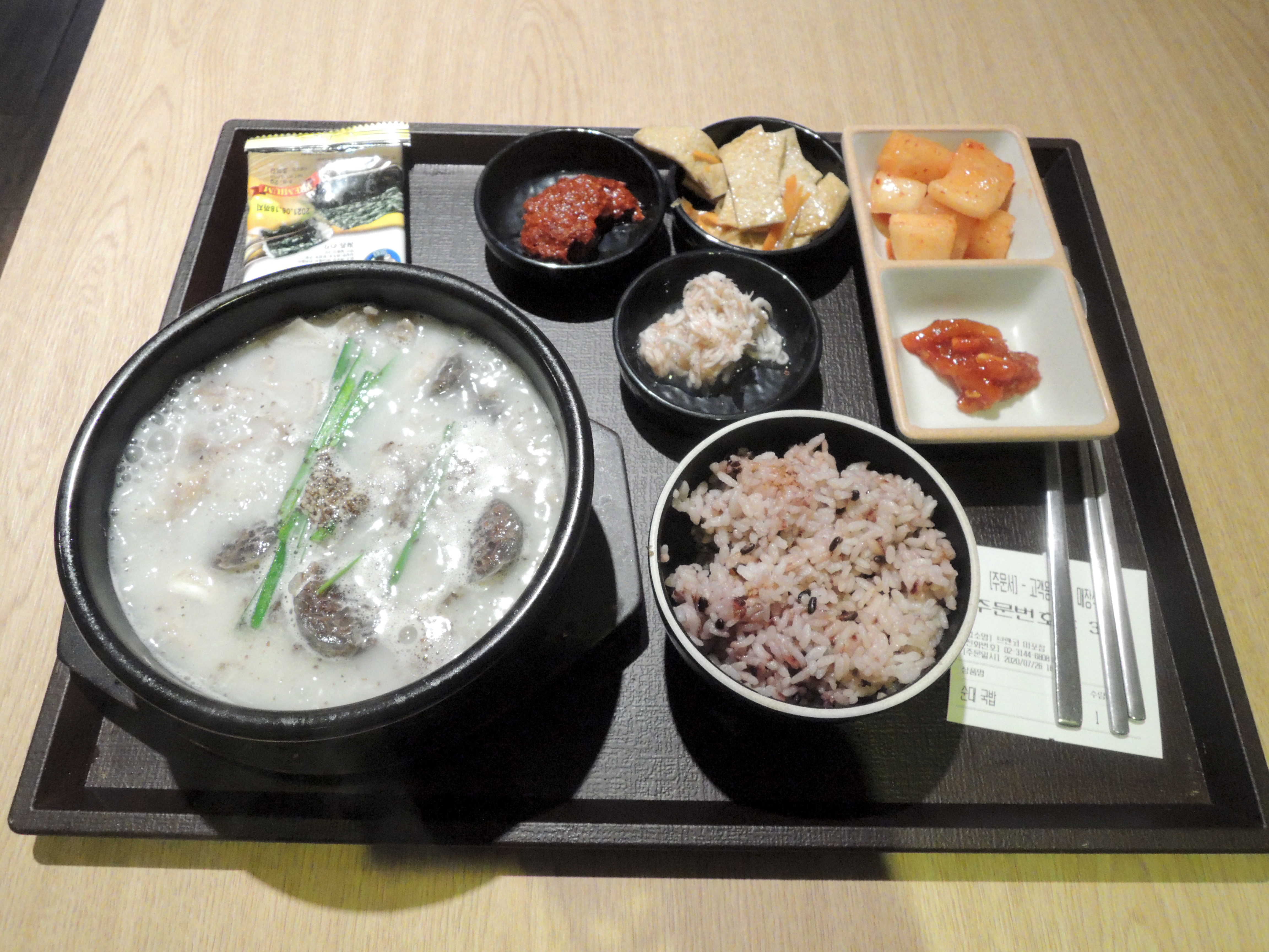 짜잔 순대국밥을 받았습니다. 밥이 건강식 흑미밥인게 참 맘에 드네요.