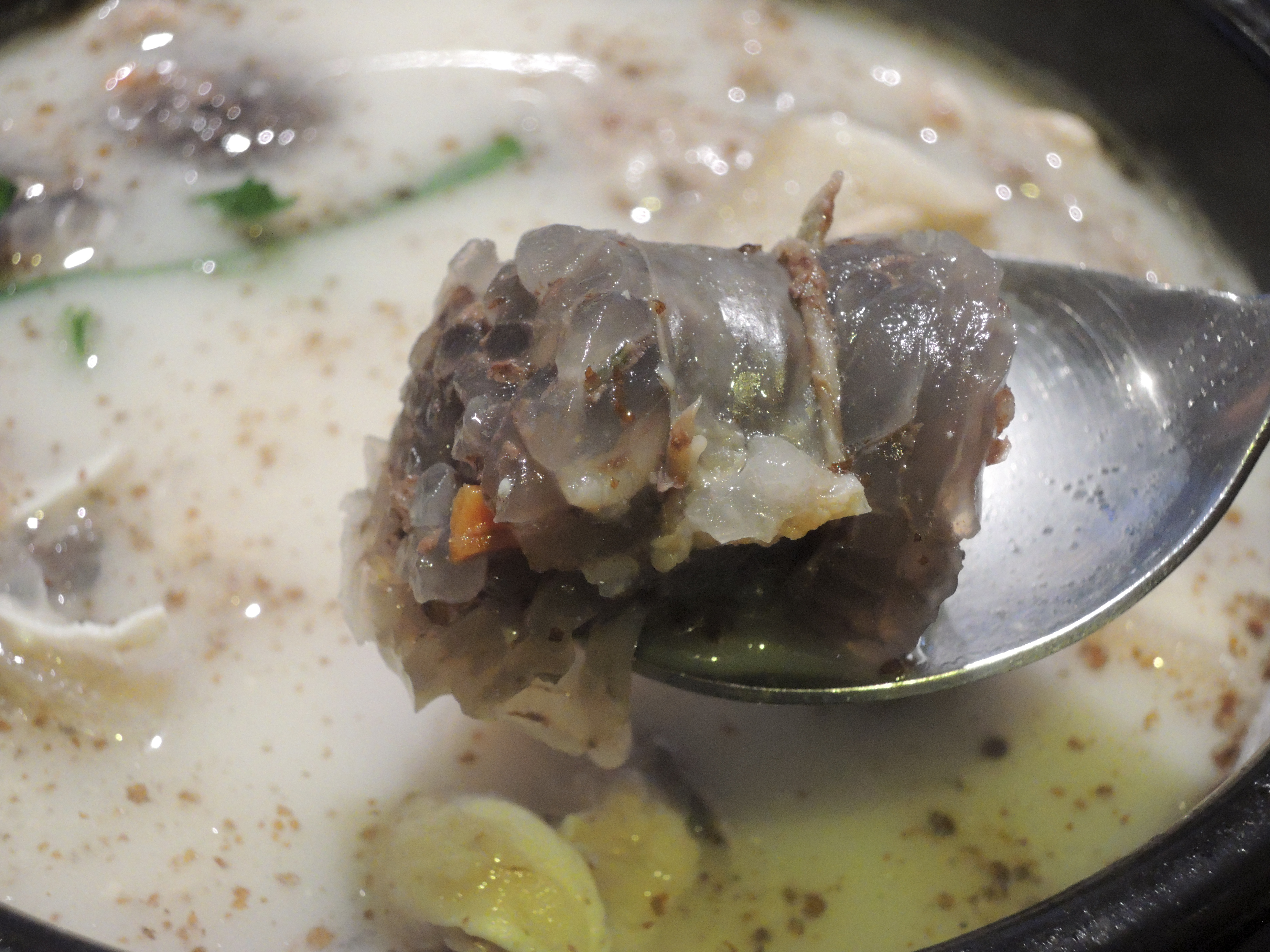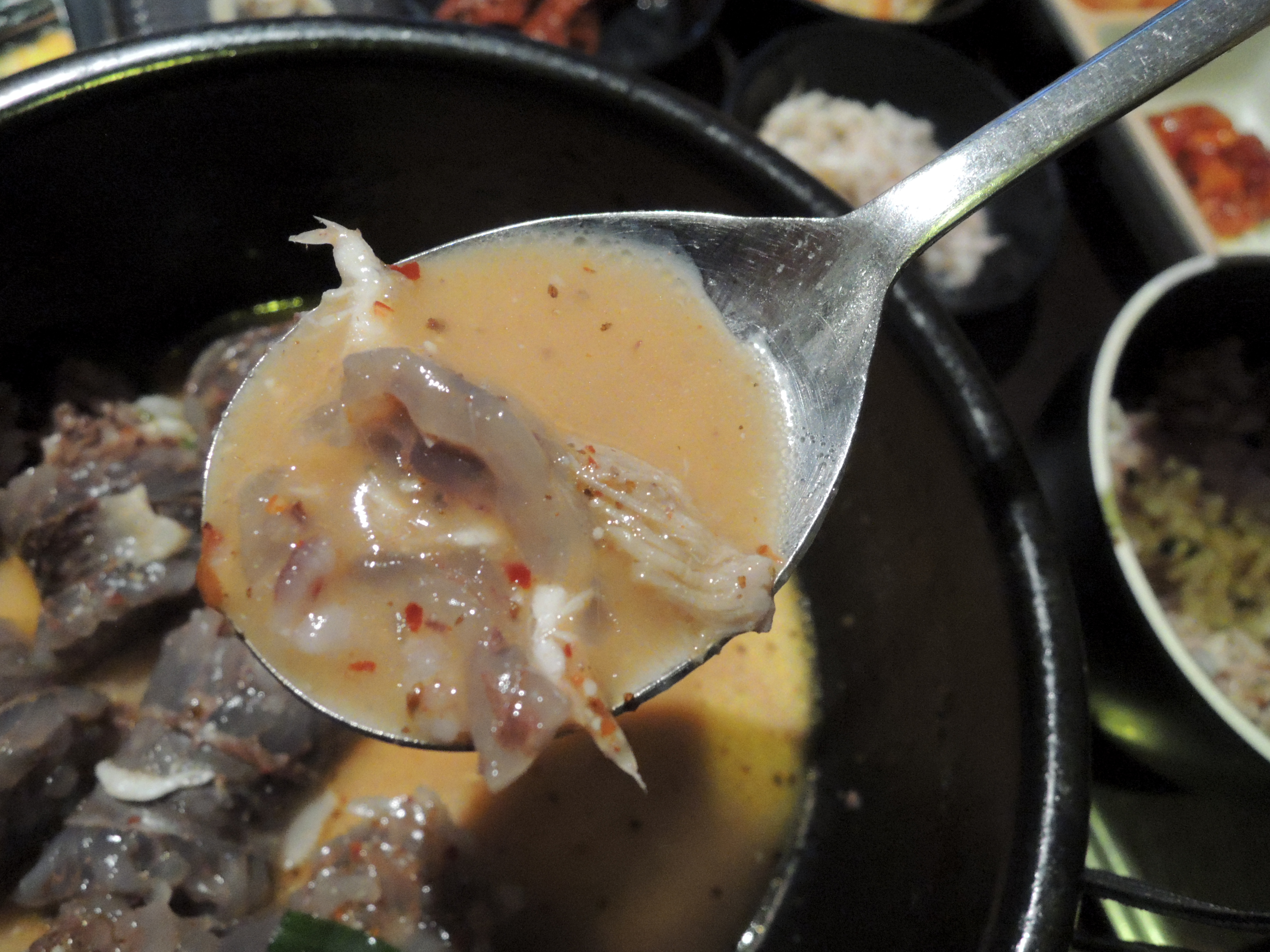 대체로 국물이 심심한 편이에요. 사골육수말고는 암것도 안들어간거 같아요. 그래서 다대기와 새우젓을 적당량 넣어 먹으면 취향껏 맛있게 즐길 수 있어요.