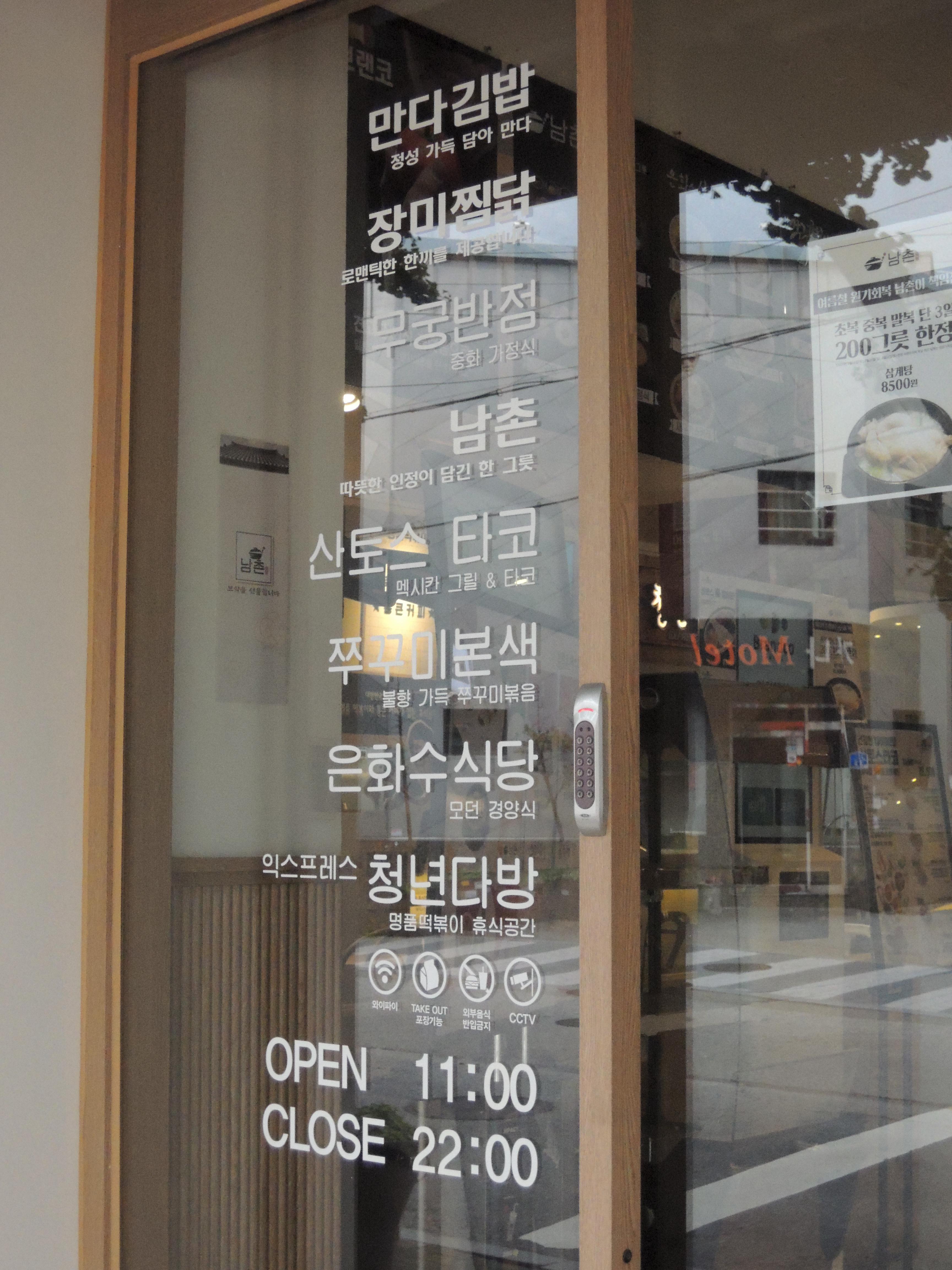 입점브랜드로 만다김밥, 장미찜닭, 무궁반점, 남촌, 산토스 타코, 쭈꾸미본색, 은화수식당, 청년다방이 입점해 있어요.