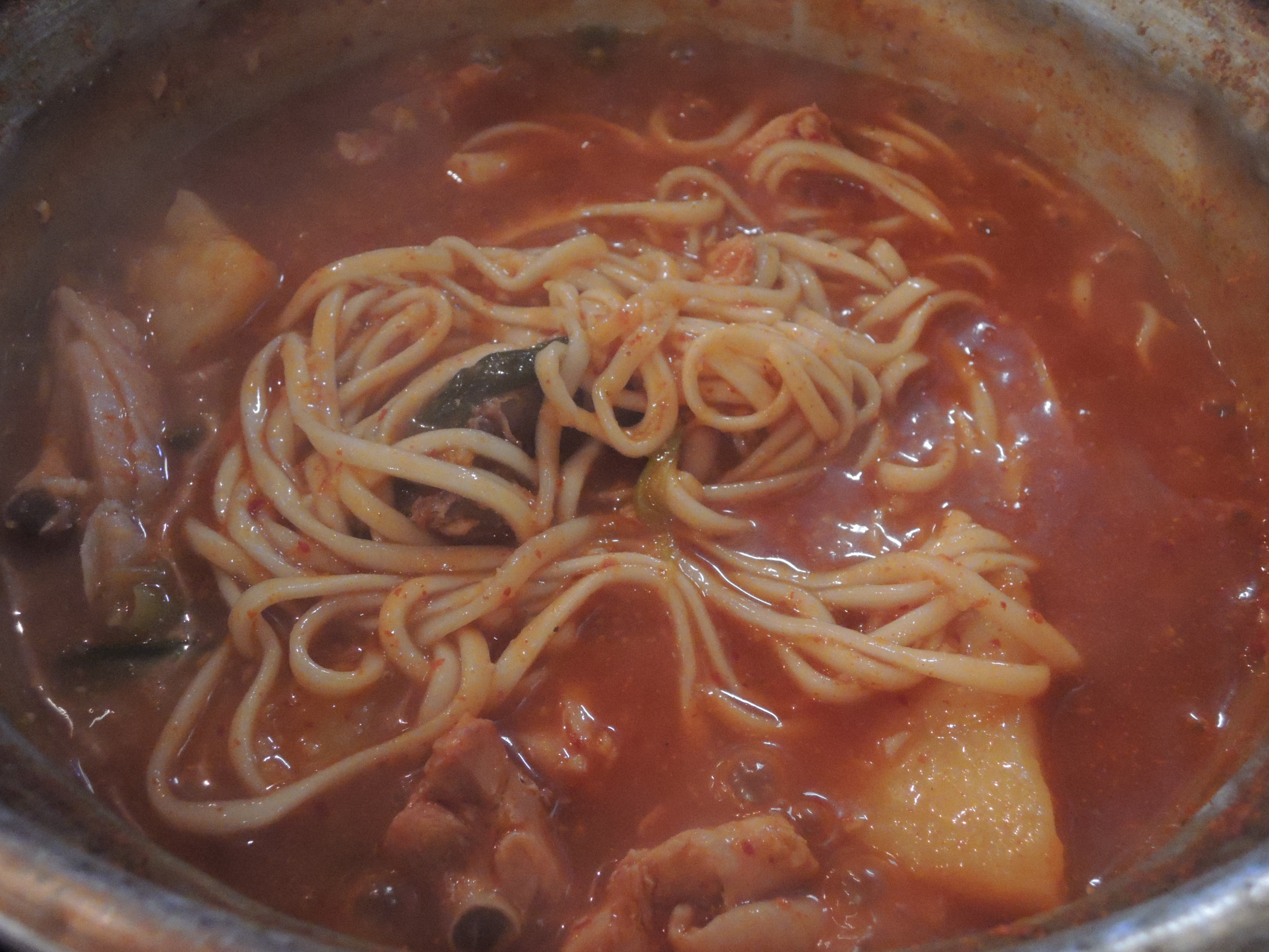 마늘닭도리탕 맛있게 먹는법 그 세번째! 각종사리를 넣어먹을것! 저는 칼국수사리를 추가주문했지요 헤헤