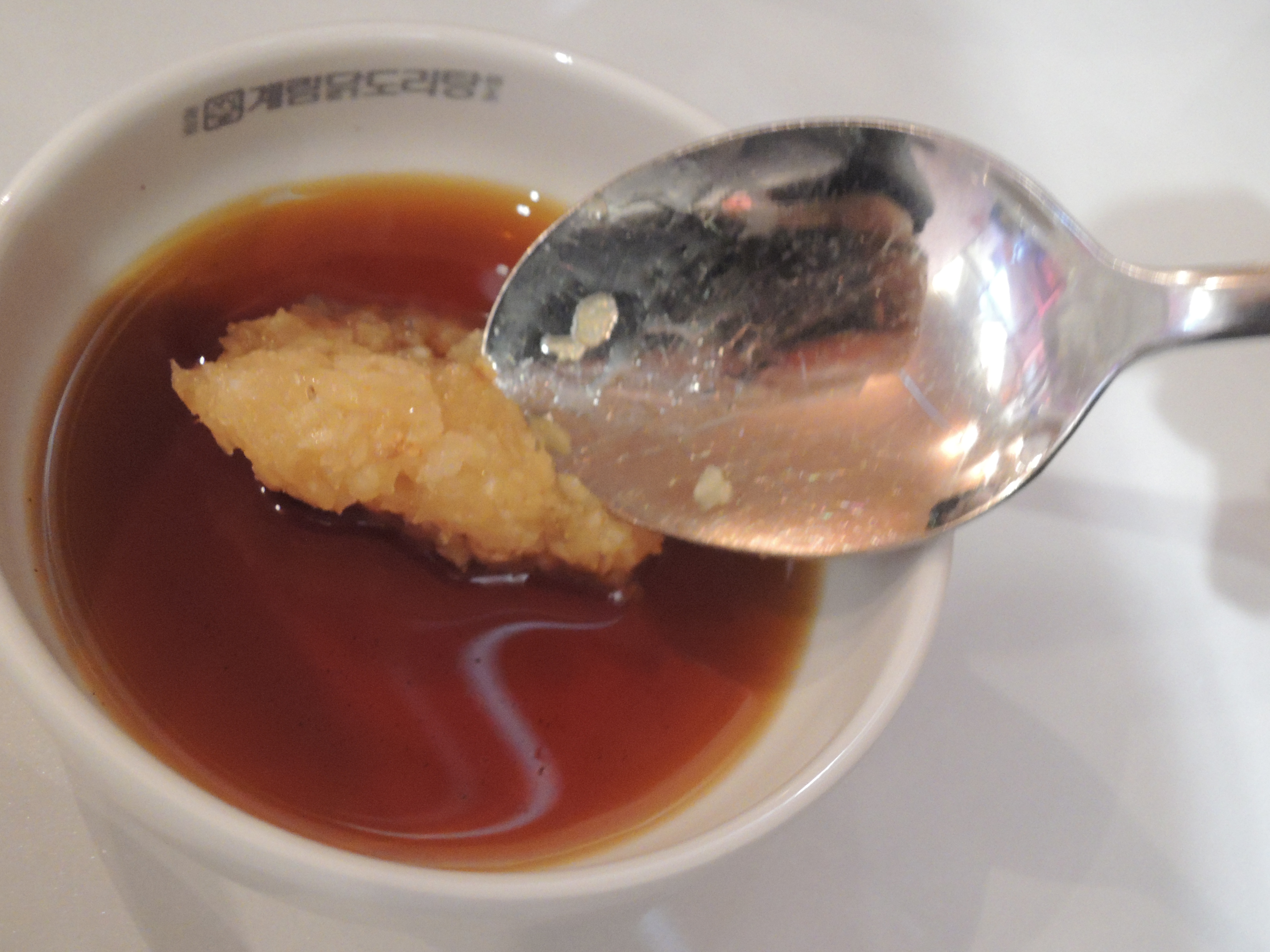 닭도리탕 맛있게 먹는법 두번째! 간마늘을 1/3숟갈 덜어내어 간장에 섞어먹는다!