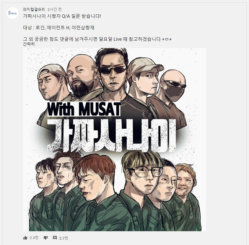 이렇게 무사트 특별과정 가짜사나이는 끝나고요. 이번주 일요일에 출연진 LIVE방송을 한다고 합니다.