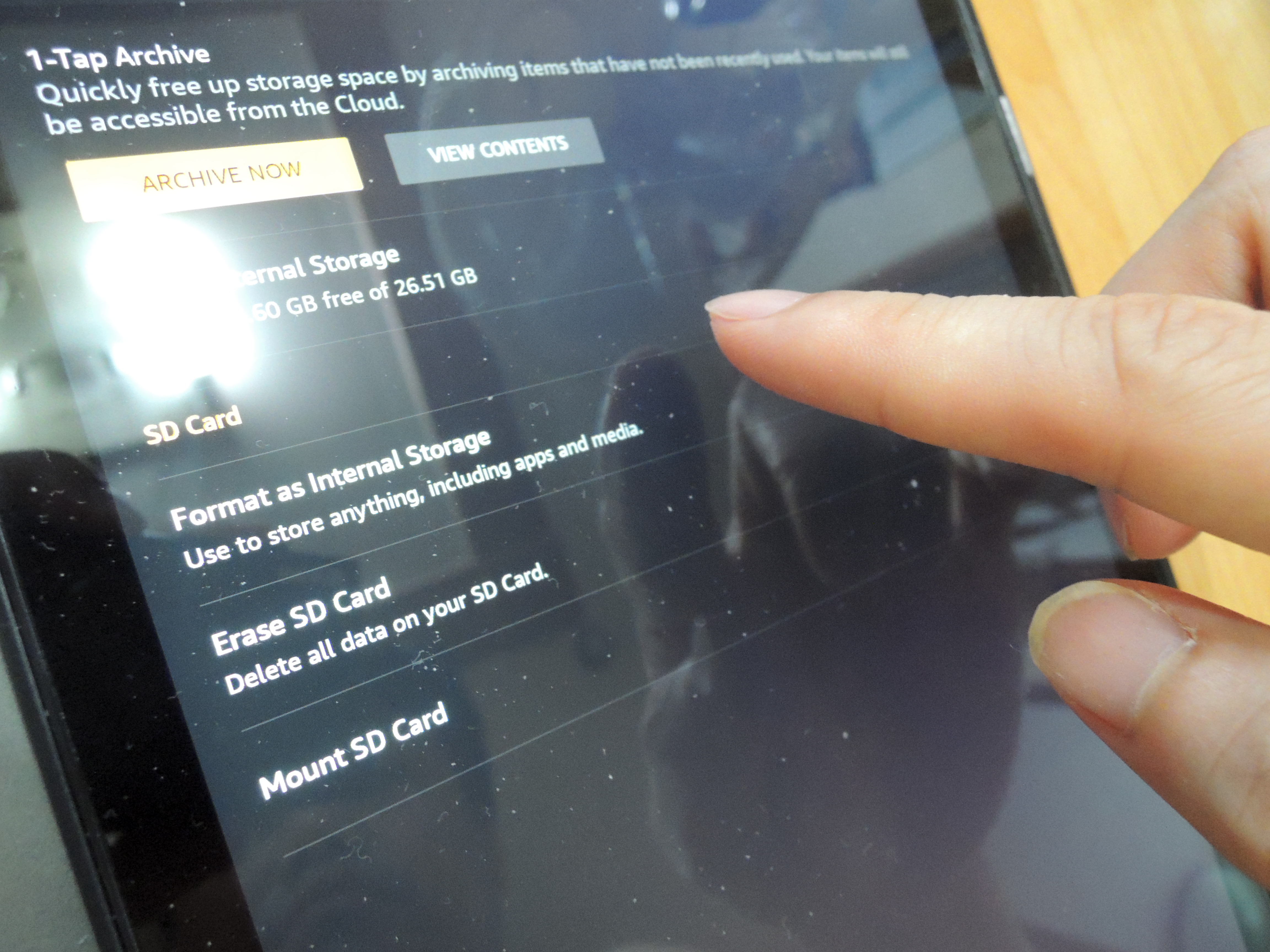 설치후에는 옵션-스토리지에 들어가서 마이크로SD를 포멧하고 사용하면 됩니다. 아마존이 해외직구판이라 영어로 되어있지만 전혀 어렵지 않아요. ㅎㅎ