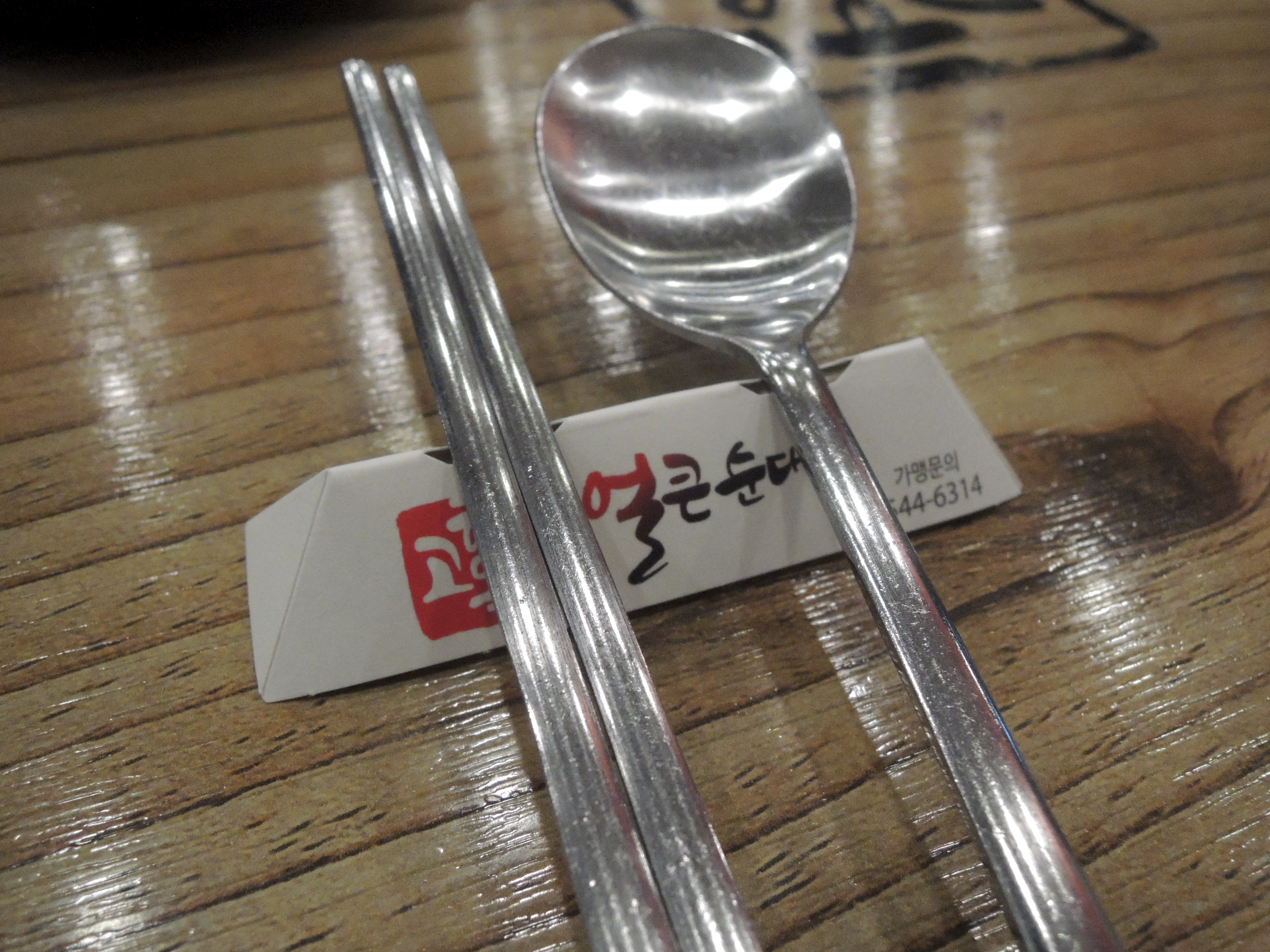 보통 휴지 위에 수저, 젓가락을 놓는데, 여기는 수저 젓가락 놓는 종이로만든 거치대가 있어서 위 사진처럼 깔끔하게 수저를 놓을 수 있습니다.