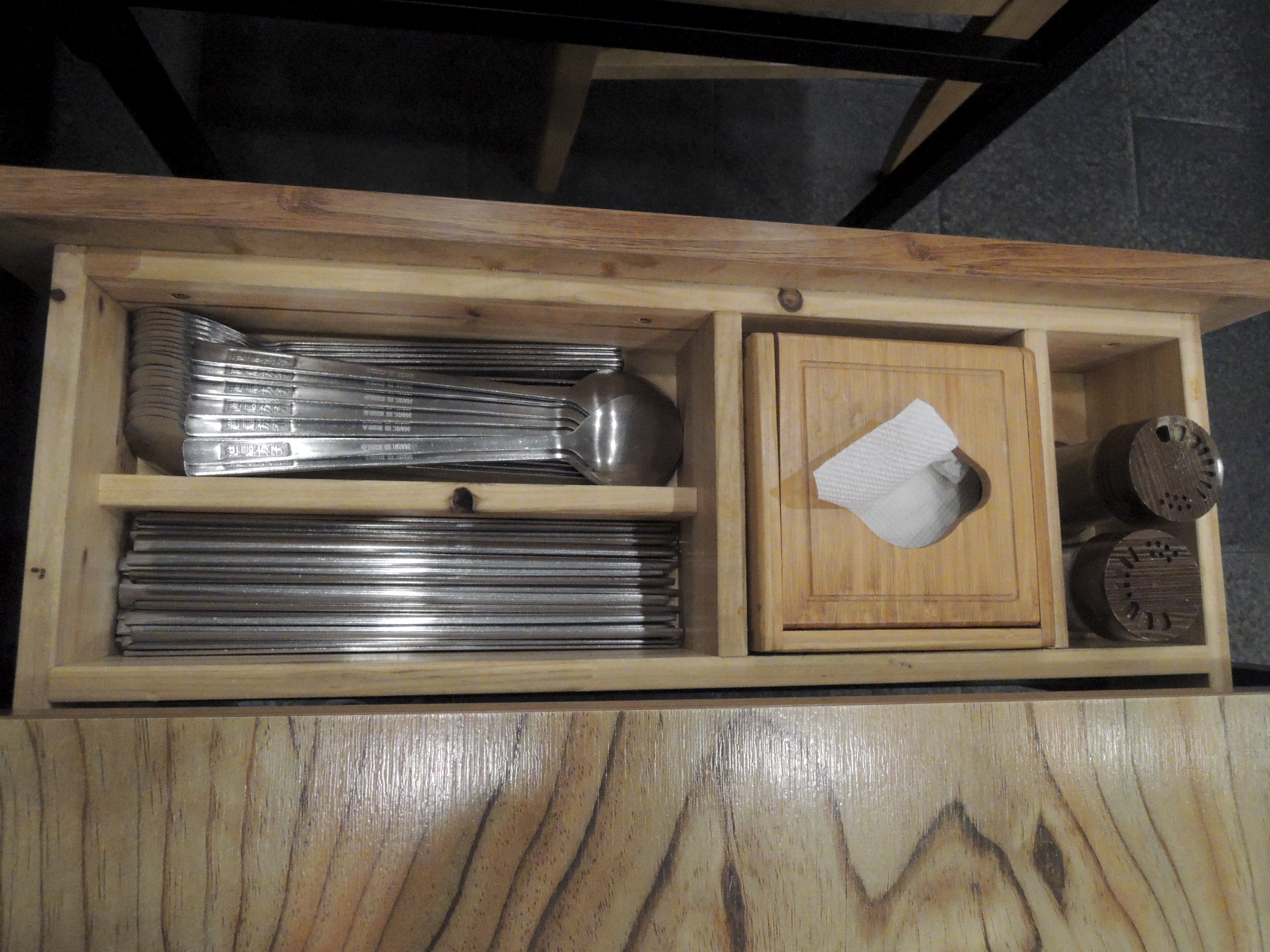 테이블 측면에 서랍형 수저함이 마련되어 있네요.