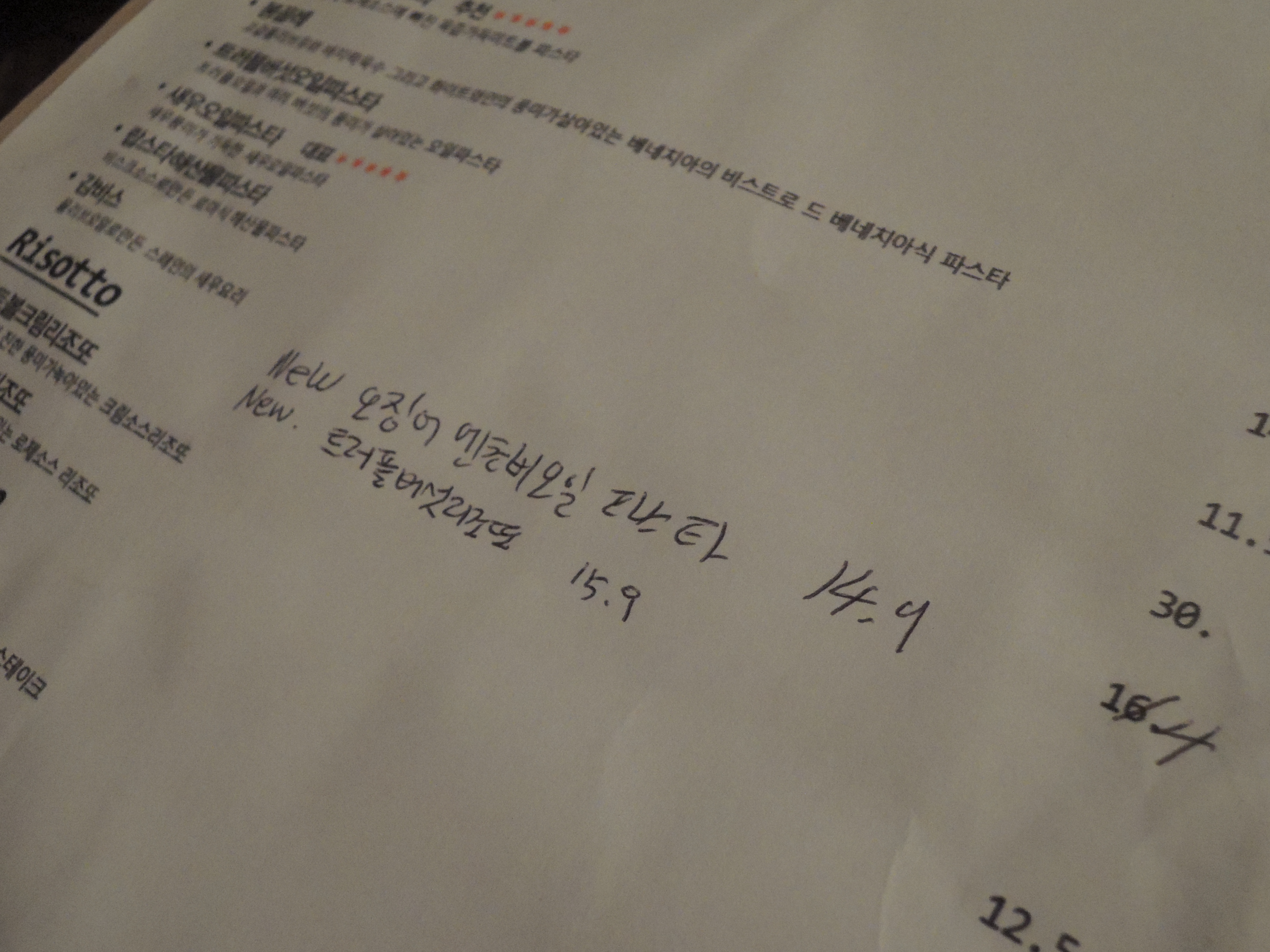 새로만든 신메뉴는 이렇게 펜으로 따로 적어두셨어요. 기존메뉴에 안주하지 않고 신메뉴도 개발하는 열정적인 쉐프님이십니다. ㅎㅎ