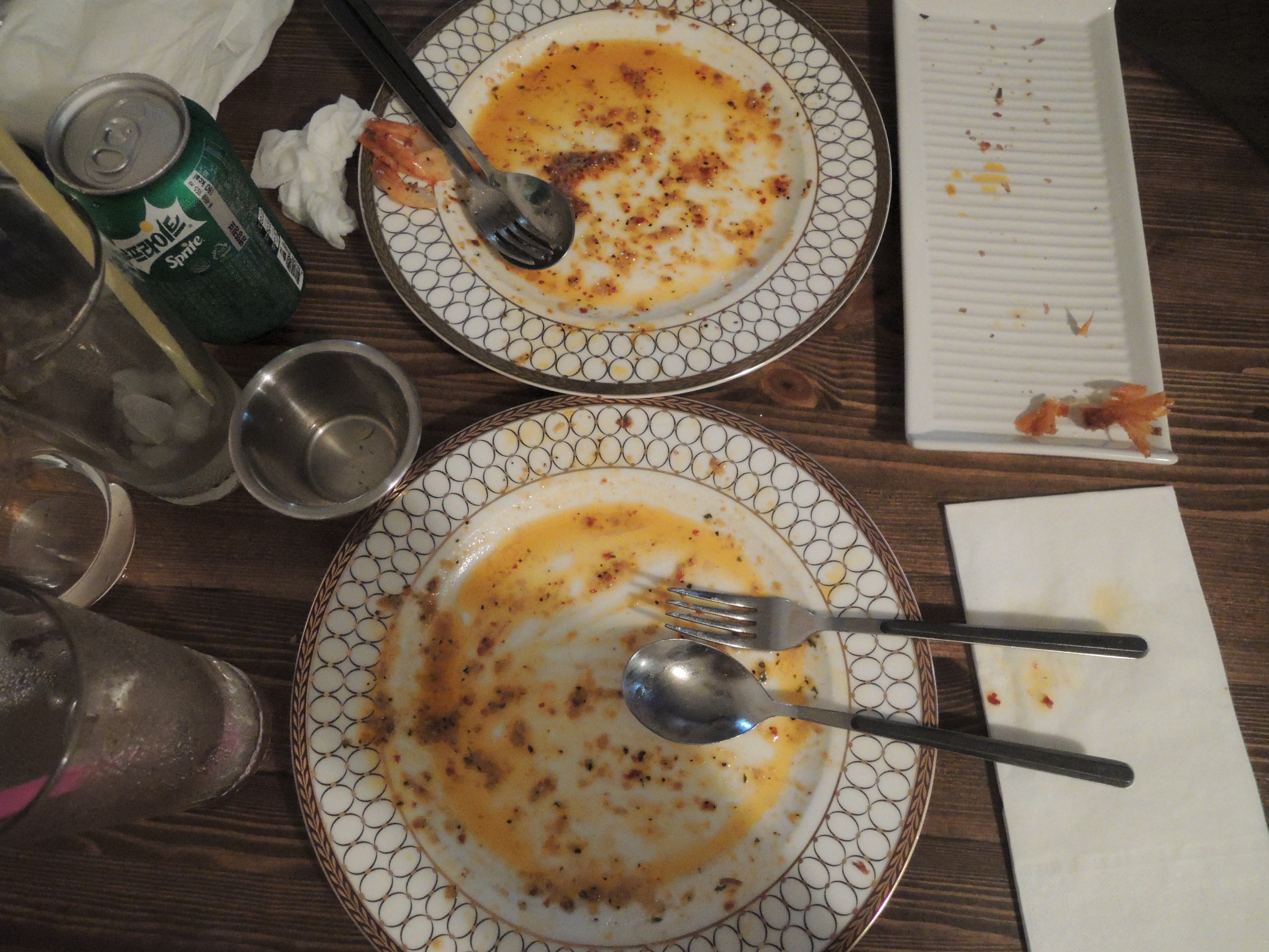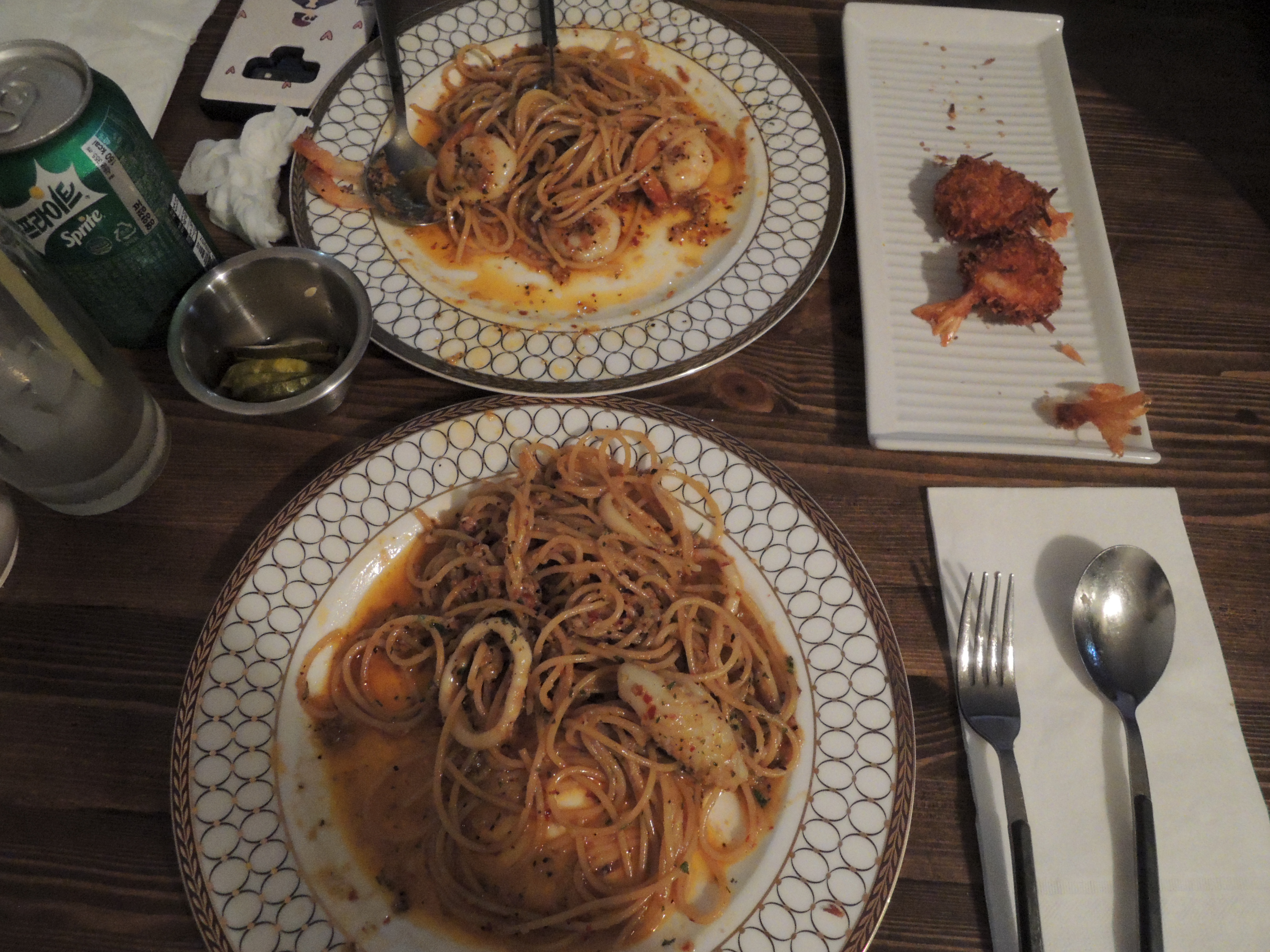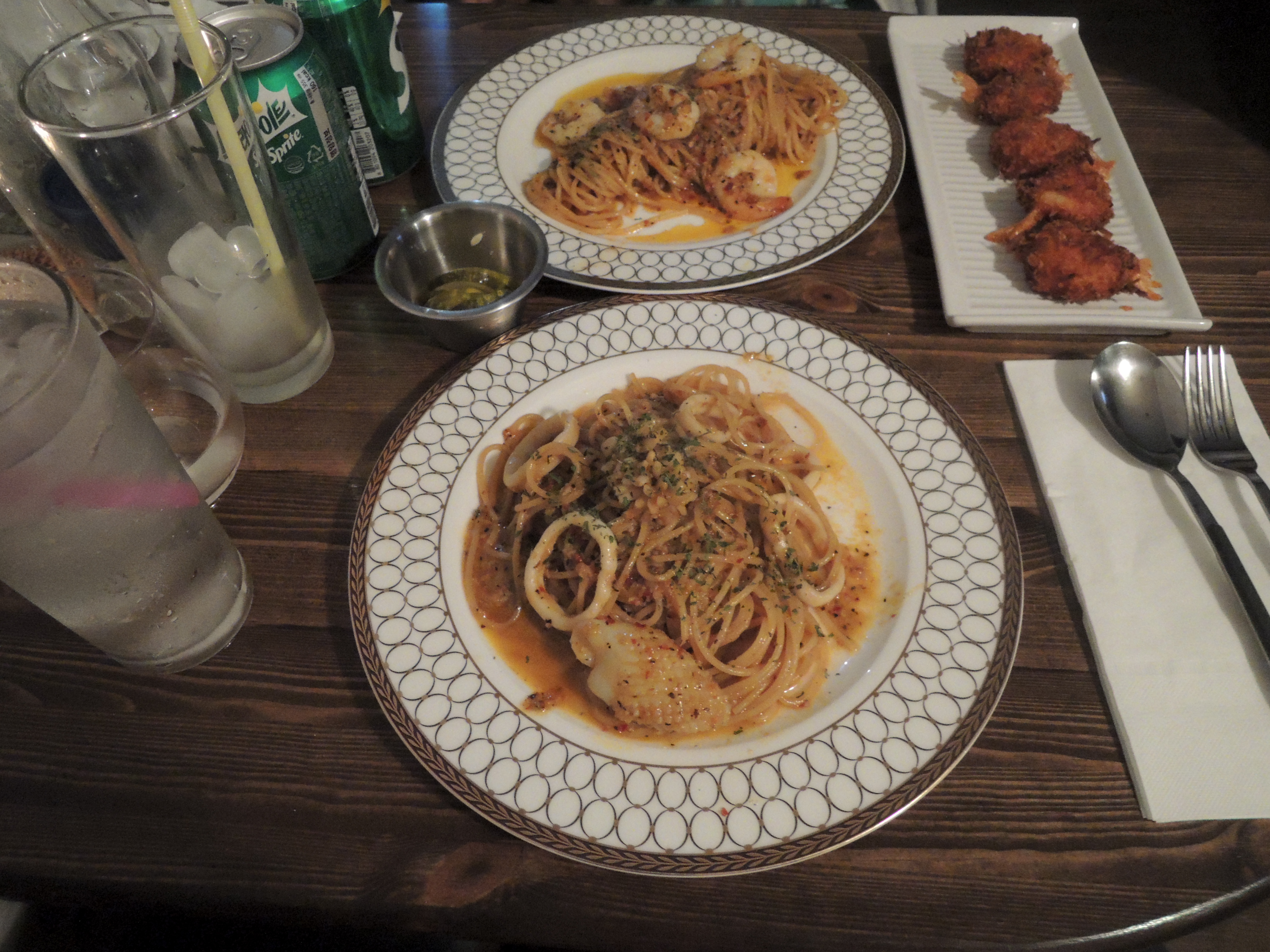 저는 별 다섯개 대표메뉴인 새우오일파스타와, New라고 적혀있는 오징어엔초비오일파스타, 그리고 사이드로 코코넛쉬림프, 음료는 사이다를 주문했습니다.