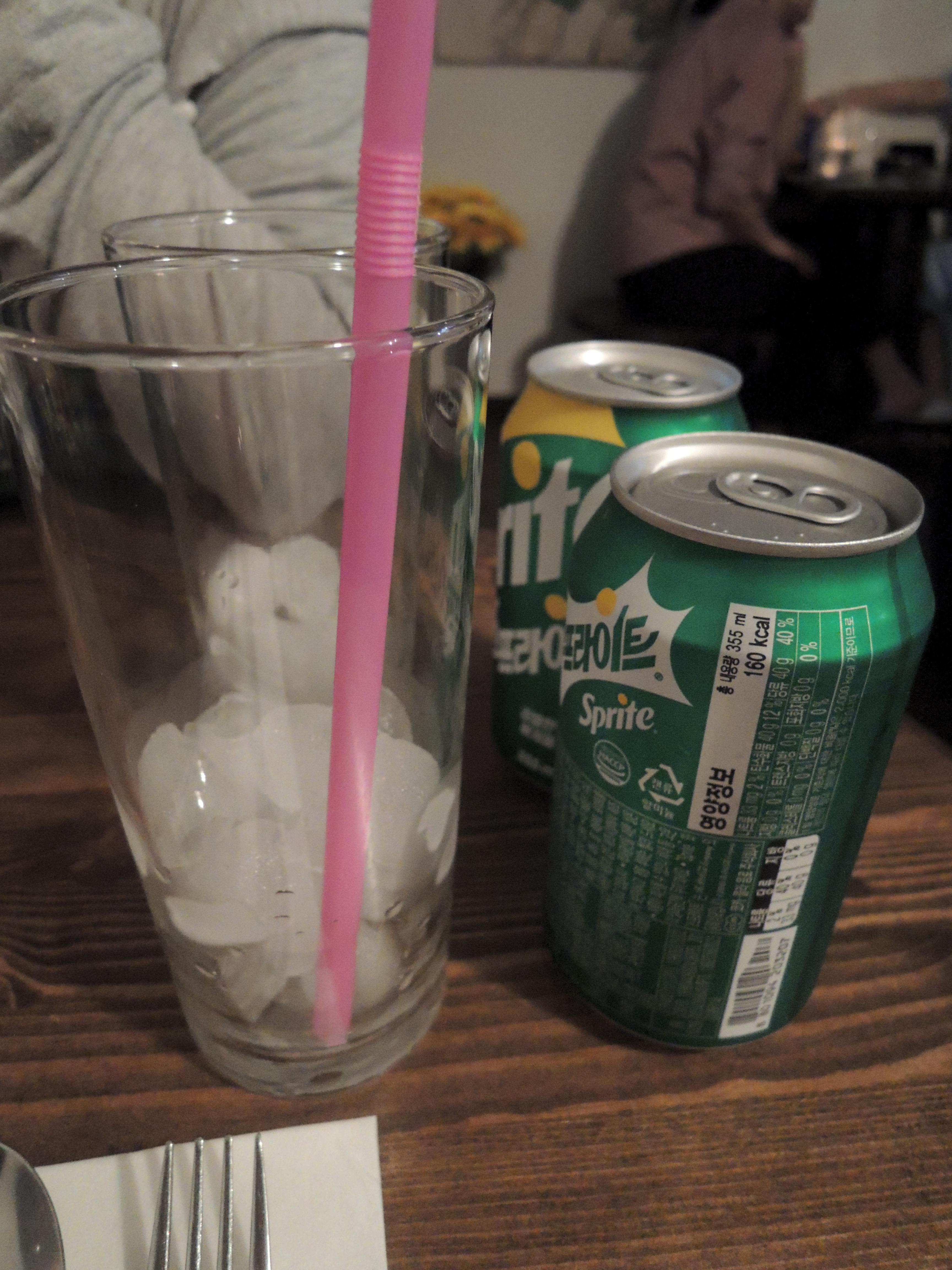 주문한 사이다가 나와서 얼음컵에 따라봅니다. 355ml인데 정확히 한컵분량이 나오네요.