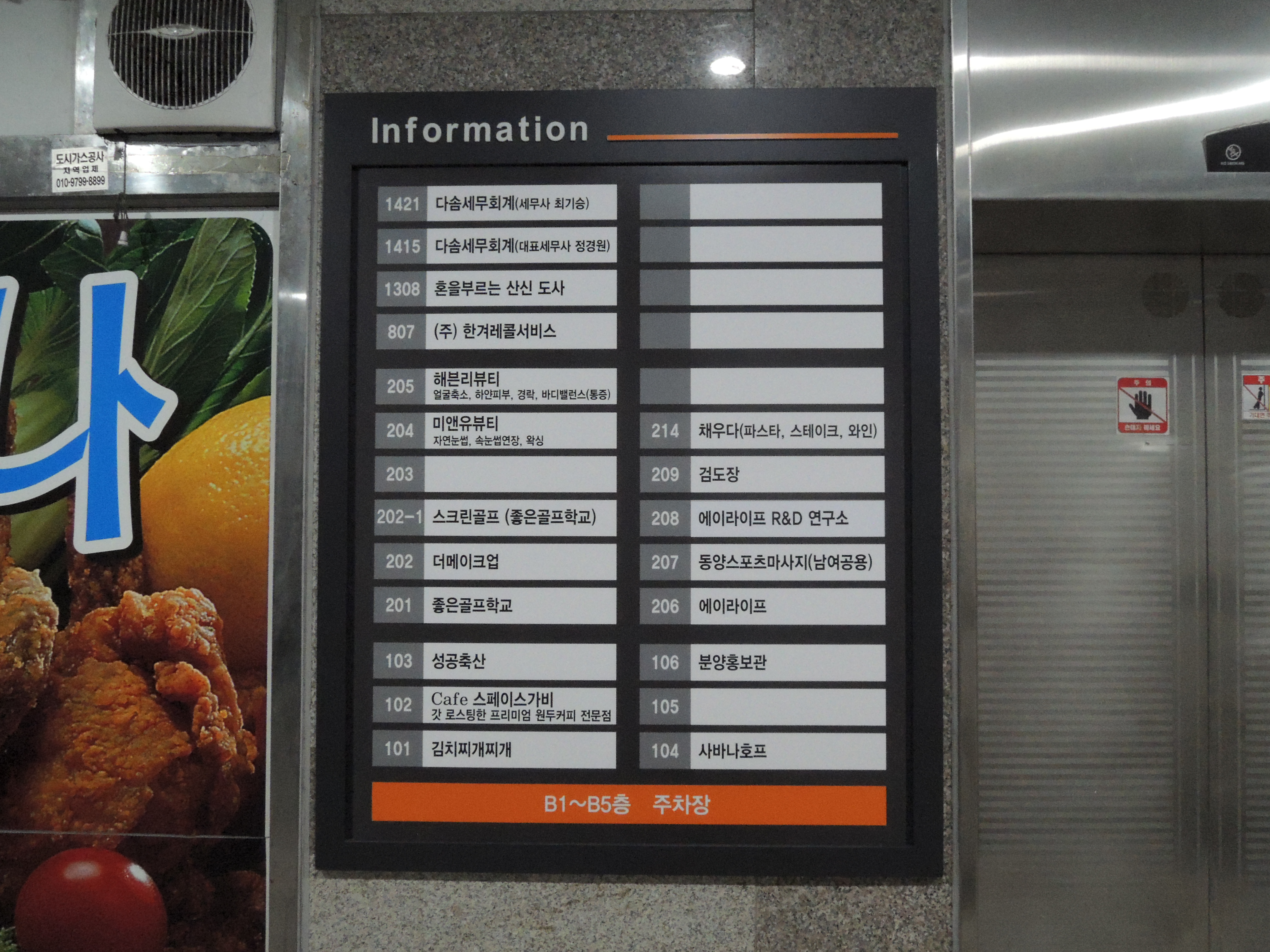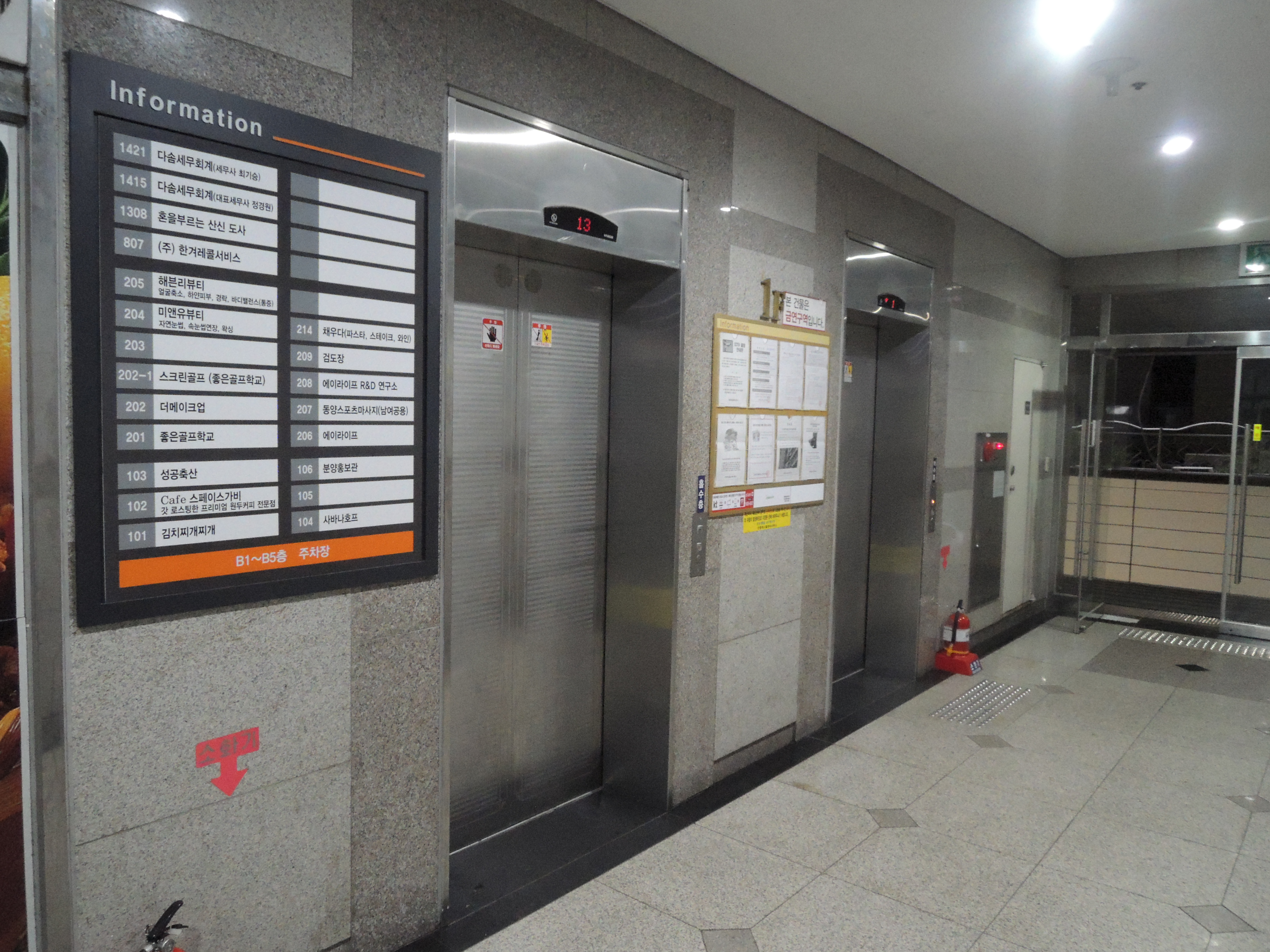 안으로 들어가보면 인포메이션에 214호 채우다라고 쓰여있네요. 2층으로 올라가봅시다.