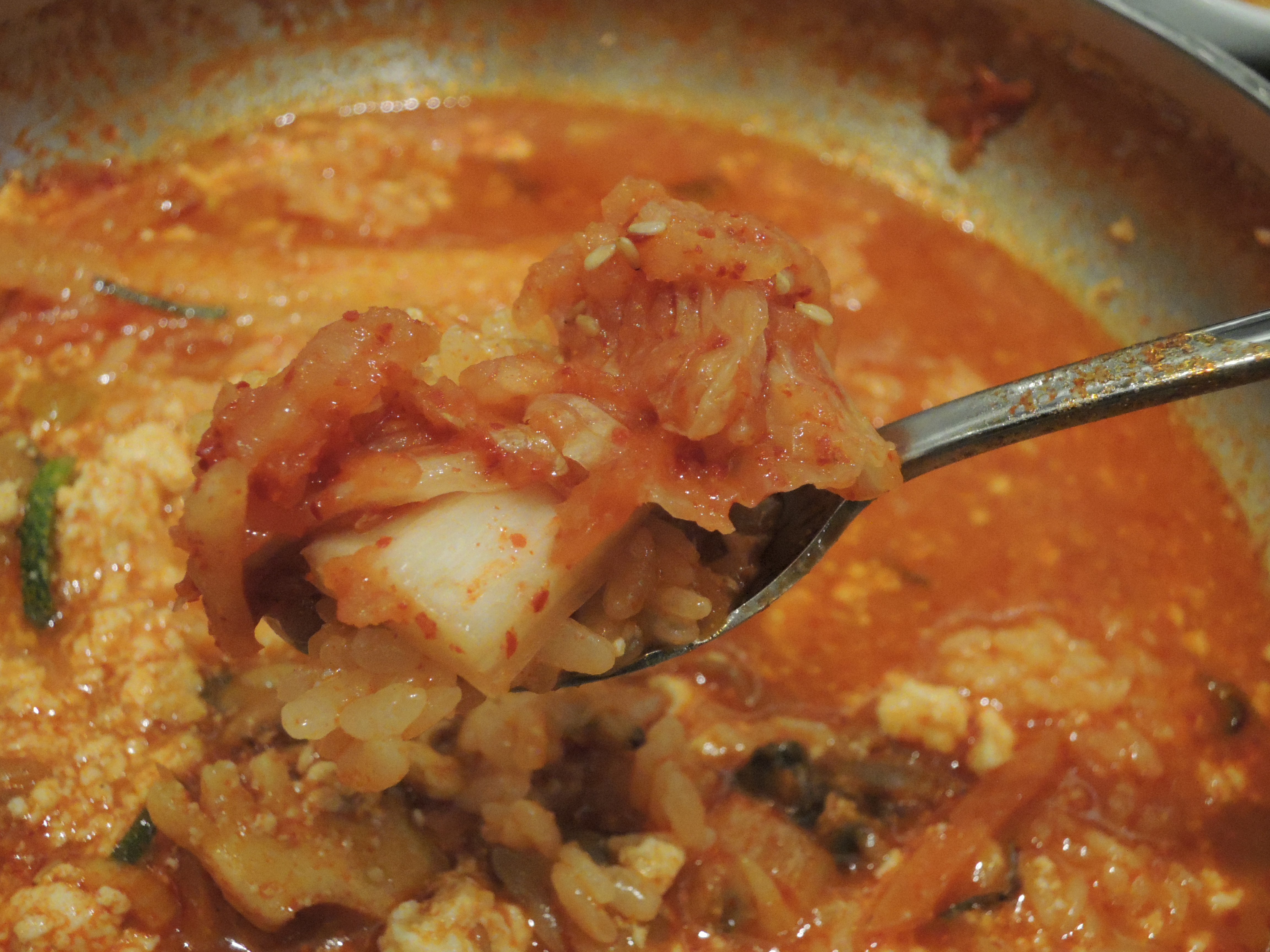 순두부짬봉밥에 배추김치 올려먹으니 더 맛있더라고요.