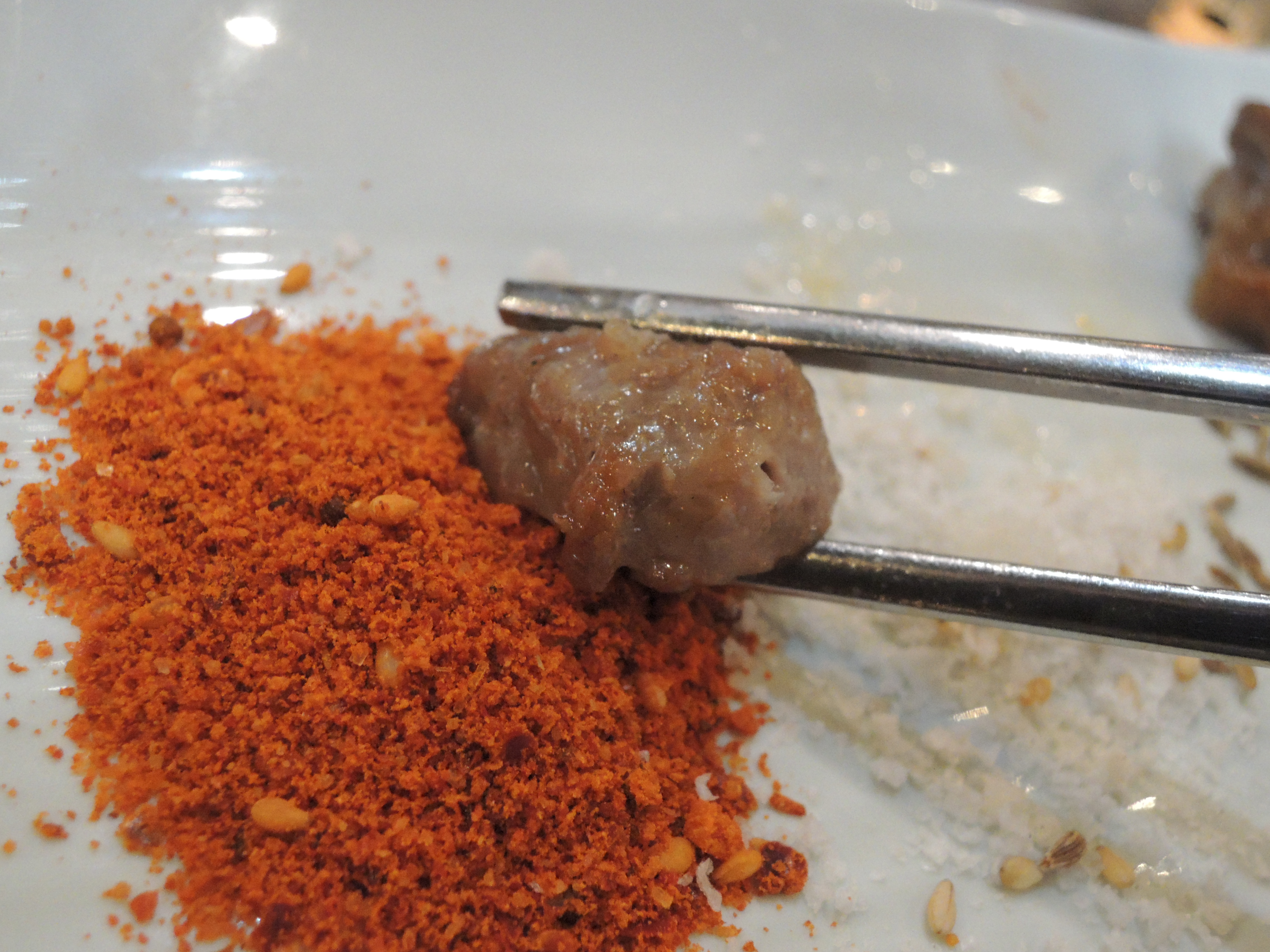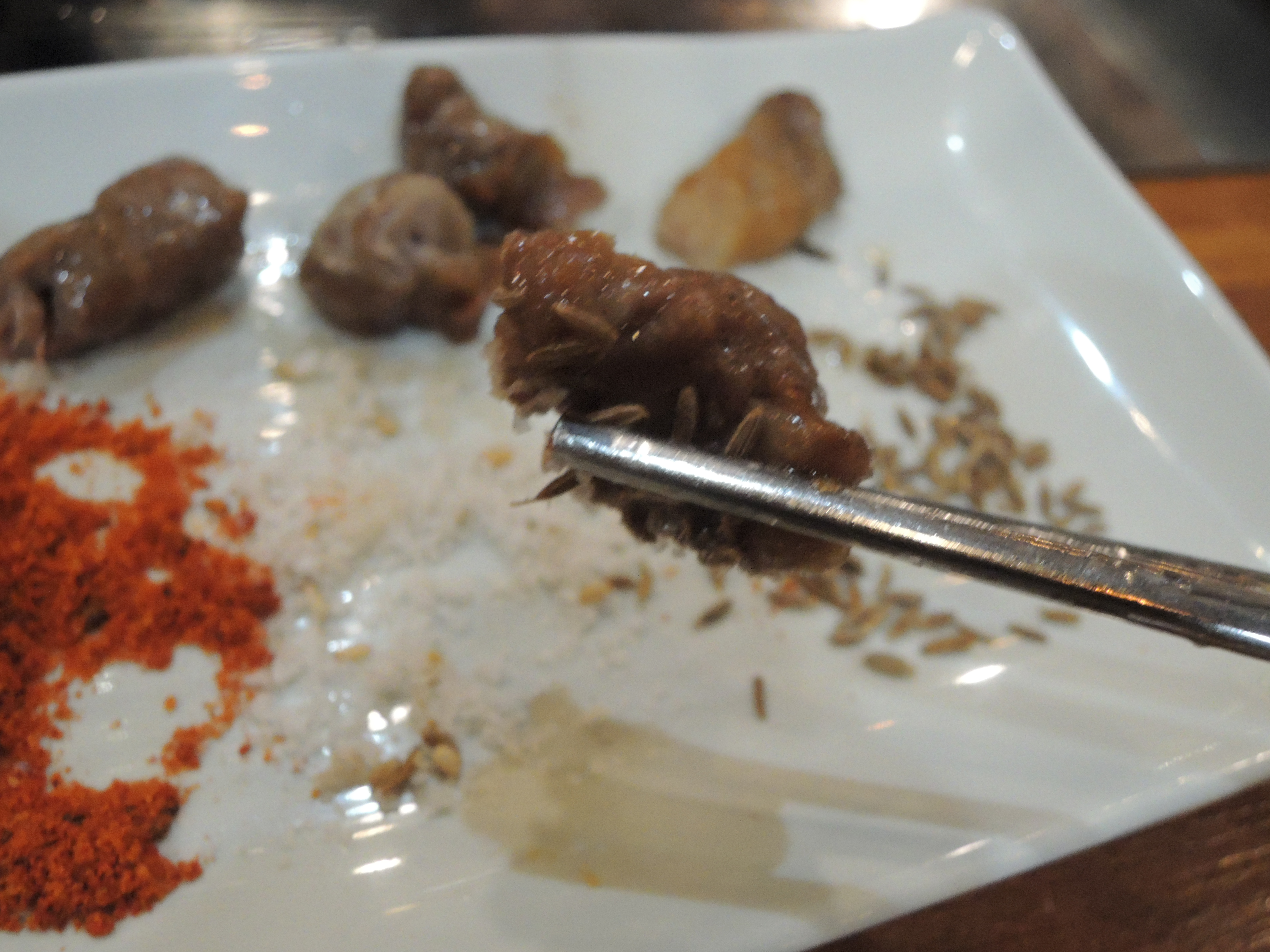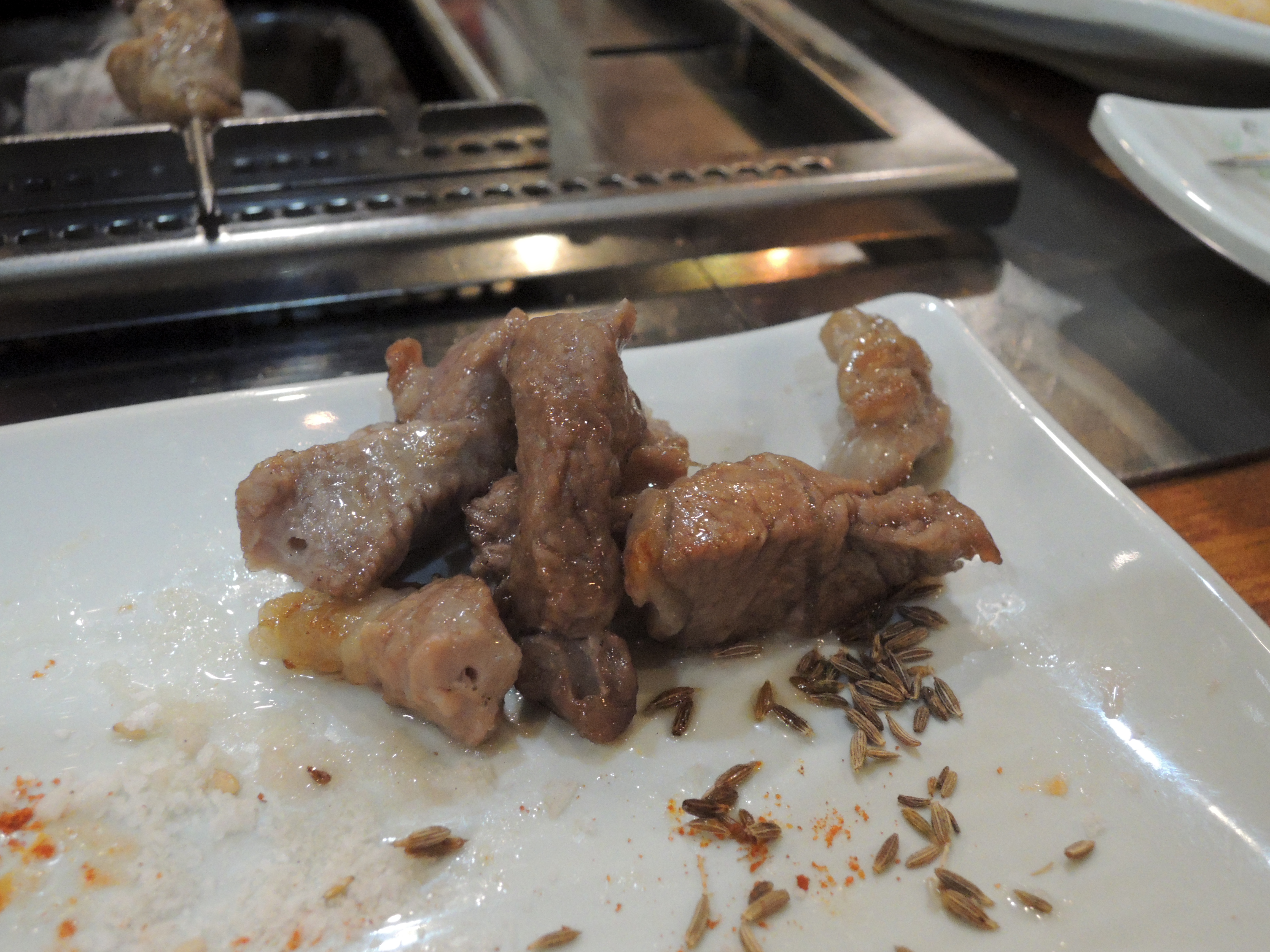 다 익은 양꼬치는 이렇게 꼬치를 올려두고 젓가락으로 고기를 하나하나 분리해서 먹음 됩니다.