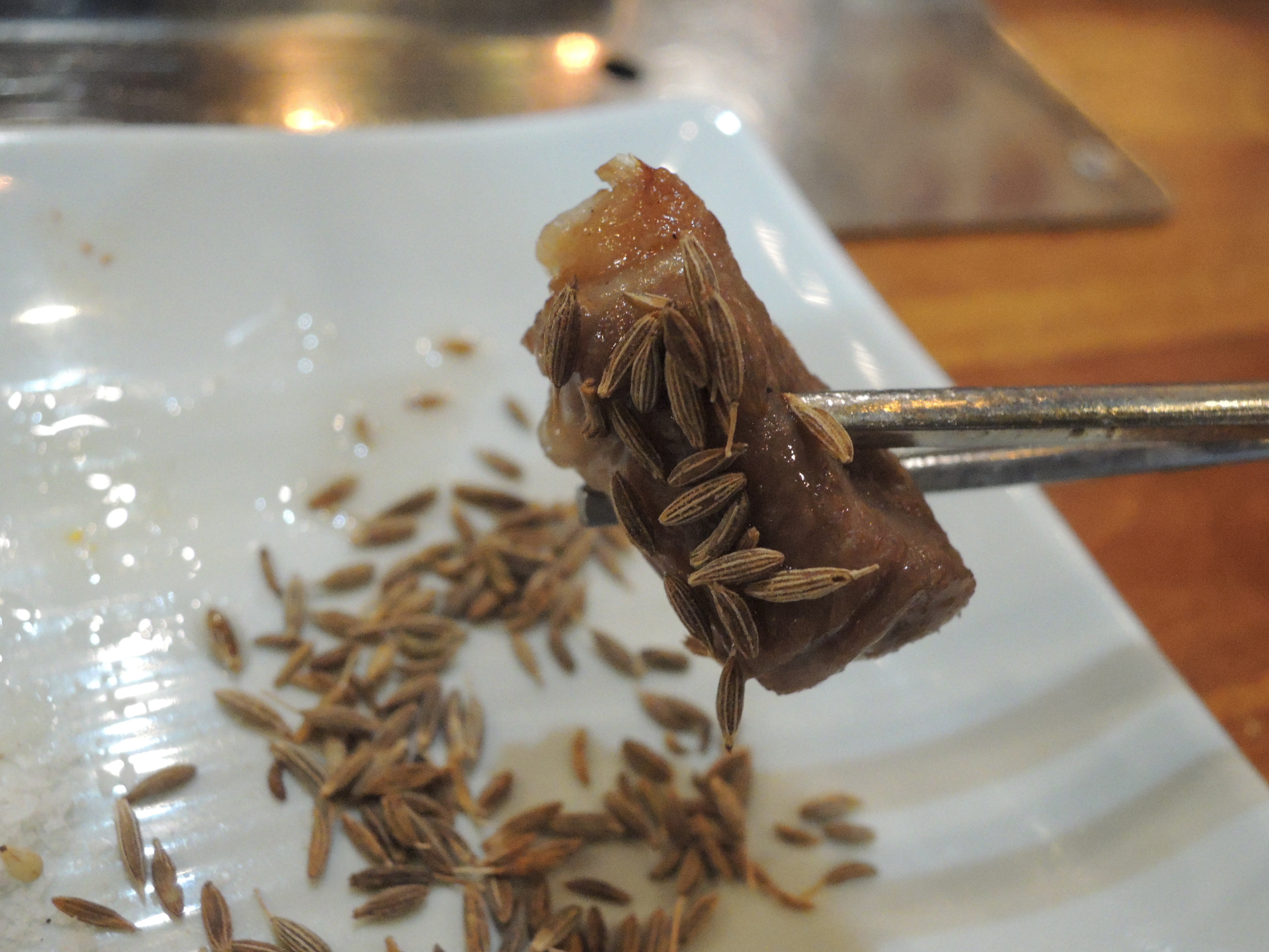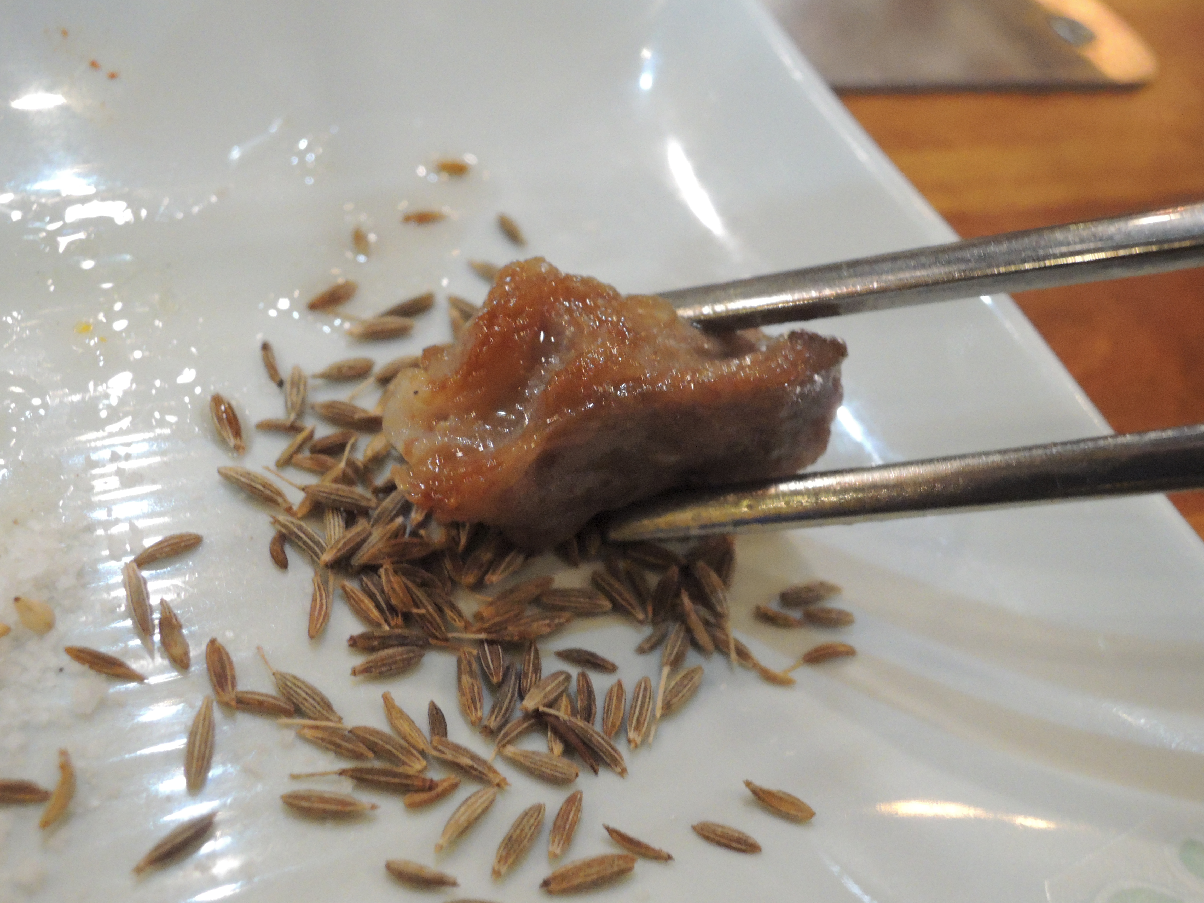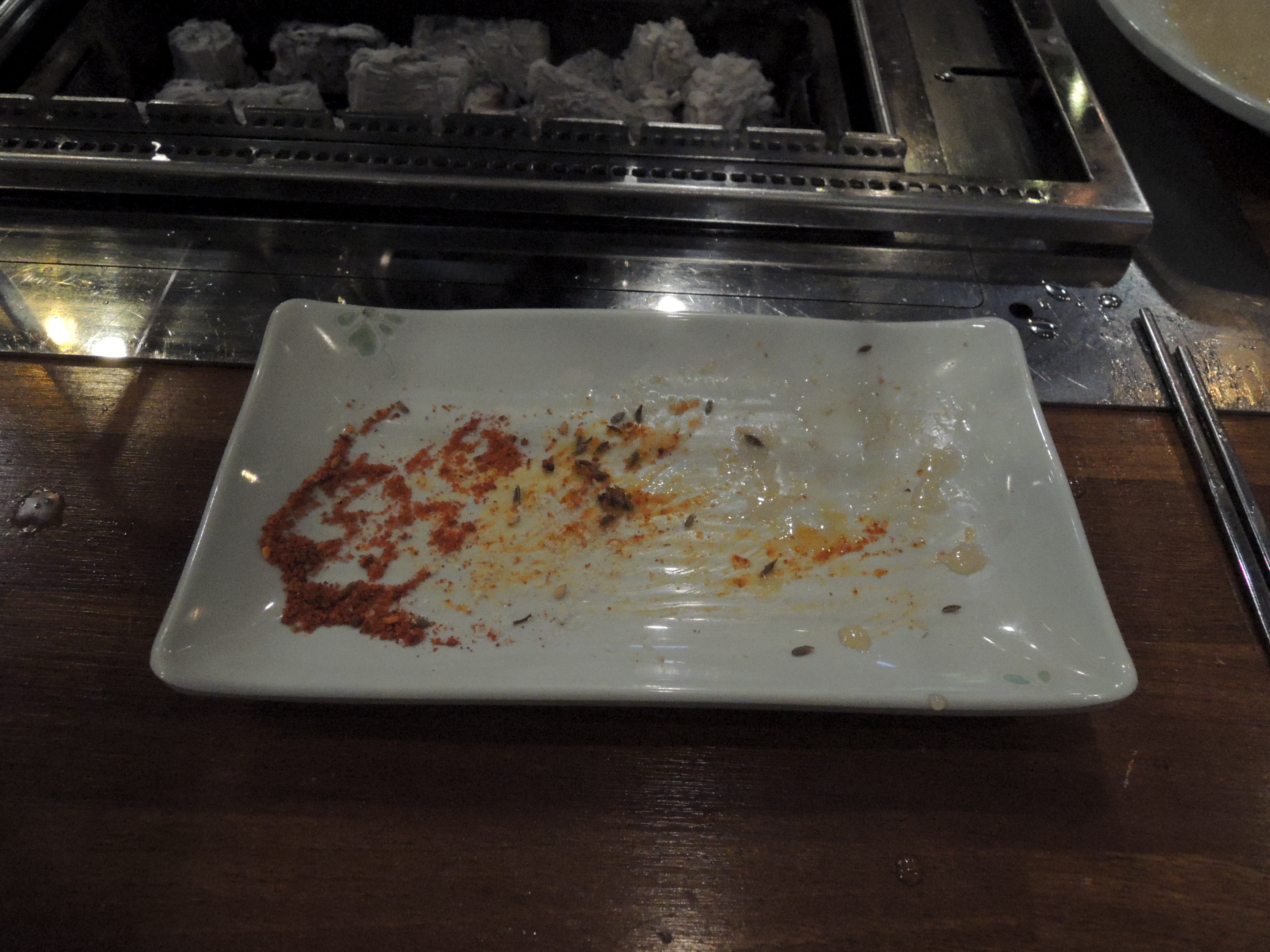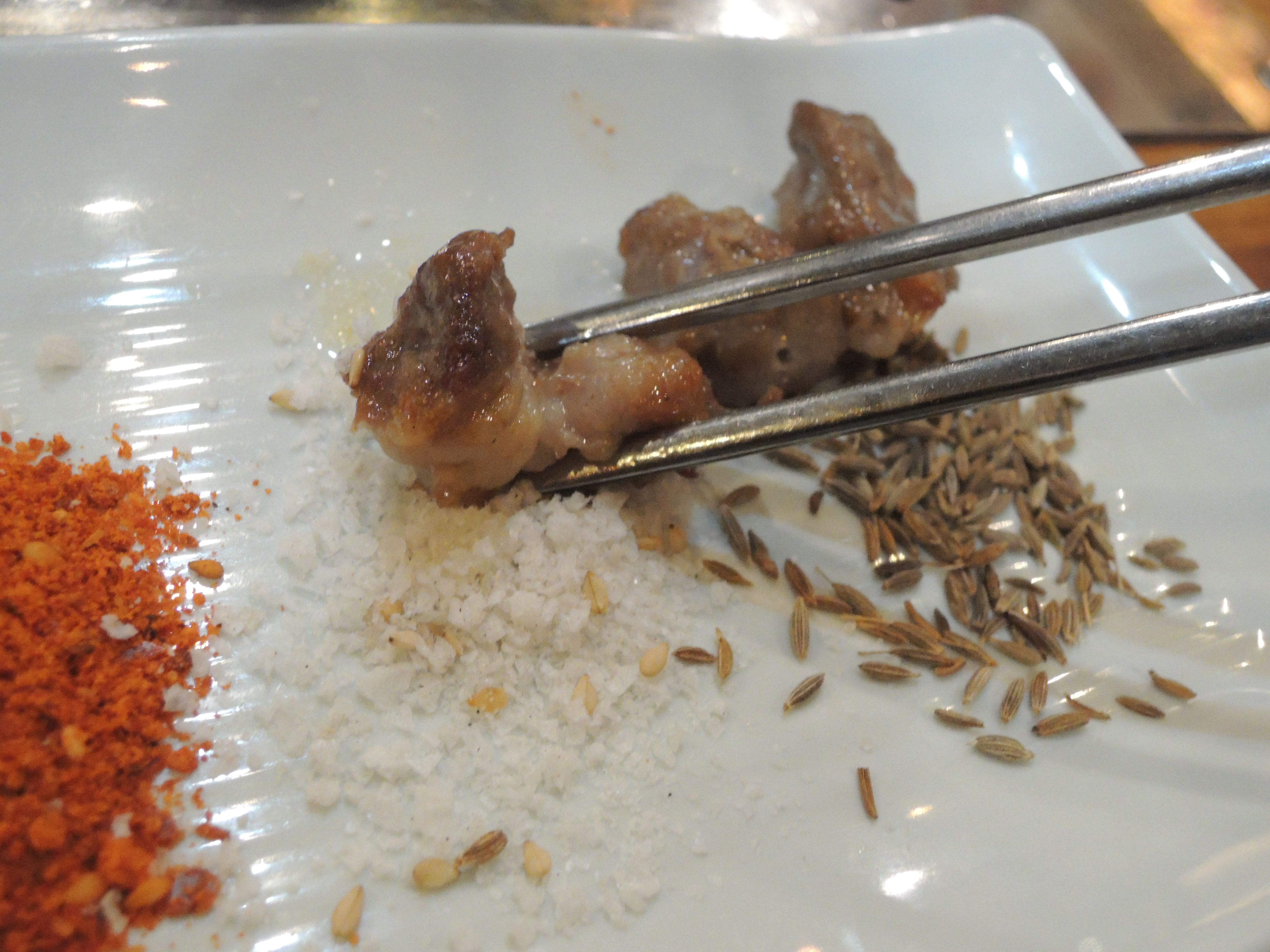 다 익은 양꼬치는 이렇게 꼬치를 올려두고 젓가락으로 고기를 하나하나 분리해서 먹음 됩니다.