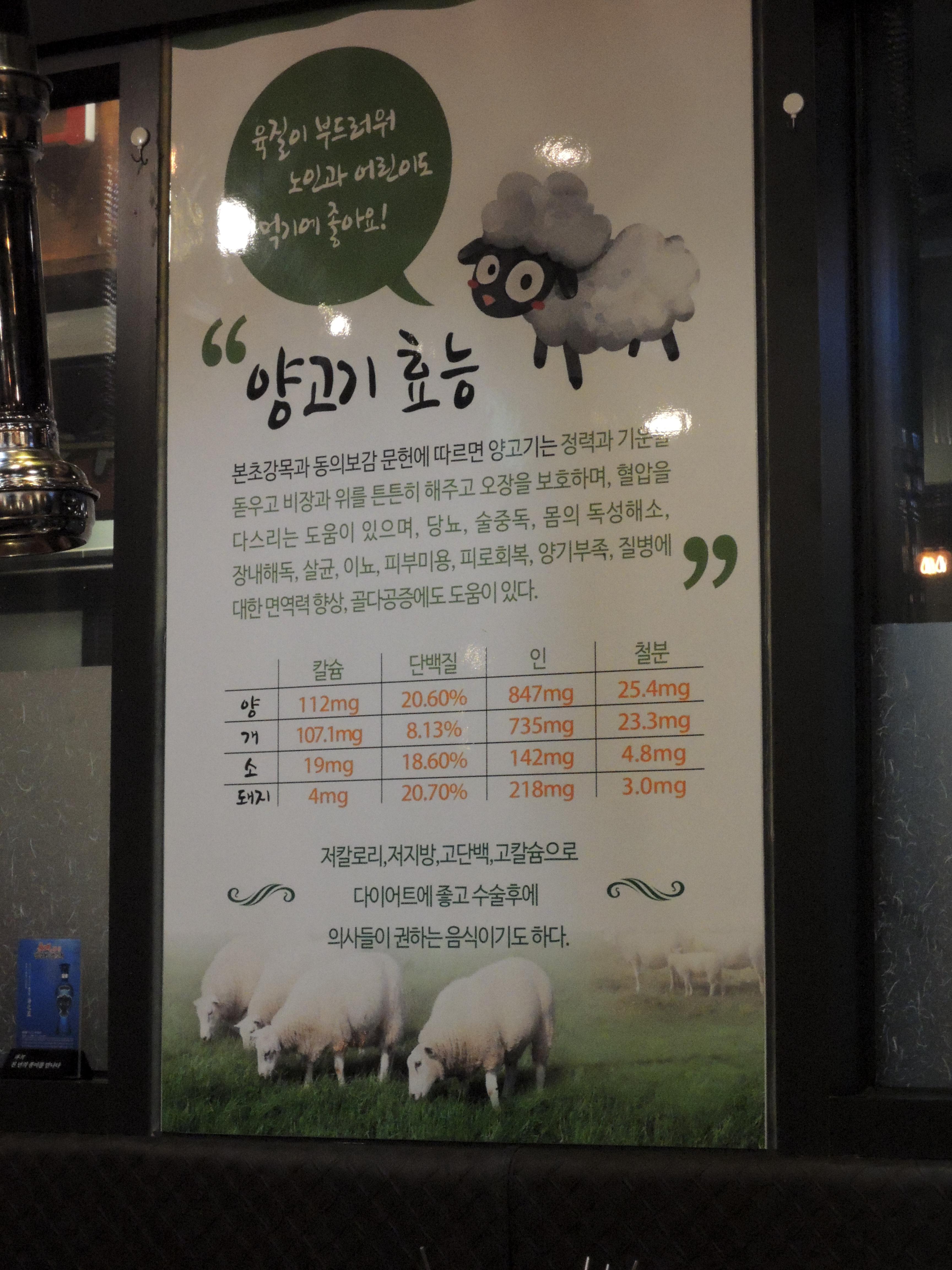 양고기의 효능입니다. 저칼로리 저지방, 고단백, 고칼슘 음식이고, 본초강목, 동의보감에도 나온대요. 우리 선조분들도 양고기를 종종 드셨나봅니다. 맛도좋은데 몸에도 좋군요..